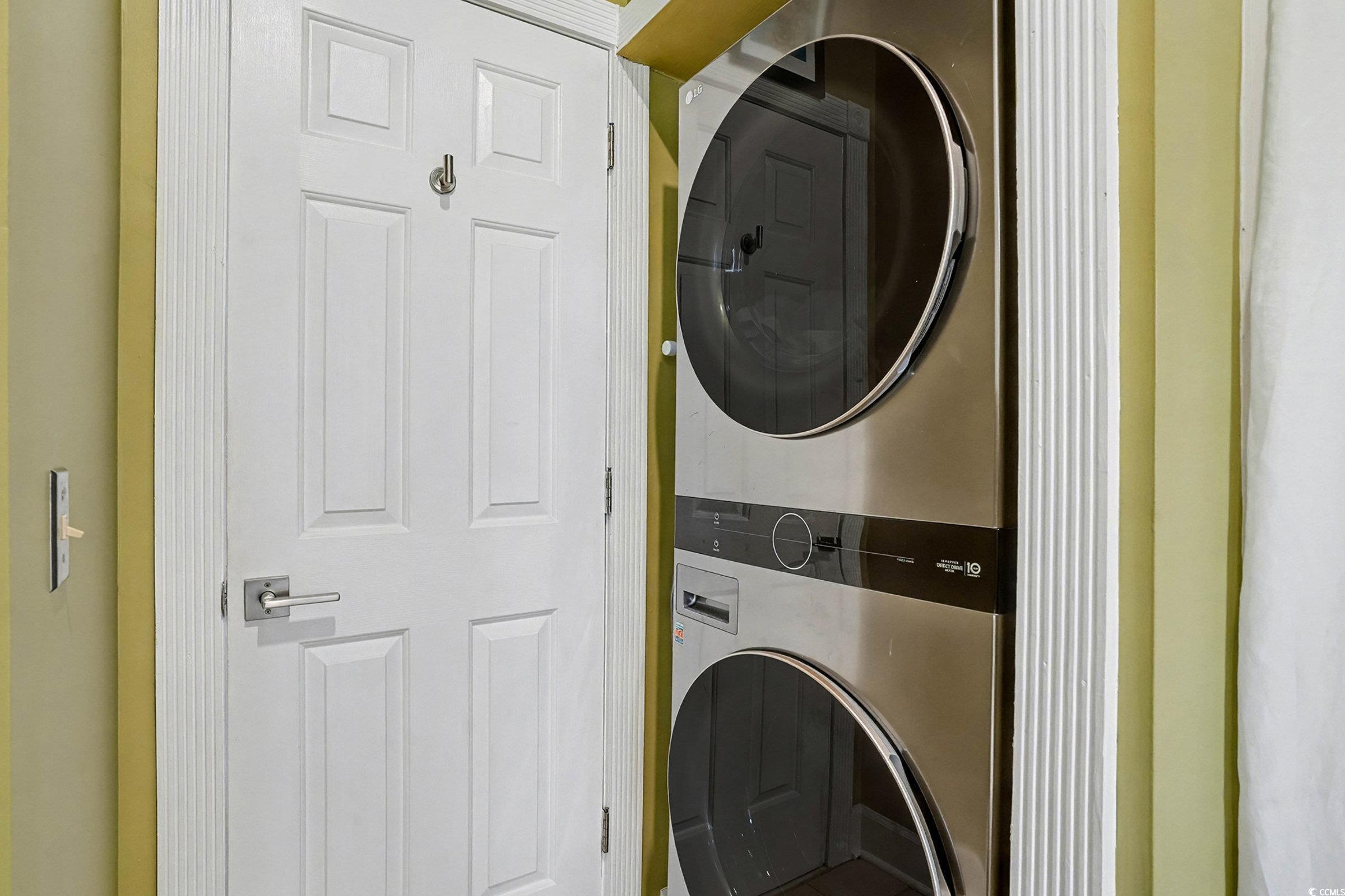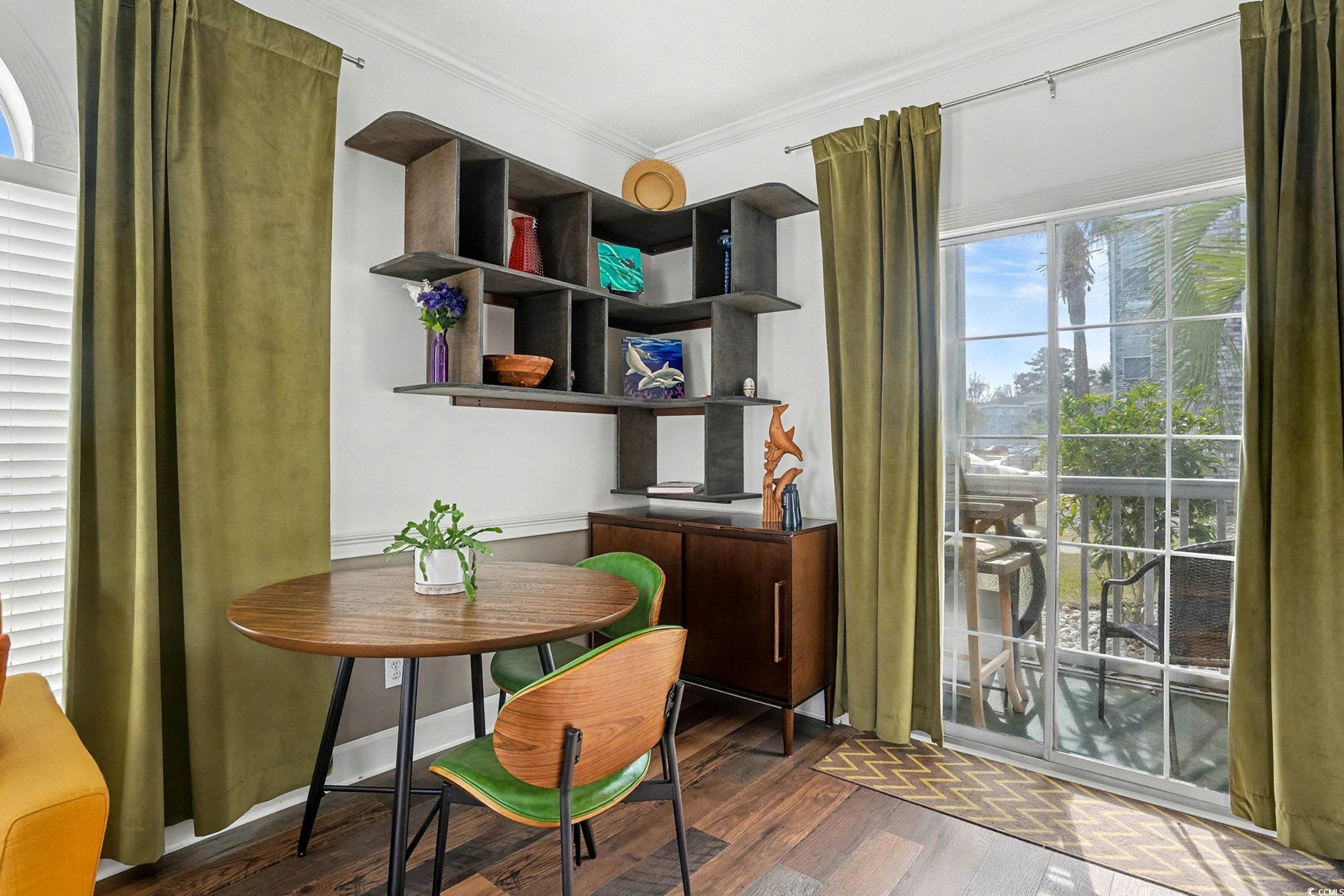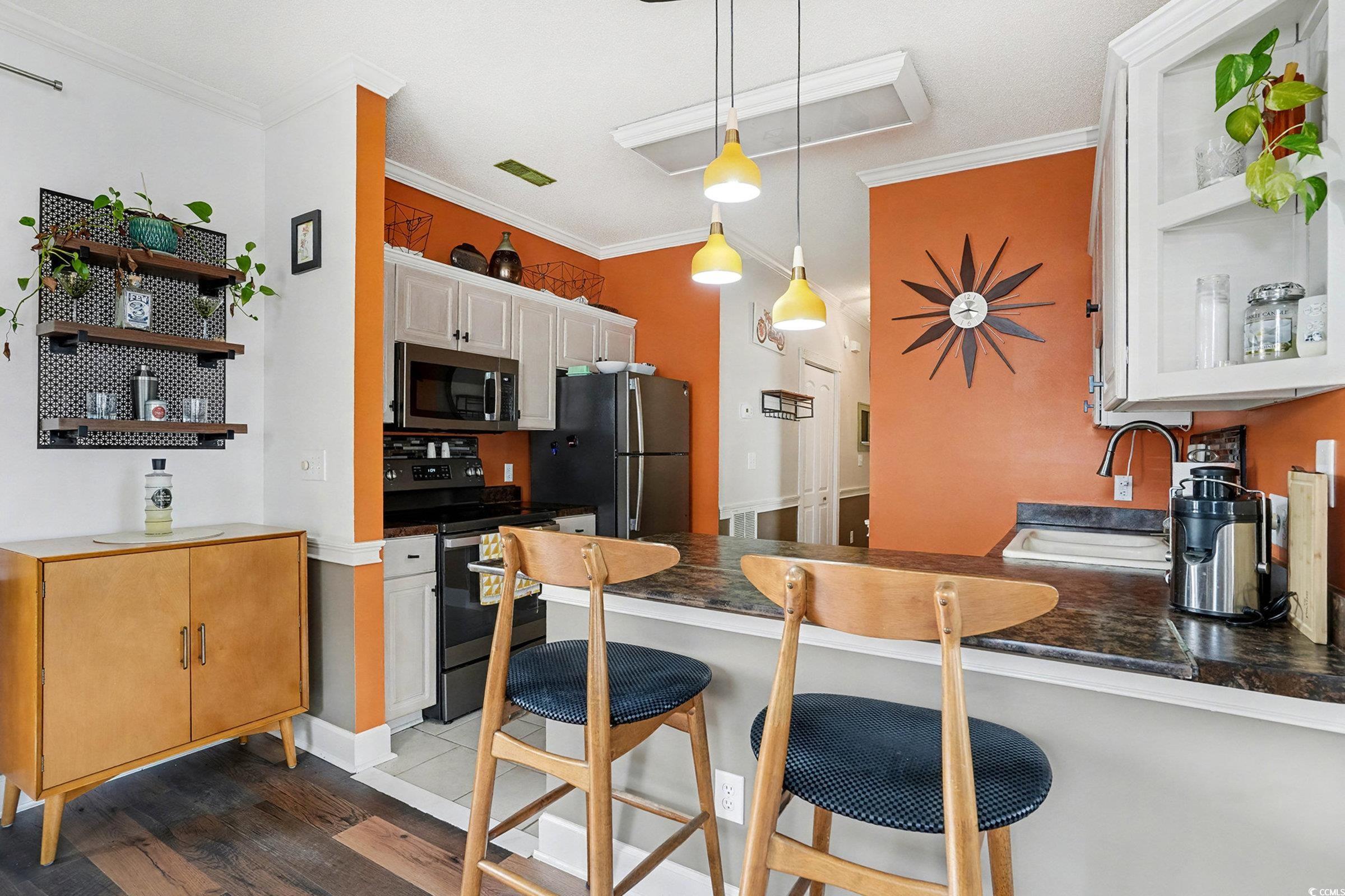 Ground level convenience, low maintenance, with water AND golf course views. This end unit is stylish and only minutes to the beach. Located in the established Magnolia Place community within the Myrtlewood Golf neighborhood on the ICW. Inside you'll find an open layout, custom shelving, electric fireplace, and luxury vinyl plank flooring in the living area and bedroom. New washer and dryer and stainless steel appliances. Enjoy your morning coffee on the screened in patio. Magnolia Place offers a welcoming waterfront and golf course setting with outdoor pools, grilling areas, ponds, walking paths, and beautifully maintained grounds. Only a short drive from the beach, Broadway at the Beach, shopping, dining, and entertainment, this unit is ideal as a full-time home, vacation retreat, or rental investment. With its first-floor convenience and end-unit position, it stands out as a comfortable and low-maintenance choice in one of Myrtle Beachs most sought-after condo communities. Furnishings are negotiable.
