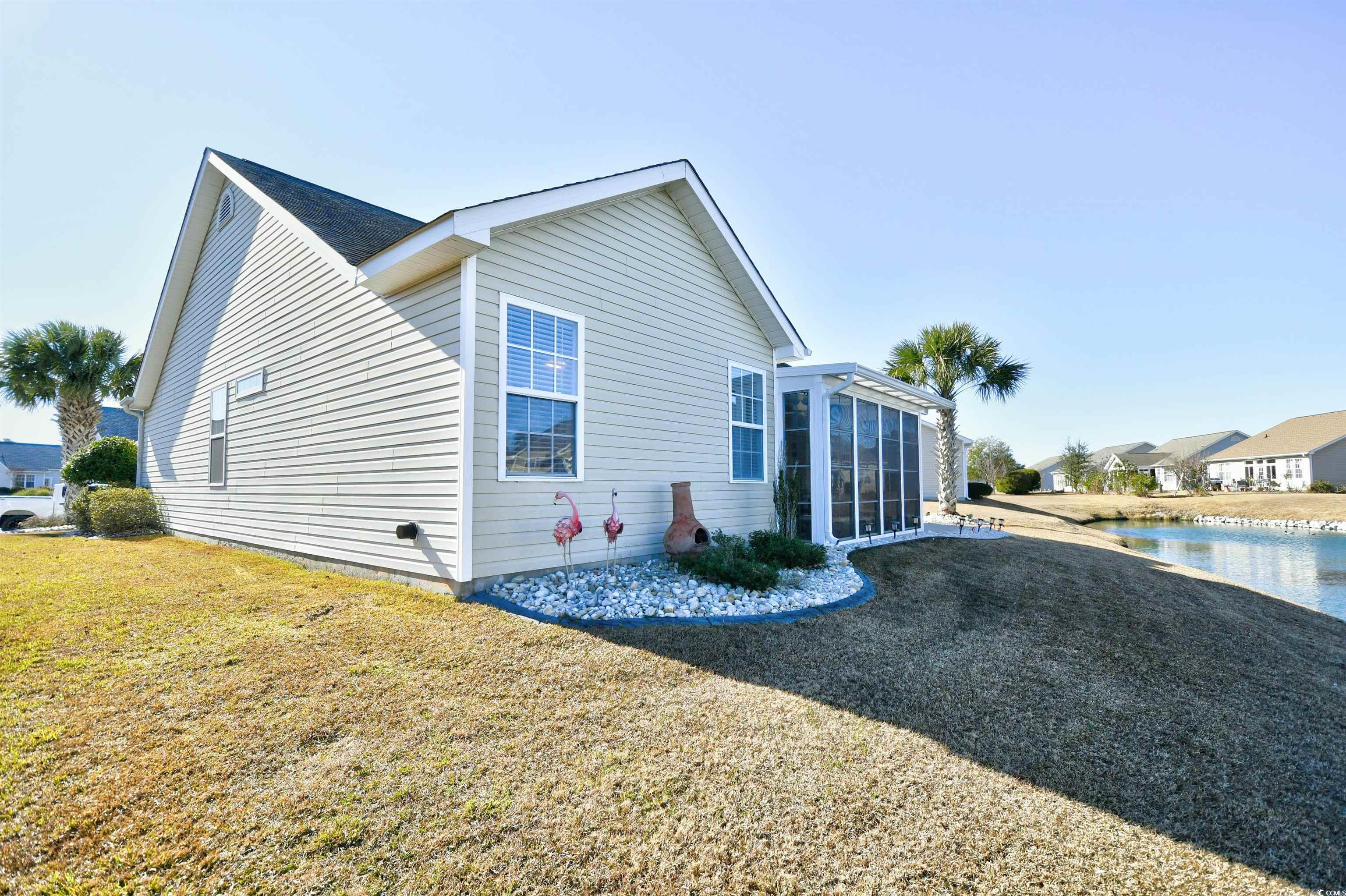 Come check out this beautiful 3 BR/2BA home in Lakes at Plantation Pines. This quality-built RS Parker home has been meticulously maintained and has received several upgrades. Designer-etched coated driveway/walkway, Carolina room floor resealed in August, Paver Patio overlooking pond/fountain with very nice landscaping and two mature palm trees. Enjoy sipping your morning coffee or enjoying a happy hour cocktail in your four-season room with beautiful views of the pond and fountain. Carolina room is equipped with a Daikin two-stage heat/cooling system. New water heater 2023, New garbage disposal 2024, HVAC replaced in 2018. The vaulted ceilings open up the main living area and make it bright and airy. Solatubes (skylights) bring in tons of light in the kitchen and living room areas. All bedrooms have ceiling fans; main bedroom has large walk-in closet. Kitchen has beautiful granite counter tops. Termite protection and bond, two car garage is very spacious and has garage attic storage with pull-down ladder. All appliances convey including washer/dryer. Lakes at Plantation Pines is conveniently located minutes from Highways 31 and 9 and you are only 10 minutes to Cherry Grove Beach, shopping, dining, medical care, golf courses, and tons of restaurants and all the night life the North Myrtle Beach area has to offer. Residents of Lakes at Plantation Pines enjoy the large community pool, clubhouse, neighborhood park. Low Hoa fee includes the pool, trash pickup, basic cable and internet. Pets are welcome and the community allows motorcycles, golf carts and long-term rentals. This home is a very rare find at this price, condition and location. Make your appointment to view it today before it's gone.
