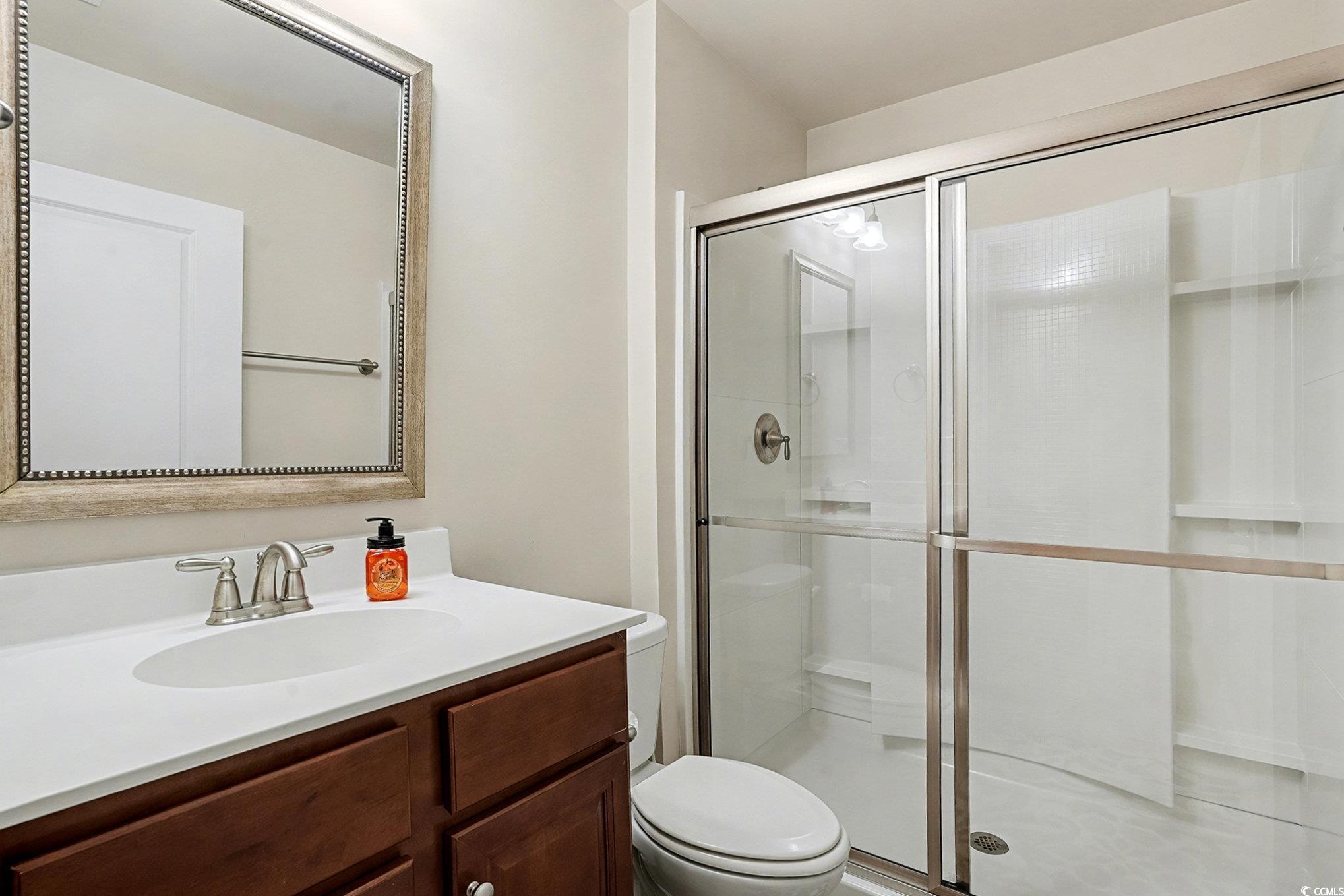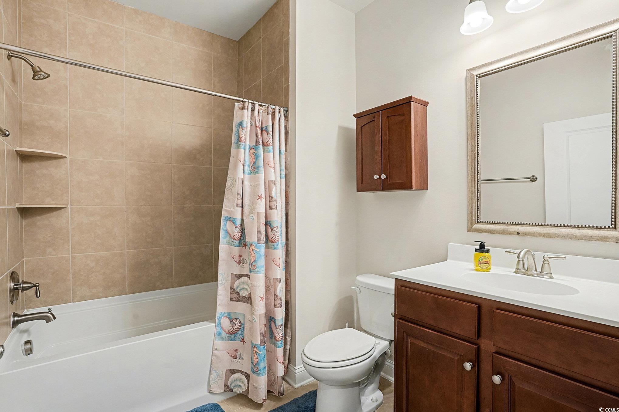 Welcome home to this move-in-ready sanctuary located in the highly sought after Market Common community of Myrtle Beach. Surrounded by mature landscaping, this beautifully designed 3 bedroom home offers an oversized 2 car garage perfect for coastal living and organization. Step through the elegant wainscoted entryway into a bright, open concept main living area featuring wood flooring, crown molding, recessed lighting, and large windows that fill the space with natural light. The chefs kitchen boasts a large island with seating for six, a spacious pantry, stacked oven and microwave, a gas cooktop with hood, stainless steel appliances, and tiled backsplash designed for easy cleanup. The breakfast nook adds additional storage and includes a versatile built-in area ideal for a desk, buffet, or bar. The open dining area flows seamlessly from the kitchen to the living room. The back door opens to a spacious screened in patio overlooking a fenced backyard with views of a community pond, perfect for enjoying Myrtle Beachs coastal breezes. The primary suite is a serene retreat with a stunning tray ceiling, crown molding, and large windows with a direct pond view. The ensuite bath features a tiled walk in shower, relaxing soaker tub, extended double sink vanity, and a separate water closet. The laundry room is conveniently located just off the primary bedroom. A generously sized main level guest bedroom sits adjacent to a full guest bath. Upstairs, youll find a large bonus room, an additional full bath, another oversized guest bedroom, and a flex room ideal for a home office, playroom, or additional storage. Conveniently located just a short walk to the stunning community pool and pavilion. Take advantage of everything Market Common has to offer and enjoy shopping, dining, parks, entertainment, and miles of walking trails all while being just minutes from the beach. This home perfectly blends comfort, convenience, and the relaxed coastal lifestyle Myrtle Beach is known for. Schedule your private showing today!