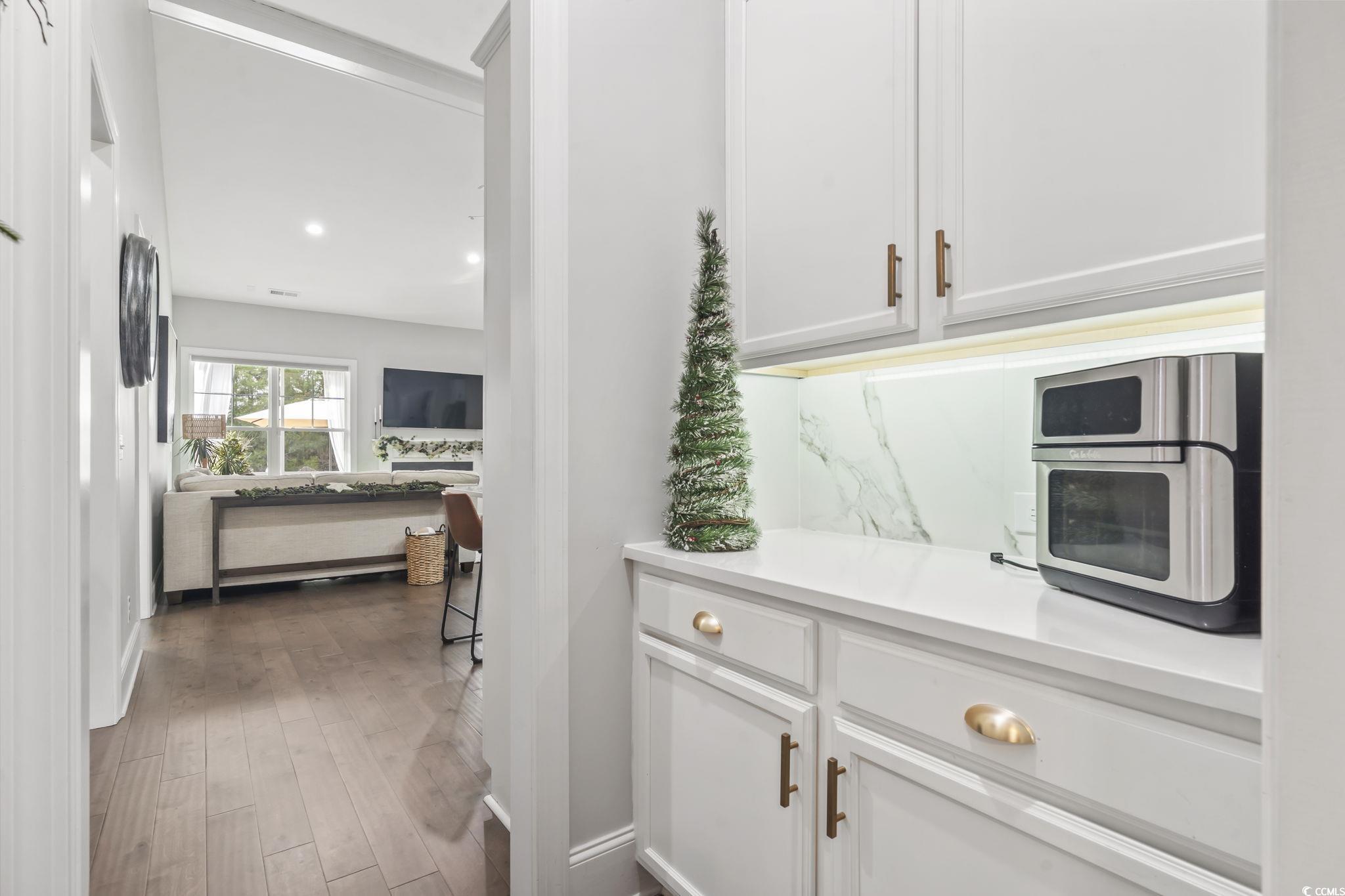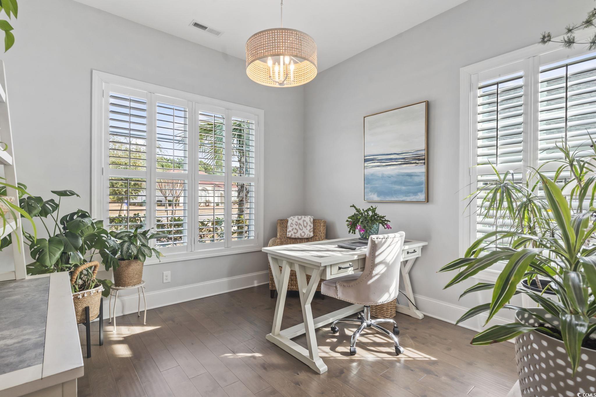 Seller is a Realtor. Looking for the perfect home in Wild Wing Plantation? Look no further! This stunning property delivers exceptional curb appeal from the moment you pull into the driveway. Mature landscaping, an irrigation system, custom paver-lined beds, walkway, and driveway, plus beautifully designed landscape and pathway lighting create a breathtaking first impressionday or night. The extended driveway has also been professionally sealed for UV protection and longevity. Step inside and be wowed by the grand entryway, 10 ceilings, and wide-plank flooring that carries through the main living areas. To your right, the freshly painted formal dining room features elegant wainscoting, a coffered ceiling, and double front windows with custom shutters. (All front-facing windowsgarage includedfeature the same custom shutter upgrade.) The heart of the home boasts an impressive open floor plan with cathedral ceilings, filling the space with natural light. The split-bedroom design offers privacy for guests and family, with two spacious guest bedrooms plus an additional front room that can serve as a home office or fourth bedroom. The gourmet kitchen is a true showstoppercomplete with stainless steel appliances, natural gas cooktop, double oven, huge walk-in pantry, and an oversized island with seating for six. Recent upgrades include brand-new quartz countertops, new deep sink and faucet, porcelain tile backsplash, and updated the white cabinetry with gold hardware. The living room is warm and inviting with a gas fireplace and double windows and doors that brighten the entire space. Retreat to the incredible master suite, featuring freshly painted tray ceilings, new board and batten accent wall and a luxurious ensuite.The ensuite features granite counters, dual sinks, walk-in tile shower, and a custom walk-through closet that connects directly to the laundry rooman amazing convenience you'll love. The oversized 2-car garage provides ample storage with shelving above the door, floored attic space, additional outlets, finished floor and an EV charger. Outdoor living is where this home truly shines. Enjoy a relaxing covered front porch, or unwind on the tiled, screened-in back porch with custom shades. Step down to a 20x20 custom paver patio overlooking the serene lakeperfect for entertaining or simply taking in the view. The fully fenced backyard allows easy access for kayaking right from your property, and motorized boats can be launched from the community storage area. Located in the private, amenity-rich community of Wild Wing Plantation, residents enjoy tennis and pickleball courts, a resort-style pool with waterslide, playground, basketball court, and access to a beautiful golf course. All of this just minutes from the Grand Strands premier dining, shopping, golf, entertainment, and, of course, the beach. Dont miss this onehomes like this dont last long! (All measurements and square footage are approximate and not guaranteed.)