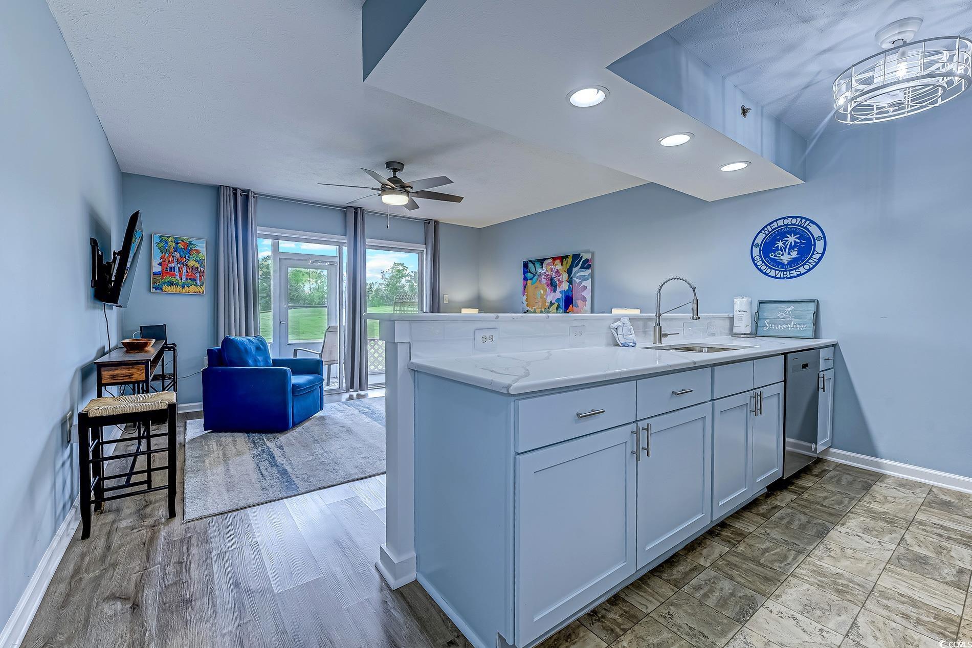 Charming and Fully Renovated and furnished First-Floor Condo was built in 2006! This stunning 1-bedroom, 1-bathroom condo is a perfect blend of modern luxury and cozy comfort. Step inside and be greeted by the stunning, fully updated kitchen, which features gorgeous quartz countertops with backsplash , complemented by stainless steel appliances. The unit boasts luxury vinyl flooring, providing a sleek and durable finish. The hallway adds a touch of elegance with its charming chair rail and wainscoting. This condo has everything you need for modern living, including a convenient washer/dryer combo and a brand-new water heater. Relax and enjoy the outdoors on your private, screened-in back porch. It even has a standard size storage closet located on the second floor. The condo complex offers fantastic amenities, including tennis courts and both an indoor and outdoor pool, so you can enjoy a swim no matter the weather. You'll love the prime location. You're just 8 minutes away from a wide variety of shopping, restaurants, and doctors' offices. The beach is only an 11-minute drive away, and the airport is a quick 13-minute trip, making travel a breeze. This condo is a must see! A home warranty will be provided at closing. Square footage is approximate and not guaranteed. Buyer and is responsible for verification.