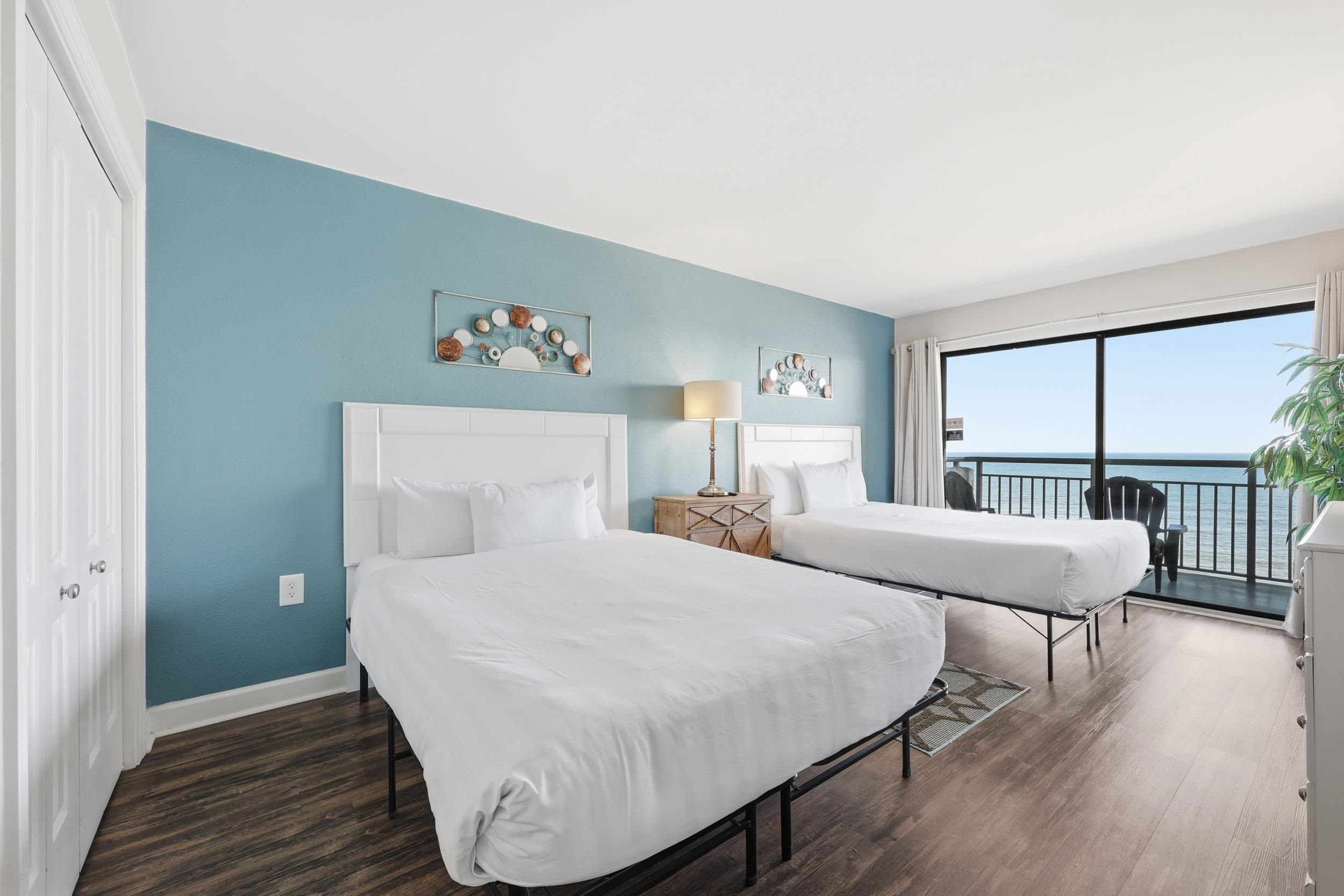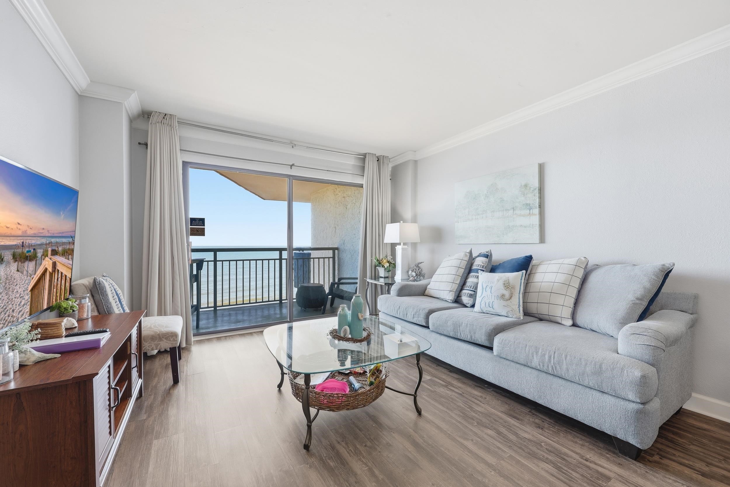 Welcome to Unit 903 at the highly desirable Bluewater Resort, where oceanfront living, comfort, and unbeatable location come together. This turnkey 2-bedroom, 2-bathroom, fully furnished condo is situated on the 9th floor and offers breathtaking direct oceanfront views from nearly every angle, perfect for personal enjoyment or a strong rental investment. The unit features a bright open-concept living and dining area, an updated kitchen with white cabinetry and stainless steel appliances, including a dishwasher, and modern finishes throughout. The spacious primary bedroom boasts stunning oceanfront views, balcony access, and an updated en-suite bathroom, while the secondary bedroom is beautifully appointed for guests. Step outside onto the expansive 25-foot oceanfront balcony, accessible from both the living area and primary bedroom, and soak in the sights and sounds of the Atlantic. Bluewater Resort offers an impressive array of amenities including indoor and outdoor pools, hot tub, fitness center, game room, poolside bar, on-site restaurant, and 24/7 security. Located directly on the beach and just minutes from the Myrtle Beach International Airport, golf courses, shopping, dining, Market Common, the Boardwalk, and Broadway at the Beach, this condo truly delivers on location, lifestyle, and investment potential. Whether you're searching for a vacation getaway, income-producing rental, or your own piece of paradise on the Grand Strand, Unit 903 at Bluewater Resort is an opportunity you don't want to miss.