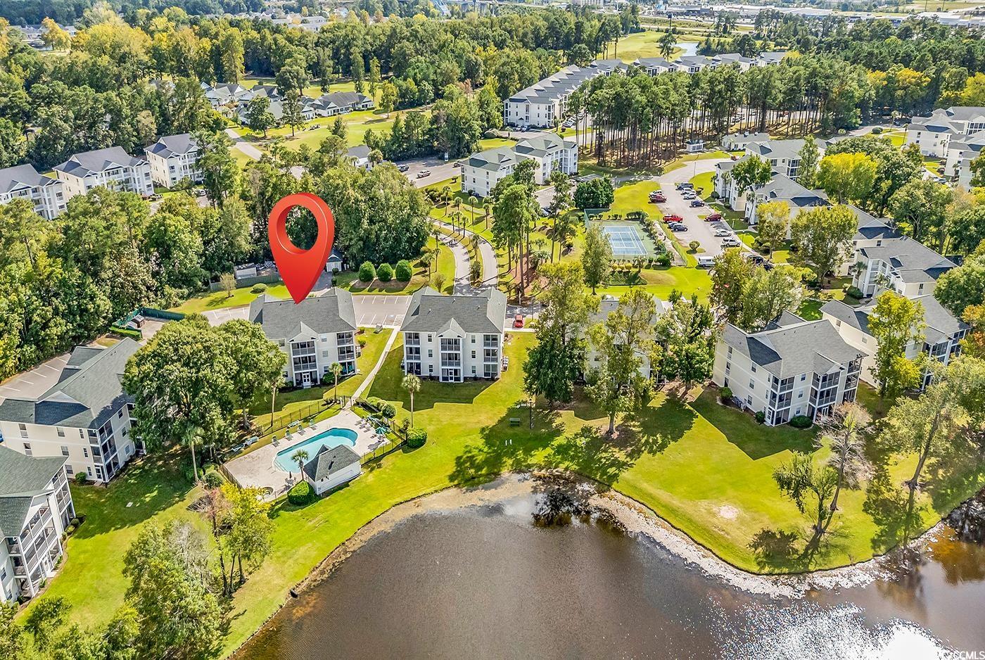Welcome to this beautifully furnished and move-in-ready top-floor unit in the desirable River Oaks Condos, featuring soaring cathedral ceilings and tranquil views of both the pool and the pond. The kitchen is a showstopper with granite countertops, a tile backsplash, a copper sink, stainless-steel appliances, a breakfast bar, and a spacious pantry. The open living area features wood flooring, a cathedral ceiling and ceiling fan, offering an airy and inviting atmosphere. Step outside to your tiled private balcony, the perfect place to relax while overlooking the pool and pond. An extra hall storage closet provides convenient space for your beach and golf gear. The HVAC was replaced in 2020 for peace of mind. Residents enjoy resort-style amenities including indoor and outdoor pools, tennis courts, and a hot tub. Great primary residence, vacation home or investment property as it allows short term and long term rentals. Ideally located close to the beach, airport, shopping, golf, and many great restaurants, this home blends comfort, convenience, and coastal charm.
