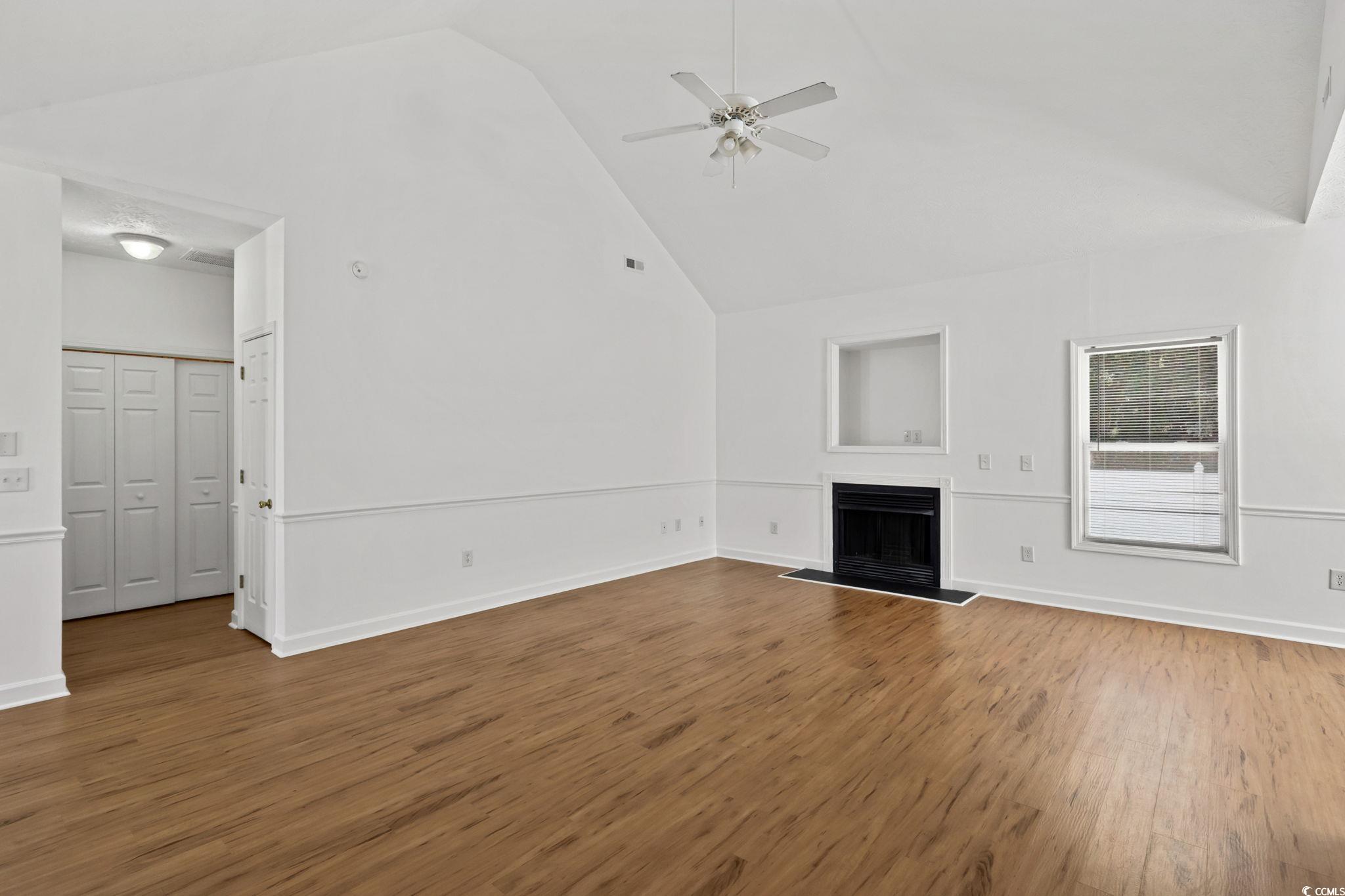 The home has a new roof. Welcome to this beautifully maintained 3BR/2BA home featuring vaulted ceilings, an open floor plan, and fresh paint throughout. The spacious kitchen offers warm wood cabinetry, white appliances, and a breakfast bar perfect for casual dining. LVP and tile flooring flow through the main living areas, creating a bright and airy feel. Step outside to a fully fenced backyard with a concrete patio, mature landscaping with irrigation, and wooded views ideal for relaxing or entertaining. New HVAC 2025 and water heater 2023! Located in a quiet, well-kept neighborhood just minutes from Carolina Forest shopping, dining, and Coastal Carolina University.