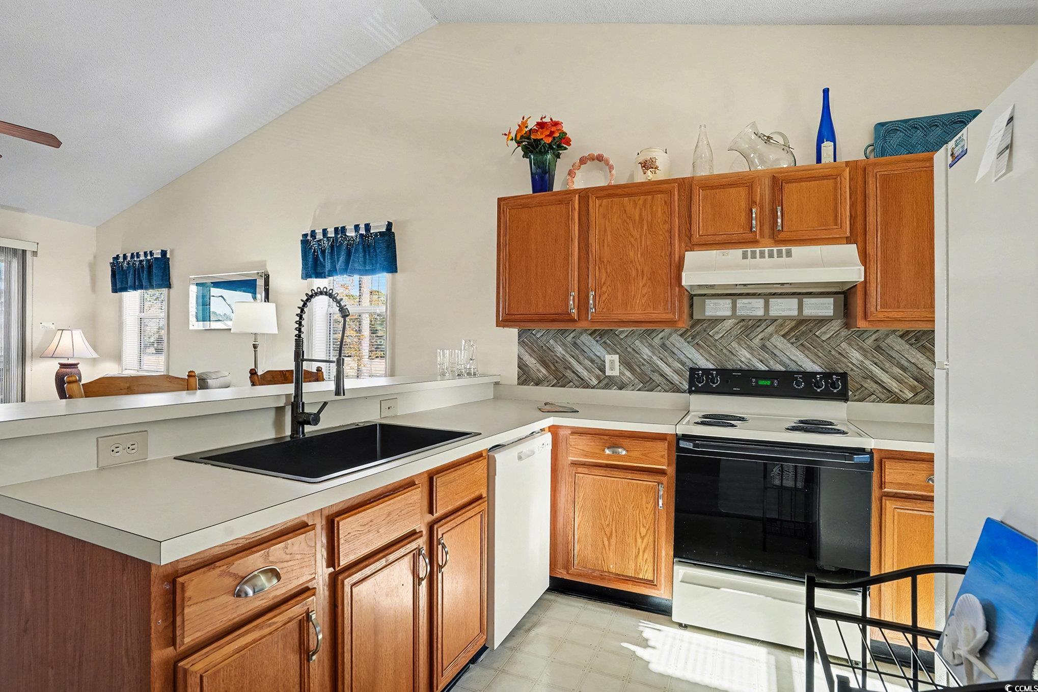Looking for your dream coastal retreat? This is it! Located at Green Tree in the desirable Island Green community, this furnished end unit 2 bed 2 bath condo has only been gently used as a second home and updated with a new refrigerator and dishwasher in 2025, new balcony flooring in 2025, new couch and chair in 2024, new HVAC in 2020 and water heater in 2019, and roof was just replaced in 2025. Tastefully furnished and decorated, the open floor plan features a spacious living room and dining area with vaulted ceilings, ceiling fan and direct access to the balcony. Adjacent to the living room, the fully equipped kitchen boasts abundant cabinet and counter space, a new sink and faucet just installed in 2022, a breakfast bar and a pantry. The nice sized master suite has been updated with new king mattress and box spring in 2020 and has a bath with vanity and tub/shower. A second bedroom and full bath with vanity and tub/shower are located just off the foyer. Both bedrooms have ceiling fans, vaulted ceilings and ample closet space, and the unit also has a full-size washer and dryer and additional closet space off the foyer. The private balcony is the perfect spot to savor your morning coffee, enjoy a new book or relax with cocktails at the end of the day. HOA dues include water/ sewer, trash, outdoor pool, landscaping, pest control, Spectrum cable/internet, and exterior building insurance and roads in the community have just been repaved. Great location just minutes from shopping, restaurants, golf, the airport, Market Common, and, best of all, the beach and everything the Grand Strand has to offer in amusements and entertainment! Perfect as a primary home, private vacation getaway or as a great investment property as both short- and long-term rentals are permitted. This is a fantastic opportunity! Make an appointment to view this delightful condo today