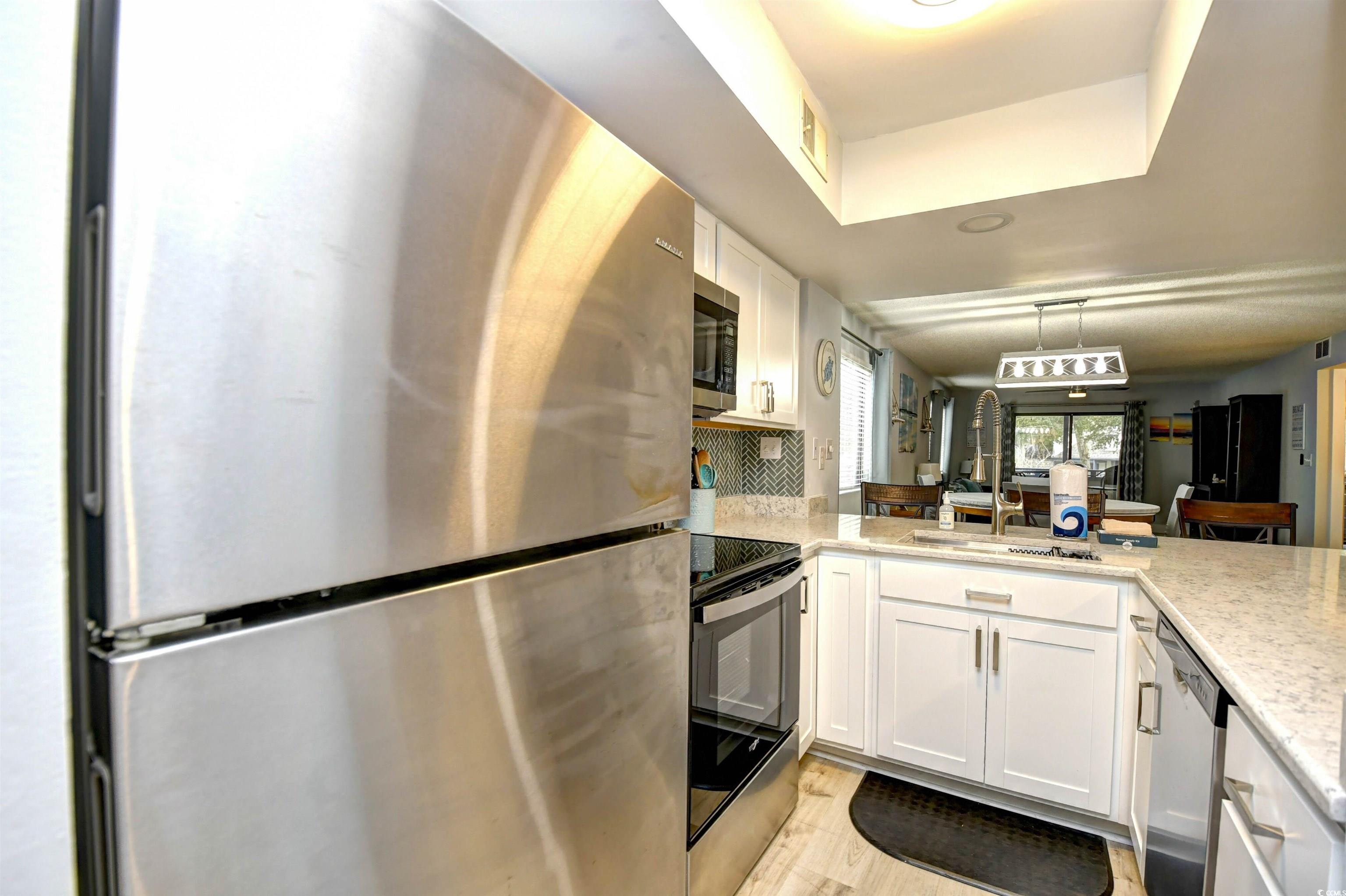 Discover coastal living at its best in this beautifully remodeled 2-bedroom, 2-bath end-unit condo located in the highly desirable Summertree community in the popular Shore Drive neighborhood. Updated in 2024, this home features luxury vinyl plank flooring throughout, new kitchen and bathroom cabinets/vanities, and all new appliances, offering a fresh, modern feel that's truly move-in ready. The HVAC system has been professionally maintained yearly, providing peace of mind for years to come. Designed with comfort and versatility in mind, this end unit offers more living space than most condos in the area, with spacious living areas and generously sized bedrooms filled with natural light. The open-concept layout seamlessly connects the living, dining, and kitchen spaces-perfect for entertaining, relaxing after the beach, or maximizing rental appeal. The primary suite includes a private en-suite bath, while the guest bedroom is conveniently located near its own full bathroom, ideal for family or visitors. One of this home's standout features is the screened porches, overlooking the beautifully landscaped outdoor pool courtyard-an ideal setting for morning coffee or evening cocktails with coastal breezes. Summertree also offers an indoor pool, a highly sought-after amenity that adds strong value for year-round enjoyment and winter rental potential. Whether you're searching for a beach vacation retreat, primary residence, or a rental investment, this condo checks every box. Just a short walk to the ocean, you'll also enjoy easy access to local favorites including Ocean Annie's live music beach bar, popular restaurants, shopping outlets, and premier golf courses-all just minutes away. This is a rare opportunity to own a turn-key condo in one of Myrtle Beach's most beloved neighborhoods-ready to enjoy from day one!
