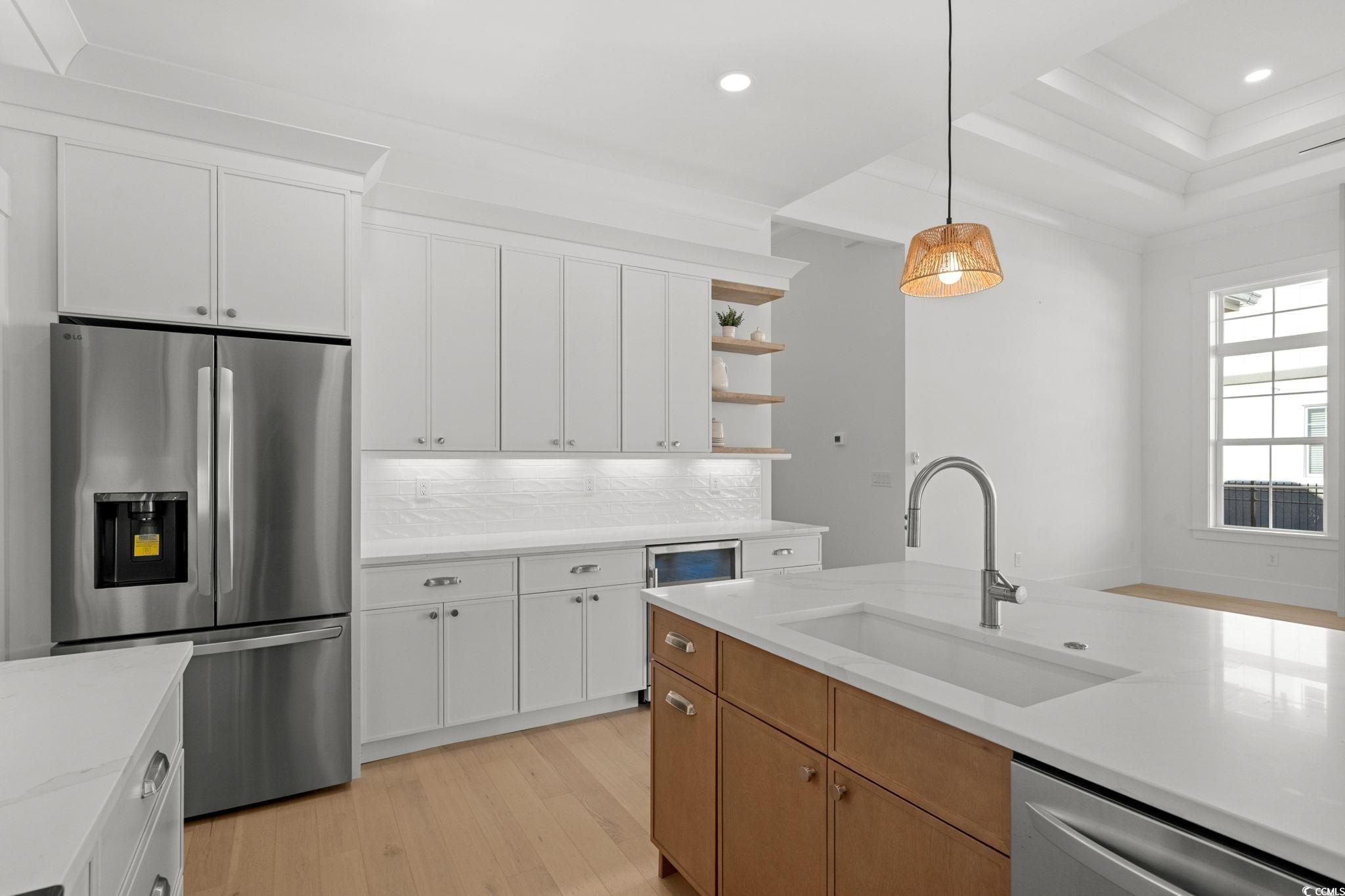 Welcome to 2313 Summersweet Lane, a new residence where timeless craftsmanship meets refined luxury. Located in the highly sought after gated community of Waterbridge, this contemporary home was completed in 2025 & has never been occupied ~ Offering 4 bedrooms, 3.5 baths, and engineered hardwood floors throughout the home. Natural light flows through the main living area, where a fireplace and double tray ceiling create a warm focal point. The chef's kitchen features an oversized island, two-tone cabinetry, stainless steel appliances, range hood, quartz countertops, wine fridge, and a pantry. An enjoyable space for everyday living as well as entertaining. The primary suite provides a quiet retreat with a double tray ceiling, a generous walk-in closet, and a spa-inspired en suite bath with dual vanities, a fully tiled walk-in shower, and a soaking tub. Additional bedrooms and flexible living areas offer options for guests or work-from-home needs, while maintaining a cohesive layout throughout the home. Outside, the stucco exterior, side load two-car garage, and covered tiled back porch present a clean, polished impression, complemented by professional landscaping with palm trees. Located on a corner lot, the home is within walking distance to the state of the art amenities center! Waterbridge community, residents enjoy unparalleled resort-style amenities that include the area's largest residential pool, fitness center, tennis, volleyball, basketball, boat launch, pier, RV/boat storage, fire pit, and a swim-up bar. All just minutes from award-winning schools, shopping, dining, golf, healthcare, Tanger Outlets, Myrtle Beach International Airport, and the Atlantic Ocean's 60 miles of sandy beaches. Don't miss this opportunity ~ come live the dream!