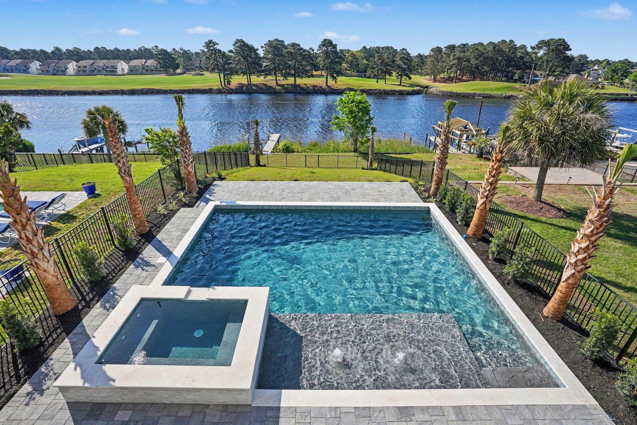 Welcome to 288 W Palms Drive in Waterway Palms Plantation, a premier new construction luxury home located in one of Myrtle Beachs most desirable gated Intracoastal Waterway communities. Currently under construction, this custom built residence is being crafted by a high end luxury builder known for uncompromising quality, structural integrity, and elevated coastal design. Situated in the heart of Waterway Palms Plantation in Myrtle Beach, this home delivers both privacy and proximity, offering quick access to the ICW, Myrtle Beach shoreline, championship golf courses, top dining, shopping, and entertainment. Homes of this caliber and location are rarely available in this community. From the curb, the architectural presence stands out with an oversized solid mahogany front door, upgraded windows, and premium exterior materials designed for durability and coastal conditions. Inside, the home features ten foot ceilings on every level, true tray ceilings with pine tongue and groove detailing, and eight foot solid core doors that create an open, refined, and luxurious living experience. The 2x6 construction and over engineered build provide enhanced energy efficiency, sound control, and long term performance. The gourmet kitchen is designed to anchor the home and impress, featuring floor to ceiling solid wood cabinetry with soft close drawers and doors, designer fixtures, and a premium ZLINE appliance package including a 48 inch gas range and 60 inch refrigerator. Ideal for entertaining and everyday living, the kitchen flows seamlessly into the main living areas. This Myrtle Beach luxury home offers 5 bedrooms, each with custom built in walk-in closets, along with zero entry showers on every level, delivering spa inspired comfort and accessibility throughout the home. Indoor and outdoor living connect effortlessly through zero entry recessed sliding glass doors on all three levels, opening to multiple covered porches and a private backyard retreat. The outdoor living space features a saltwater swimming pool with sun shelf and bubblers, an elevated waterfall spa, and fully automated smart controls for lighting, jets, temperature, and aeration, all controlled via mobile app. A first floor outdoor kitchen and infrared ceiling heater make this home perfect for year round coastal living in Myrtle Beach. Additional features include a fully air conditioned and heated garage with ice maker and refrigerator hookups, oversized walk-in storage rooms, exterior under stair storage, whole home surround sound, and curated designer lighting throughout. Construction photos document plumbing and electrical locations, providing added value and transparency. Residents of Waterway Palms Plantation enjoy gated security, resort style amenities, clubhouse, swimming pool, tennis courts, and Intracoastal Waterway access. This location places you minutes from Myrtle Beach golf courses, beaches, marinas, dining, and shopping. 288 W Palms Drive represents a rare opportunity to own a new construction luxury home in Myrtle Beach within a premier Intracoastal Waterway community where craftsmanship, technology, and coastal lifestyle come together. Buyer responsible for verification of all information.