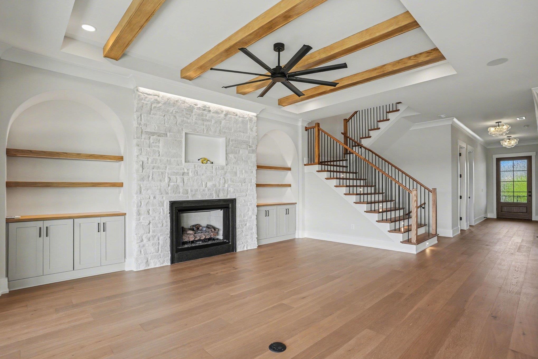 LivingRoom: BeamedCeilings, TrayCeilings, Fireplace