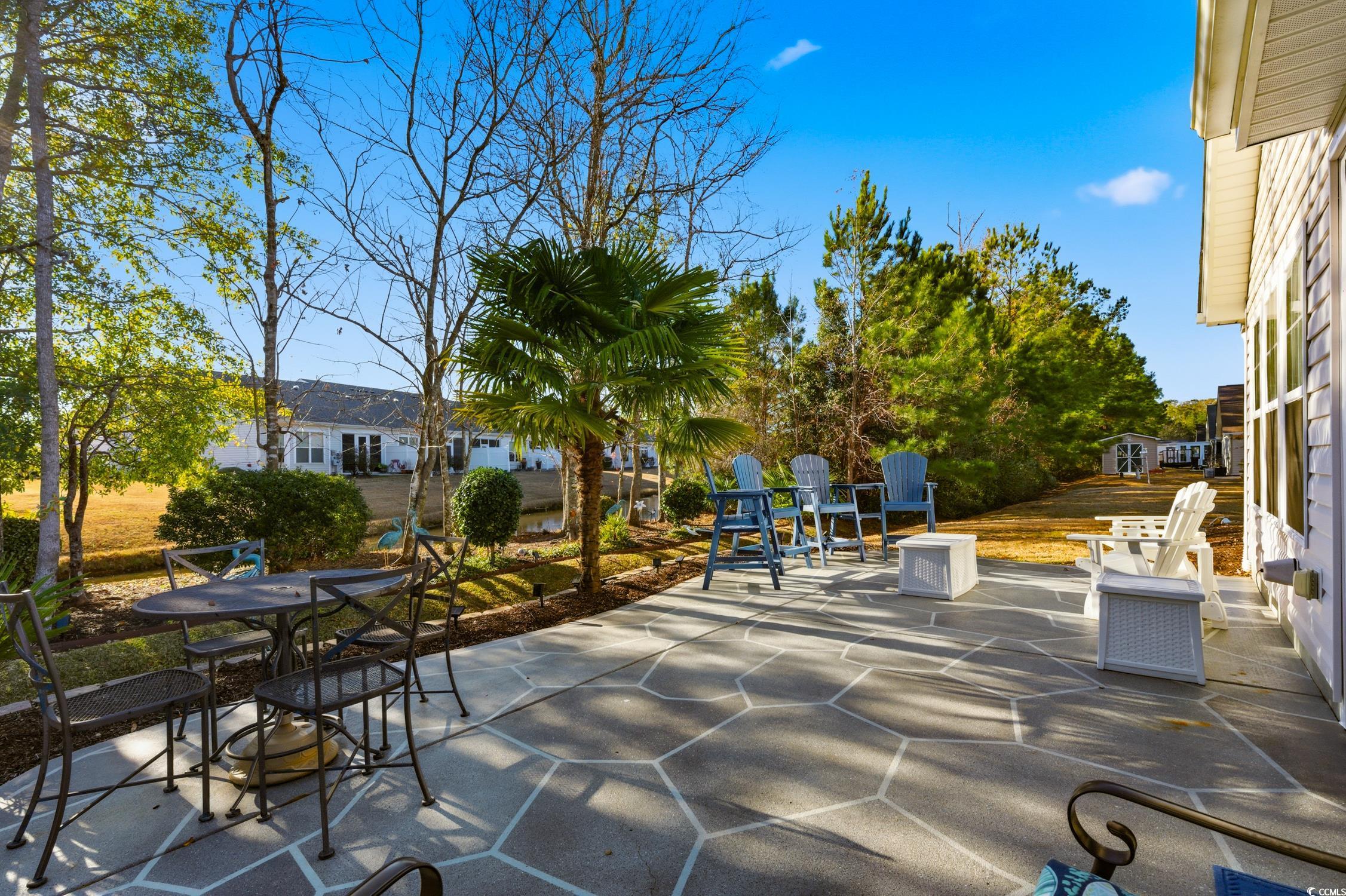 This spacious 3 bedroom, 2 bath home is both well appointed and thoughtfully designed. Sidelights framing the front entry door fill the home with natural light, leading to an open living area accented by vaulted ceilings and decorative plant shelving. The kitchen features fully trimmed white cabinetry, a pantry and a comfortable breakfast nook. The primary suite serves as a peaceful retreat with a vaulted ceiling, a spacious walk in closet, walk in shower and linen closet. Originally constructed with an extra two feet added along the entire side of the home, this thoughtful upgrade expanded all bedrooms and both bathrooms. From the living area, pocket doors lead to the 14 X 14 sunroom adds wonderful living space and is the perfect spot to enjoy morning coffee or curl up with a good book. Perfect for entertaining, this home is both open and inviting with living space that flows easily to your outside oasis providing seamless indoor/outdoor living. Step through the sliding door to a huge, screened porch where you can enjoy the afternoon breeze. Move out onto the large patio framed with palm trees and bask in the warm Carolina sunshine while taking in the tranquil pond view. The oversized 22 x 24 ft 2 car garage includes pull down attic stairs, a utility sink and a convenient side entry door. Recent improvements include a new hot water heater in 2025 and a new roof in 2021. A sprinkler system covers the lushly landscaped lawn. All of this and located just off of the beaten path in the Osprey Woods community. Close to shops, entertainment, restaurants, golf courses, watersports, Osprey Marina and just minutes to the Murrells Inlet Marsh Walk, Market Common and the beautiful, blue Atlantic Ocean's white sandy beaches. Come find your own place in the sun today!