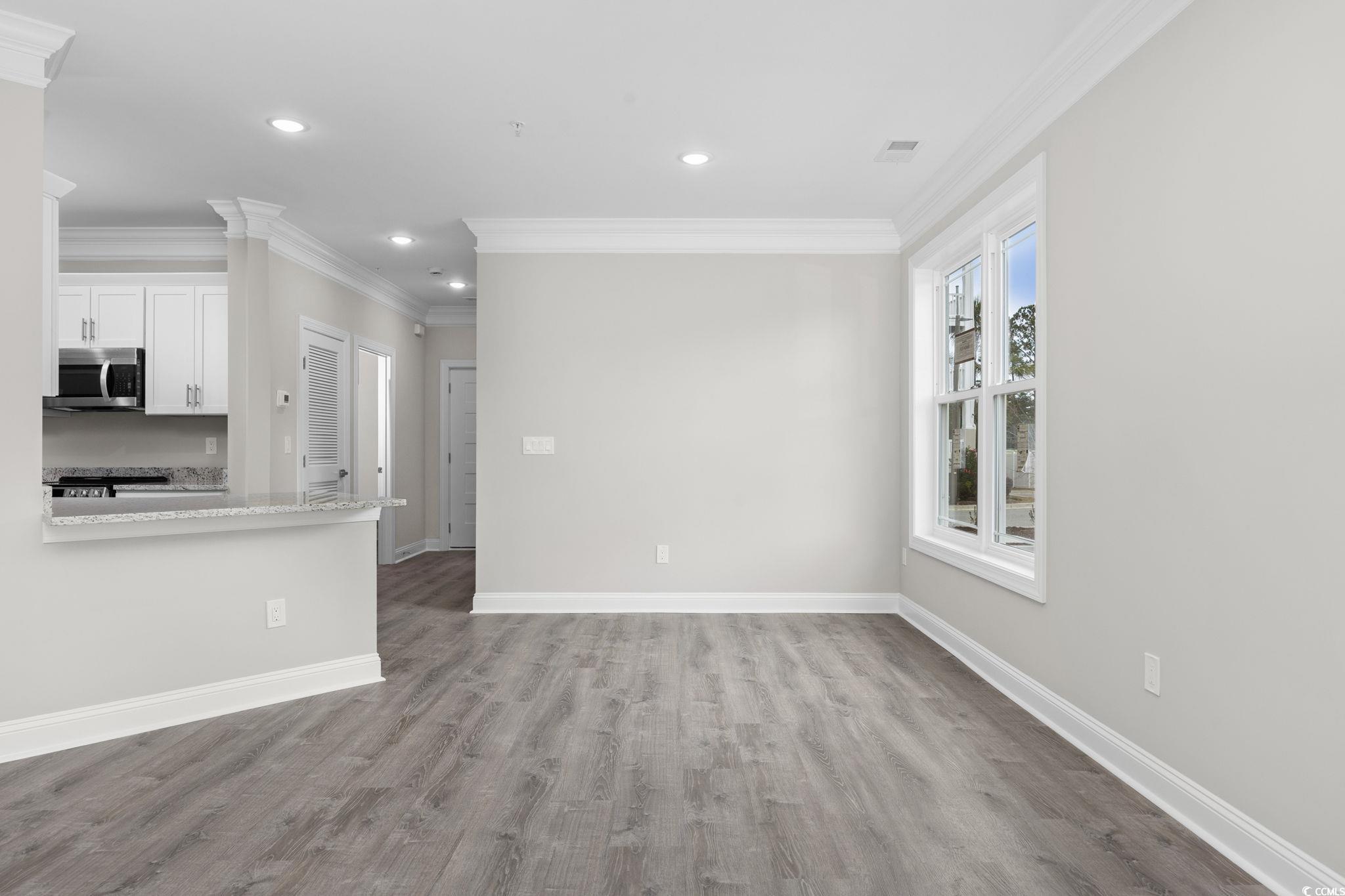 Indulge in coastal luxury with this stunning 3-bedroom, 2-bathroom condo nestled in the Myrtle Beach area. The condo has been absolutely fully loaded. This new construction end unit with 9 ft ceilings and waterproof LVP floors throughout, is simply a step above the rest. The kitchen is a chef's delight, featuring stainless steel appliances, granite countertops, and soft-close cabinets, creating a seamless blend of style and functionality. Graciously sized bedrooms offer extra comfort, crown molding throughout adds a touch of elegance to the space, while oversized SCREENED IN balconies provide the perfect vantage point for enjoying the gorgeous surroundings. Embrace the convenience of beach living with access to the ocean within just 5 minutes. This thoughtfully crafted condo not only promises a lifestyle of comfort and sophistication but also offers the practicality of low HOA fees. Seize the opportunity to make this haven yours and enjoy in the charm of coastal living in Myrtle Beach! Call for more info today. Some photos have been virtually staged.