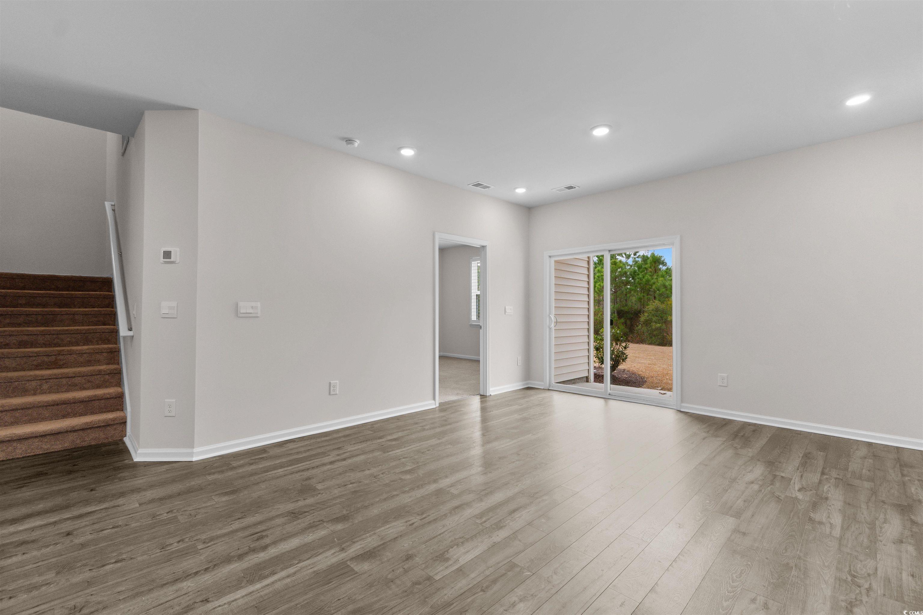 Welcome home to 3710 Bell's Lake Circle! This Townhouse (unlike a condo) comes to you with land you call your own, and a one car garage! This is truly the American Dream of owning a home with your own land with little hands-on maintenance as the HOA takes care of the yard and landscaping for you along with a sprinkler system! Furthermore, the building insurance is also covered! This is a lightly used beautiful three-bedroom home which also has three FULL baths, including the downstairs primary bedroom with a dual vanity, a walk-in closet and a large shower! This super clean 2022 two level townhouse comes to you better than new as like a lot of new construction, items had to be added such as the conveying refrigerator, washer and dryer, and beautiful plantation shutters. Off the additional downstairs bedroom, the kitchen has granite countertops, stainless appliances, breakfast bar, large pantry, and the convenience of a gas stove. The kitchen overlooks the open concept living area which heads to the backyard, with a patio backing up to a quiet private wooded area with area for patio expansion. Upstairs you will find the large third bedroom area and full bath along with the attic which is easily accessible through a large full door where you will find an ample finished storage area and an instant hot water heater! There are a lot of job opportunities in this growing area including UPS, Amazon and Pepsi, along with easy access to highways to other areas, including beaches, medical facilities and golf courses! Do NOT let this one get away!