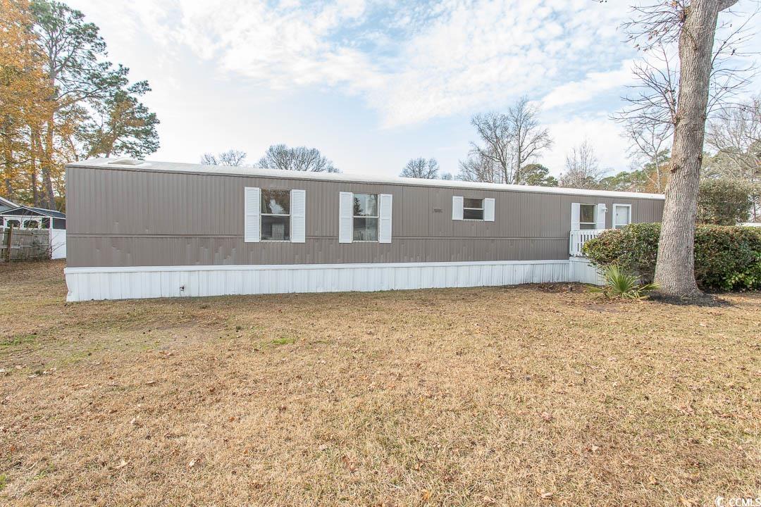 Newly renovated oversized single-wide manufactured home situated on a desirable corner lot with peaceful lake views. This 2-bedroom, 2-bath residence has been freshly painted inside and out and welcomes you from the spacious front deck overlooking Crystal Lake. Inside, a large family room flows seamlessly into the kitchen, creating an open and inviting living space. New LVP flooring runs throughout the home, complemented by sheetrock walls for a clean, modern look. The kitchen is beautifully updated with new cabinetry, granite countertops, stainless steel appliances, and a pantry for added storage. The generously sized primary suite features two walk-in closets and a private en-suite bathroom with a walk-in shower, new vanity, mirror, and lighting. The guest bathroom offers a new tile shower, vanity, and mirror, with convenient access from both the hallway and guest bedroom. Additional updates include replaced back stairs and a new concrete walkway leading to a large outdoor shed, perfect for extra storage. This home offers abundant space throughout and is ideally located near shopping, dining, entertainment, and Market Common. Enjoy golf-cart access to the beach and the serene Crystal Lake settingperfect for kayaking, fishing, or simply relaxing on the deck and taking in the view. Whether youre looking for a primary residence or a vacation retreat, this property checks all the boxes: affordability, proximity to the beach, low lot rent, and a peaceful waterfront setting.