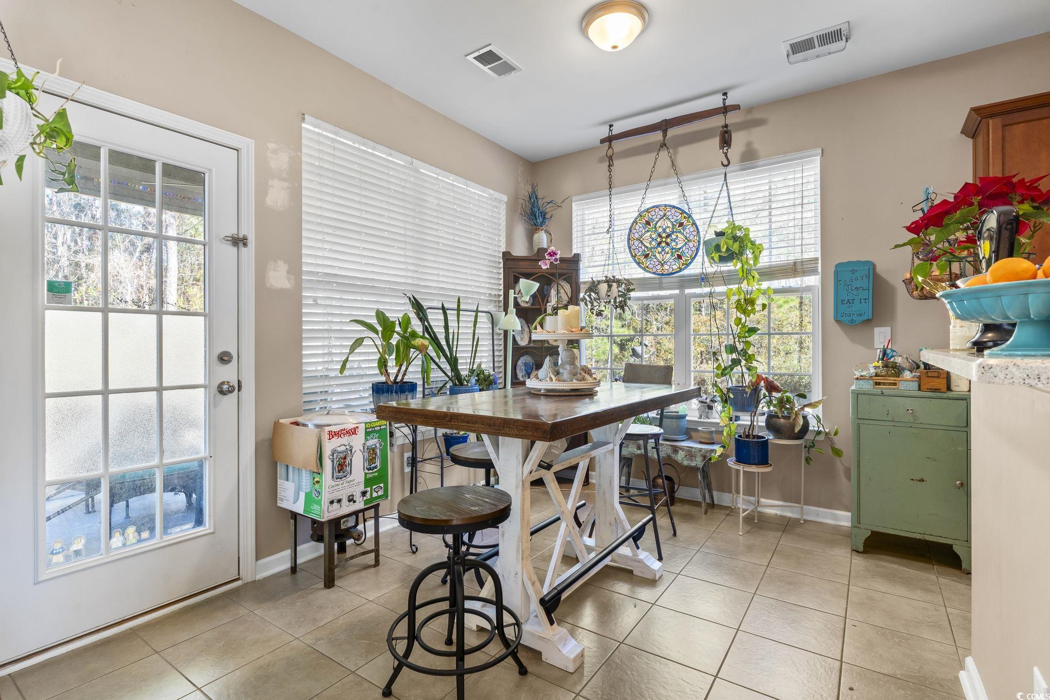 This spacious 5-bedroom, 3-bath home sits on an oversized lot of over a quarter acre, backing up to trees for privacy and a serene backyard view. Inside, youll find tasteful upgrades throughout, including solid surface countertops, upgraded cabinetry, tile flooring, and elegant tray ceilings in the owners suite and dining room. The open, functional layout offers plenty of space for everyday living and entertaining. Step out onto the screened-in porch and enjoy one of the largest home sites in the Woodbury community. Residents also enjoy shared amenities, including a clubhouse, swimming pool, and beautifully maintained common grounds. Prime Location: Just minutes from Sayebrook Shopping Center, Market Common, Coastal Grand Mall, Myrtle Beach International Airport, golf courses, and only 15 minutes from the beach.