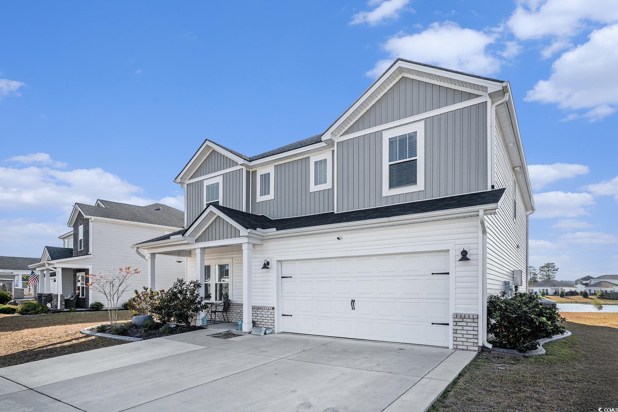 Located in the desirable Clear Pond community, this stunning newer home built in 2023 offers 5 bedrooms and 3 full baths with beautiful finishes throughout. The home features a formal dining room and a cooks kitchen with quartz countertops, stainless steel appliances, gas range, large pantry, and coastal-colored luxury vinyl flooring. Quality carpet is featured throughout the home, adding comfort to the living spaces and bedrooms. The spacious primary suite includes an expansive walk-in closet, a beautifully finished primary bath, and a private balcony overlooking the serene lake. Additional highlights include a large loft area, oversized laundry room, water softener, tankless water heater, expanded driveway, and professionally landscaped yard. Residents of Clear Pond enjoy access to a recreational center, kids playground, and two community pools. Thoughtfully designed and well maintained, this home offers space, comfort, and style in a picturesque setting.
