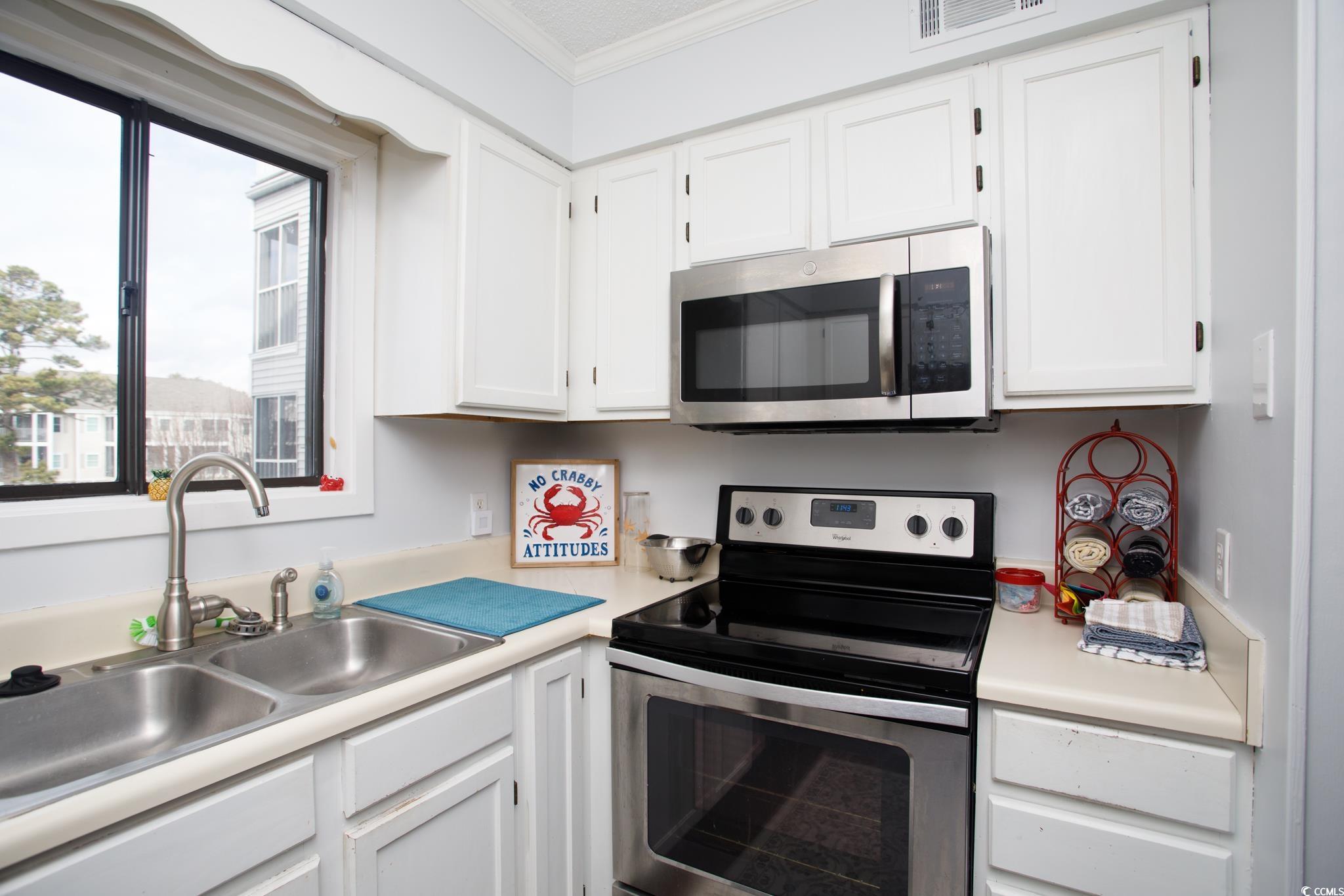 Discover coastal living in this exquisite 2-bedroom, 2-bathroom Canvasback condo, boasting a unique floor plan just steps from the beach and Main Street. Recently renovated with high-end finishes, including updated stone vanities in baths, new washer/dryer, stainless steel kitchen appliances, crown molding, and stylish new furnishings. Relax on your balcony with serene pond & fountain views. Added conveniences: two owner parking spaces, a private storage room for beach gear, and building elevator. Your dream North Myrtle Beach getaway awaits - Book your showing today!