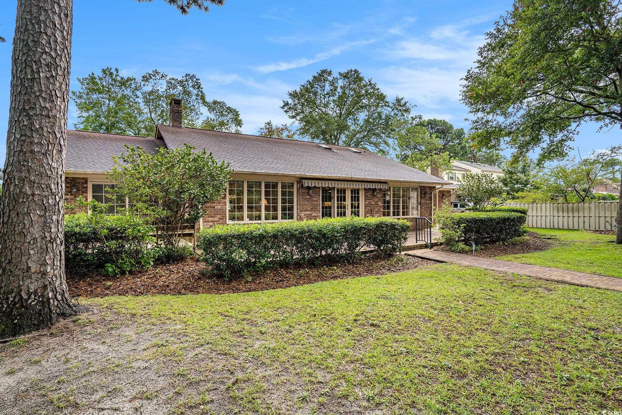 Welcome to this custom-crafted 3347 sq ft, beautiful brick home located in Deerfield less than 1.5 miles from the ocean. It offers three bedrooms and 3.5 baths. Two of the bedrooms have en-suite bathrooms and private decks. The primary bedroom has a completely renovated bathroom. Enjoy the large open floor plan with abundant natural lighting that is great for family gatherings and entertaining. The living area has a striking wood-burning brick fireplace while the kitchen is the center of the home and features a wraparound bar that accommodates up to 10 people. The oversized laundry room with plenty of cabinets, a desk, and a half-bath offers potential for use as an office, art studio, or craft room. Also included are an ADT security system and an oversized two-car garage. Outdoor features include a large brick patio, Rainbird irrigation system, a Leaf Guard gutter system, powered awning and mature trees. This home is a short golf cart ride to Surfside Beach and is centrally located just minutes from all you love about the Myrtle Beach area, including shopping, restaurants, golf, fishing piers, airport, medical facilities, and Market Common. Compare this home to new construction at half the size and schedule a preview today. All information is deemed reliable but not guaranteed. Buyer is responsible for verification of all information.