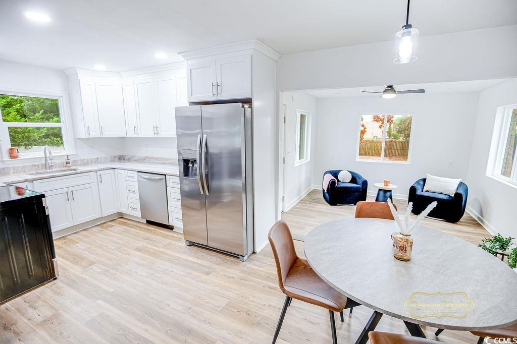 Beautifully renovated 3 Bedroom / 1.5 Bathroom home located in the heart of Myrtle Beach, just a short walk to the beach, shopping, dining, and entertainment. This move-in-ready property features brand new flooring throughout and a completely updated kitchen with modern finishes. All new windows were installed in 2025. The roof and HVAC system have both been replaced within the last two years. Fresh interior upgrades provide a bright and open feel. Ideal for a primary residence, second home, or investment property. Prime central location with strong rental potential.