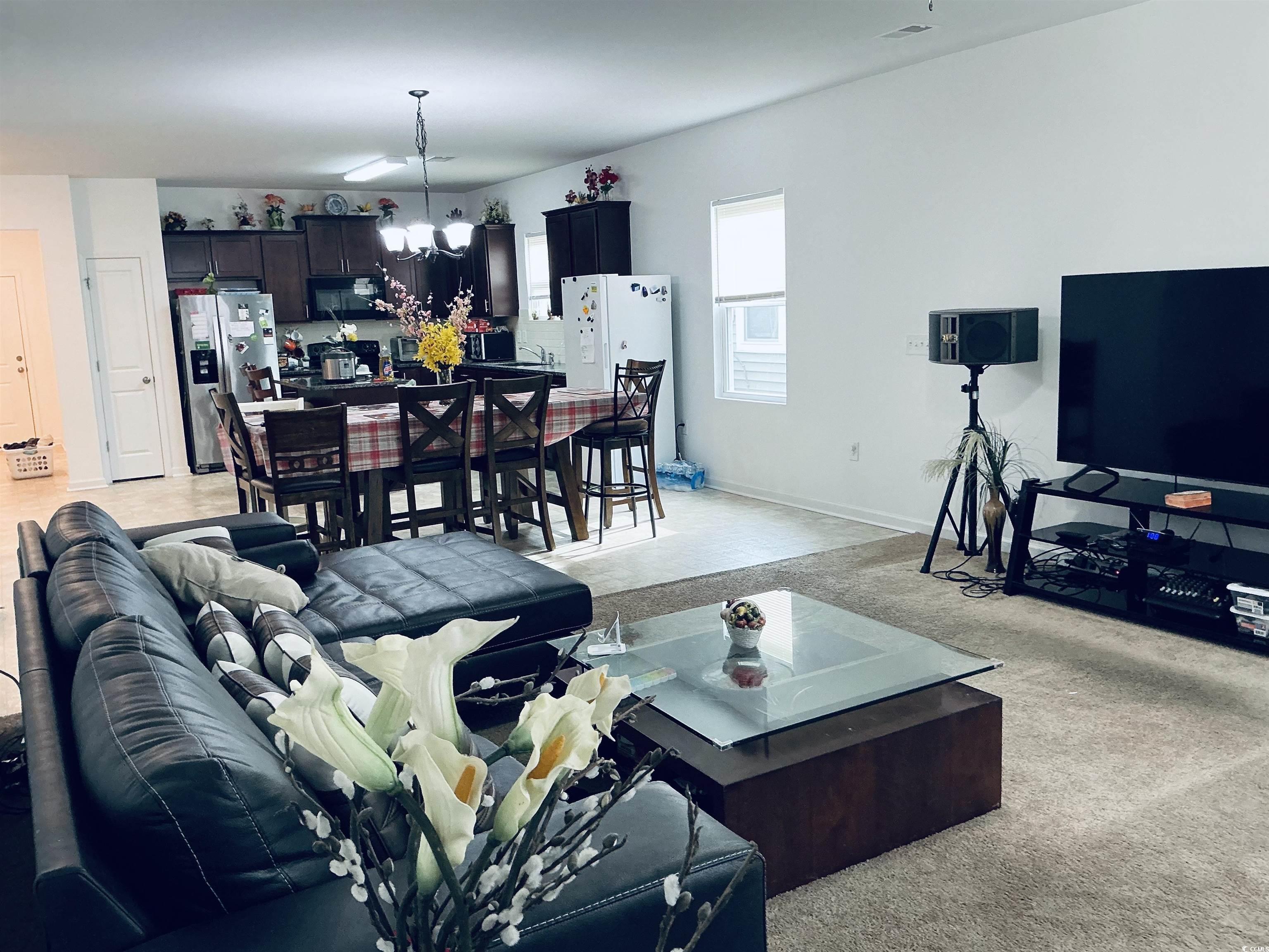 This model is a single story Compton floor plan offers the convenience living and accommodates 3 bedrooms, 2 bathrooms and a large study or office room with two windows. Open layout, kitchen with island, granite countertops. Beautiful owner suite with double vanities and a large linen closet. The great room leads to outdoor enlarged patio. Every room inside the house has new fresh paint coating. This floor plan has a 2-car garage, coat closet, pantry, and large storage closet. Irrigation system/sprinklers, ceiling fan prewires. Carolina Forest Schools. Amenities include swimming pool, fitness center, playground, clubhouse, open green space and walking paths. This community is conducive to biking, walking, and golf cart rides. A fantastic place to call home. Clear Pond is a natural gas community and offers close proximity to everyday shopping, recreation, golf, outlet malls, restaurants, Conway and Myrtle Beach medical facilities, Coastal Carolina University, Horry-Georgetown Tech and approximately 10 miles to the beach.