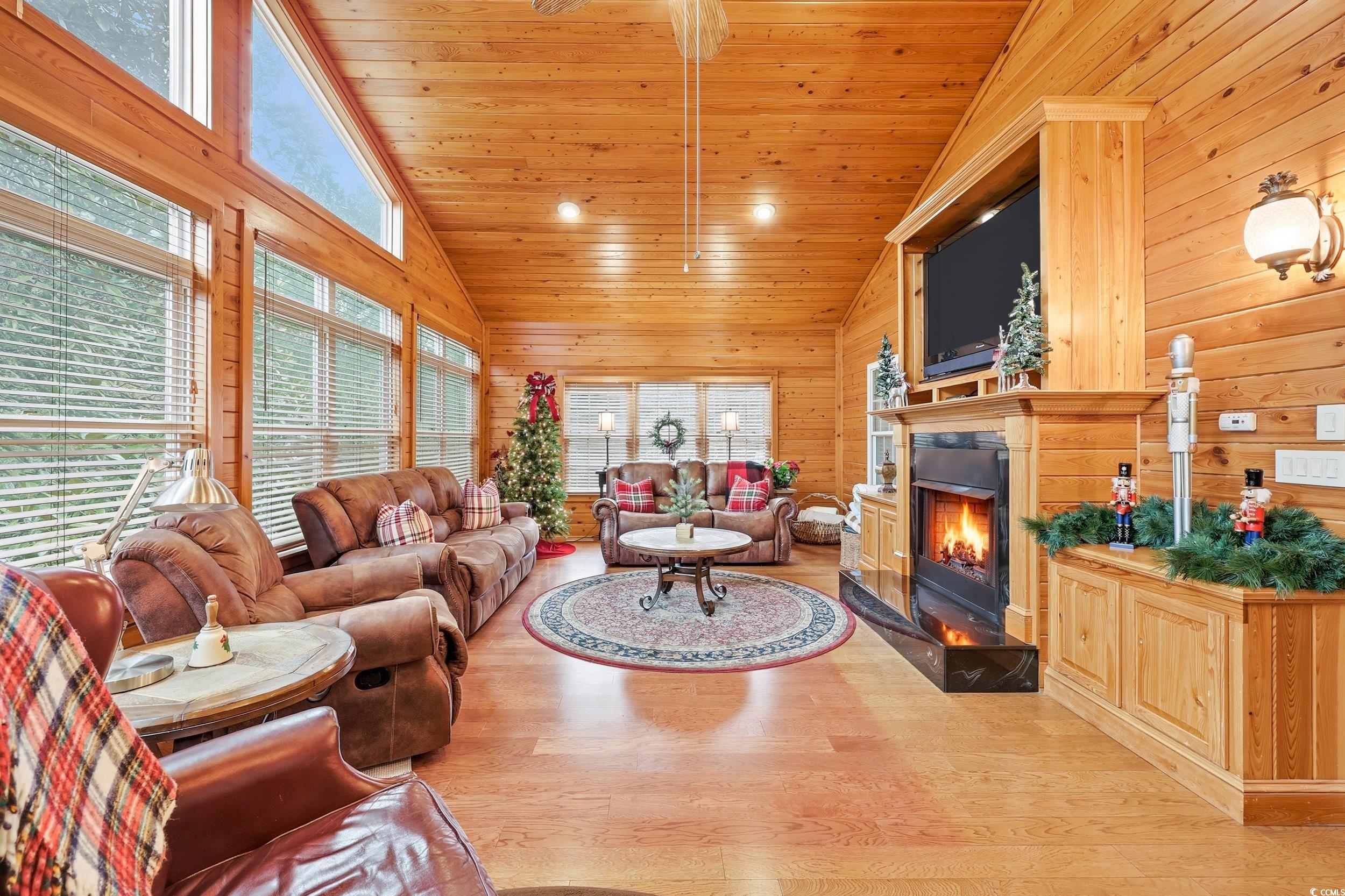 LivingRoom: BeamedCeilings, CeilingFans, Fireplace, VaultedCeilings