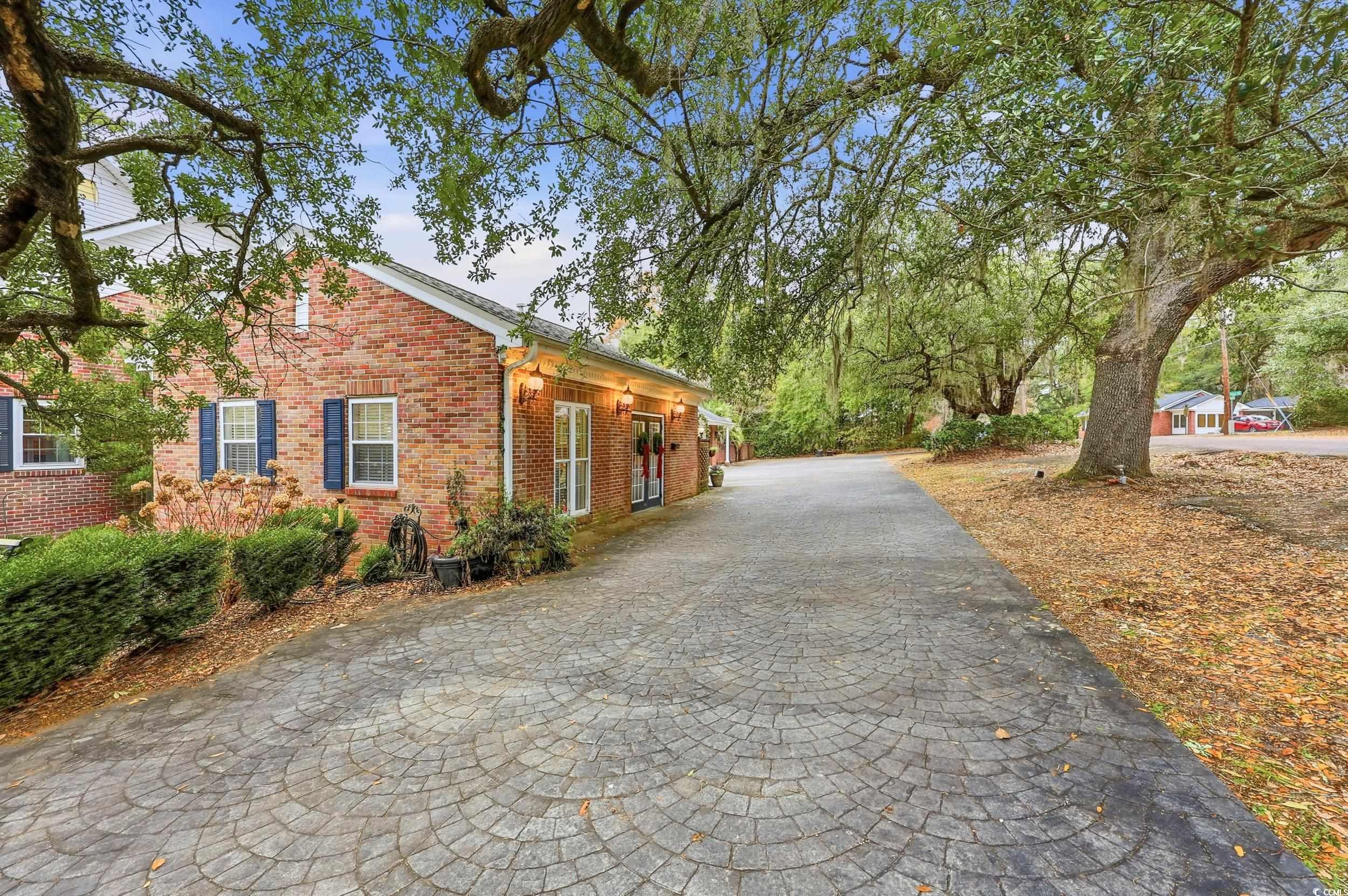 One of Kingstrees most iconic homes - this exquisite property encompasses 9 acres and is situated on the corner of Highway 527 and Woodland Drive in Kingstree, SC. A true southern estate, the front lawn is lined with beautiful live oaks and grand curb appeal. Upon entering from the front of the home, you are greeted by a brick courtyard with stunning landscape, a fountain and a porch that spans the front of the house. Inside, the front hall leads to a formal living room with large windows and a fireplace that overlooks the front lawn. Across the front hall is a formal dining room that opens to an eat-in kitchen - perfect for entertaining. Off the kitchen is a small sunroom that leads into a large room, that could be used as a home gym, an office, entertainment space or game room. This room also encompasses a laundry area and half bath. Across the western side of the home on the main level are two primary bedrooms, complete with large bathrooms and walk-in closets. Down the hall is a large, wood paneled living room with a grand fireplace and expansive windows that overlook a pond and swampland. Downstairs, there are two additional bedrooms, each with their own ensuite bathrooms and walk in closets. These bedrooms open to a small living area that would be perfect for a TV room, playroom, or game room. Also downstairs is a large, walk-in storage room - perfect for seasonal things and holidays decorations. The lower level also has a separate exterior entrance. The exterior of the home is skillfully designed and boast a covered breezeway between the home and the garage. The expansive 4 car garage is heated and cooled, offering space and functionality. Between the garage and house is a true outdoor oasis that is equipped with a patio area and a pool. Spanning over 7,000 square feet, this home is perfect for a large family or a family who loves to host and entertain. Equipped with many extra amenities such as landscape lighting, incredible concrete and brick work, a spacious floor plan and high end finishings, this home has been meticulously cared for over the years and is ready for another family to make it their own!