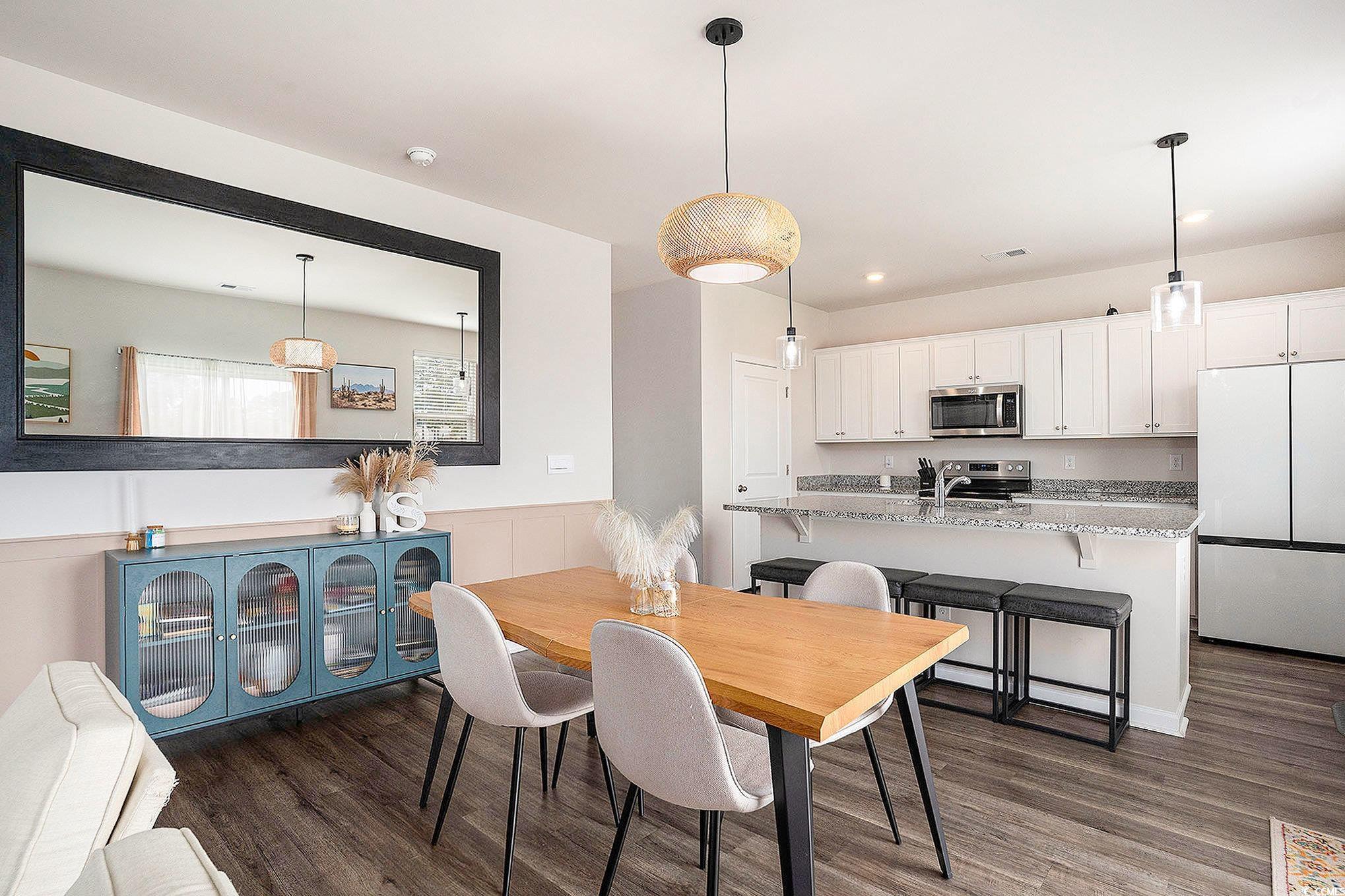 Beautiful home on what was the 18th hole, overlooking a pond is perfect for relaxing. Located in the award winning ST. James School District this home has a large open floor plan, Living Room has built in fireplace, natural lighting, and great for entertaining. Kitchen includes a large pantry, a lot of cabinet space, granite countertops, and is open to the dining and living room. Low maintenance vinyl plank flooring throughout the entire first floor. Sliding glass doors off the dining lead to the patio creating a seamless transition from indoor to outdoor living. The owner's suite is a perfect retreat with a walk-in closet with upgraded shelving,and generous owner's bathroom including a double vanity, large shower, and a separate linen closet. Added bonus the laundry room is on the second floor with all of the bedrooms for ease. Three additional bedrooms with plenty of closet space. Control the thermostat, front door light and lock, and video doorbell from your smartphone with the integrated smart home package. Island Green is close to 707, 31 for easy access to all restaurants, shopping, the beach is a 15 minute ride away. **Agent is related to Sellers.