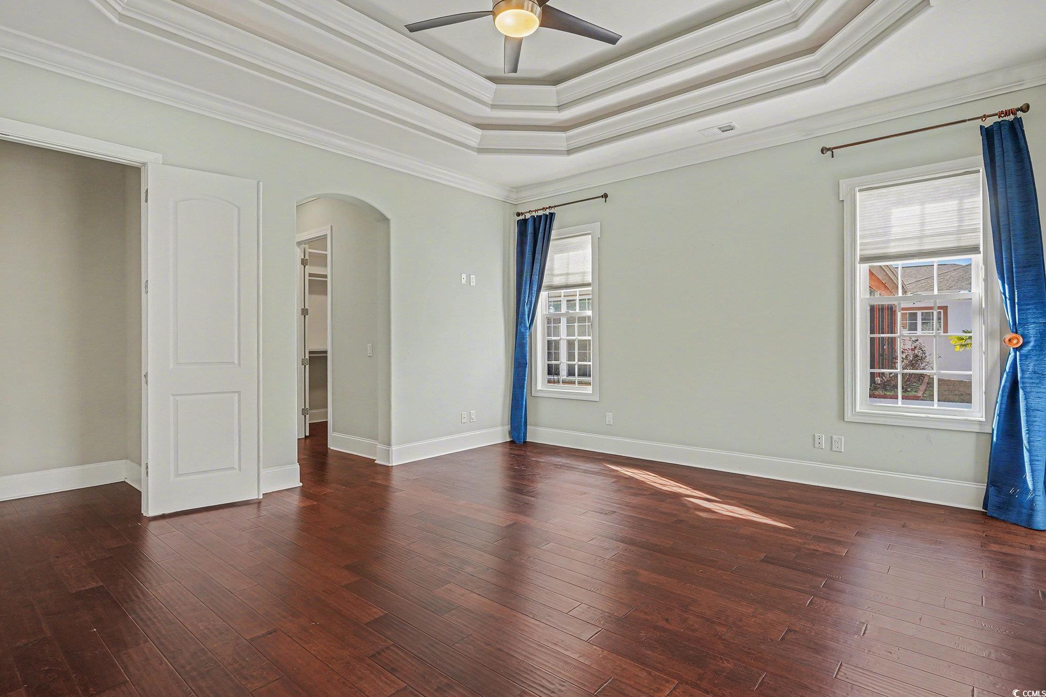 PrimaryBedroom: TrayCeilings, CeilingFans, LinenCloset, MainLevelMaster, WalkInClosets