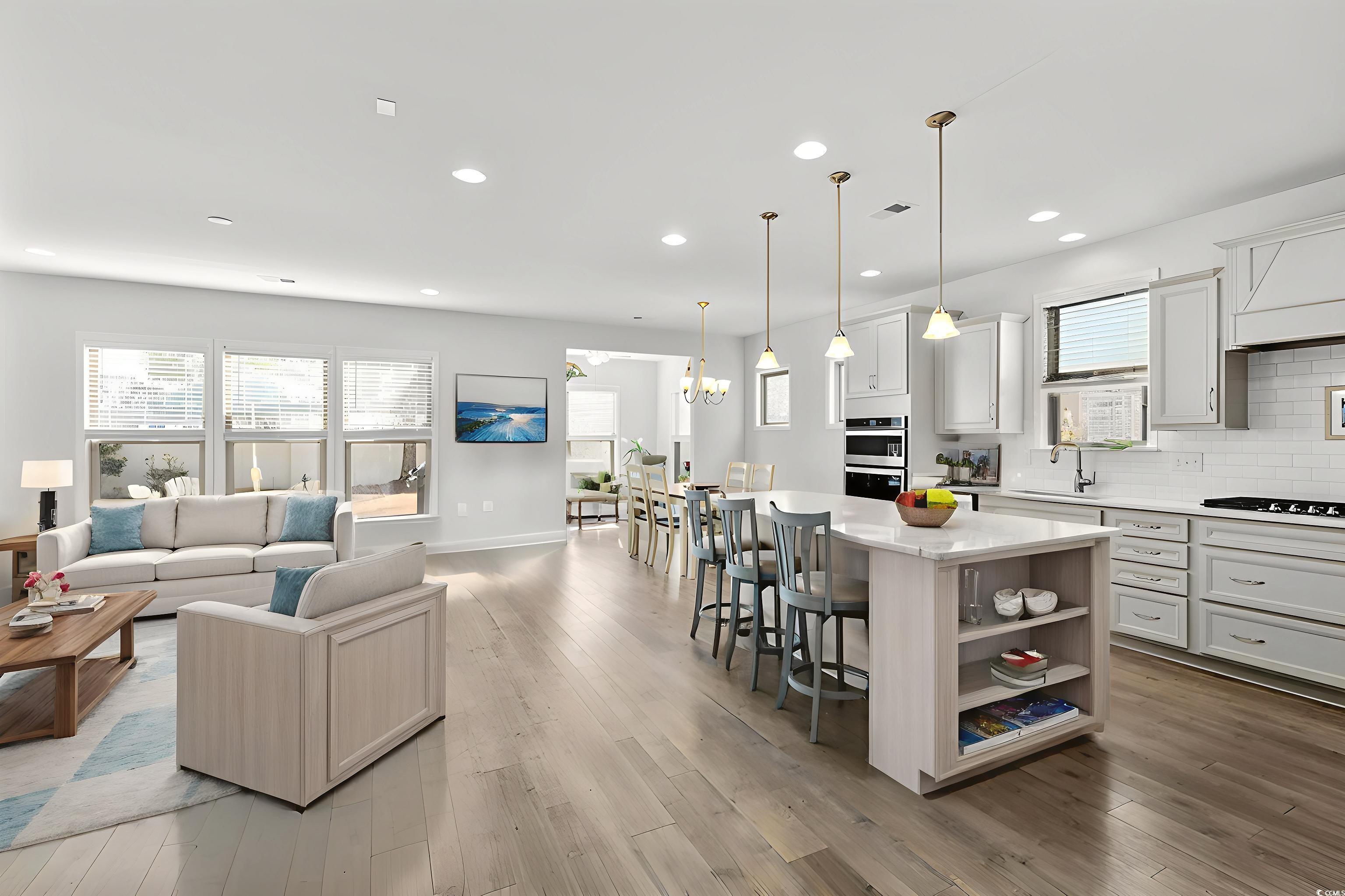 Welcome to your next chapter in the highly sought-after Del Webb at Grande Dunes, an exclusive 55+ lifestyle community. This beautifully designed 3-bedroom, 2-bath home features the popular Abbeyville floor plan, known for its open layout and comfortable, easy living. The heart of the home is the spacious open-concept kitchen, dining, and living area, complemented by a bright Carolina Room that extends your living space. The kitchen is both stylish and functional, showcasing quartz countertops, a large center island, stainless steel built-in appliances, and a generous pantryperfect for everyday living or entertaining. The private backyard offers a peaceful setting with no homes directly behind, providing a sense of privacy and tranquility. Upgraded landscaping enhances the outdoor space, creating a beautifully maintained environment to enjoy throughout the year. The primary suite is filled with natural light and serves as a relaxing retreat. The owners bath features a double vanity with quartz countertops, a tastefully tiled shower, and a spacious walk-in closet. One of the guest bedrooms includes a built-in Murphy bed, offering flexible space thats perfect for hosting guests while easily converting back to a home office or hobby room. Built to modern standards, the home includes energy-efficient features designed to help reduce utility costs, an irrigation system, gutters, and a Sentricon and Taexx termite protection system. An extra-wide driveway provides ample space for two vehicles. Enjoy leisurely strolls or bike rides along the countless sidewalks and the paved path running alongside the beautiful intracoastal waterfront. Running errands or heading to the beach is a breeze with your golf cartthe ultimate beach life necessity! And speaking of the beach, easy access is granted via the Grande Dunes Ocean Club, a delightful amenity included in the HOA amenities. Please note that some of the interior pictures have been virtually staged.