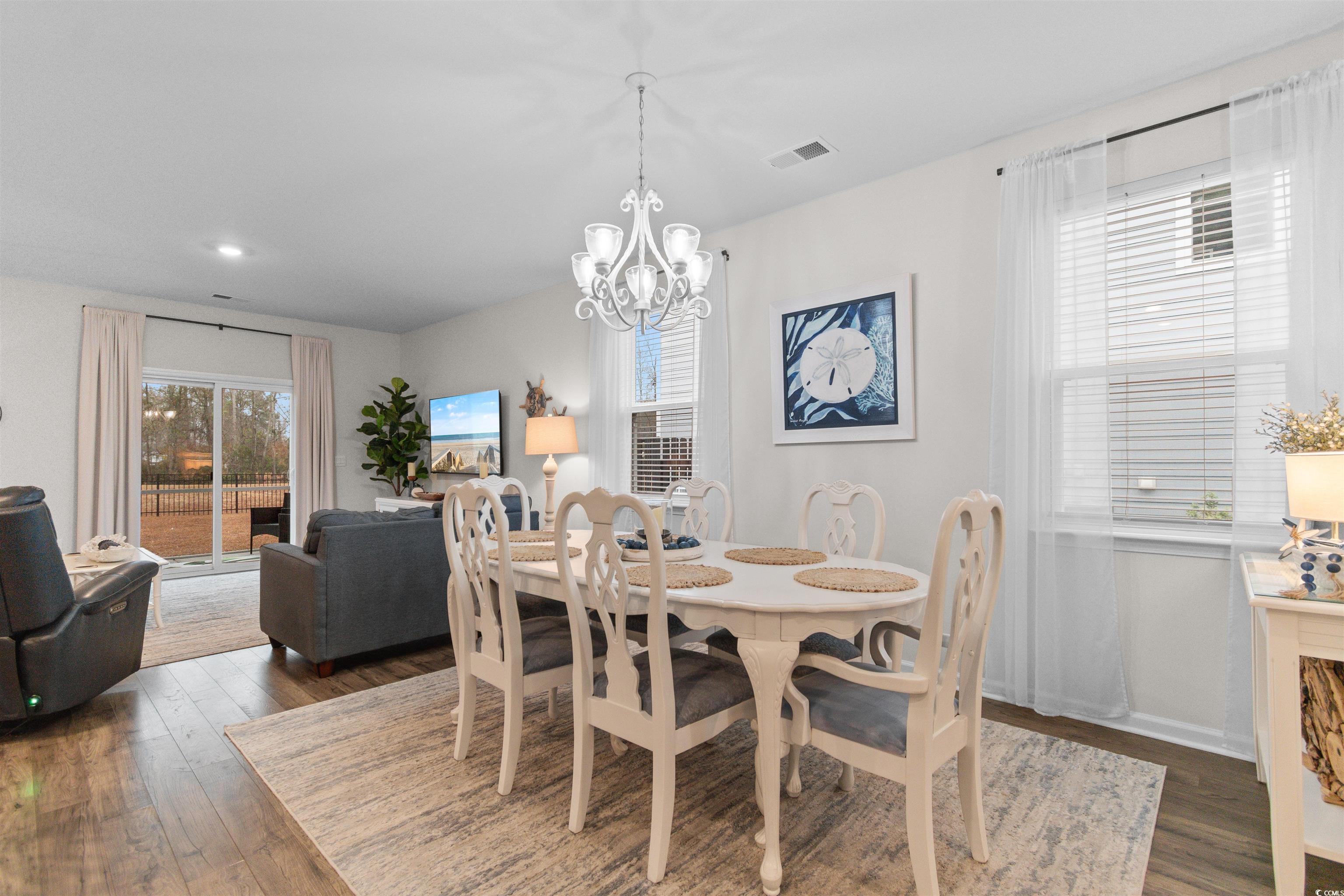 Discover this beautifully designed home built in 2023, featuring 5 spacious bedrooms and 3 modern bathrooms, perfect for families and entertaining. Situated at the end of a peaceful street, youll enjoy the serenity of this neighborhood while being just moments away from the vibrant Market Common. As you step inside, you'll be welcomed by an open floor plan that seamlessly combines comfort and style. The heart of the home is the well-appointed kitchen, complete with a large pantry, stainless steel appliances, luxurious granite countertops, and a generous islanda perfect spot for gatherings. The dining area and cozy living room flow into a screened porch that overlooks a private, wooded backyard, ideal for peaceful evenings. The first floor offers a versatile guest bedroom and a full bathroom, along with a convenient two-car garage. Upstairs, a spacious loft awaits, providing an excellent space for kids activities or a home office. The expansive primary suite includes an ensuite bathroom with a dual sink vanity and a standing shower, plus a large walk-in closet for all your storage needs. Three additional bedrooms and another full bathroom, along with a thoughtfully placed laundry room, complete the second floor. With ample space to grow, enjoy, and entertain, this home is a perfect blend of style and functionality. Home also features hurricane film on all windows and glass doors and has gutters. Residents of Meridian at Market Common enjoy exceptional amenities, including a recreation center with an air-conditioned indoor pickleball court, a large outdoor pool, hot tub, fire pit, and well-maintained walking and biking trails. The Market Common Community features include a spacious community pool and amenities that you can join. Market Common is less than a mile to the beach, state park, boardwalk, Springmaid Pier, ocean boulevard and so much more!! Golf carts are the transportation of choice.whether you are going up to Market Common for a movie, dinner, one of the many shows and attractions offered around the lake or at Valor Park throughout the year, shopping, the gym or whatever the occasion.or pack your cooler, throw your beach chairs on the back and head to the beachMarket Common has something for everyone!! You are not just buying a home, you are truly buying a lifestyle!!! With its great location and easy access to Hwys 501, 707, 544, 17 Business & By-Pass, 31, 22, 9 and all the frontage roads, getting to any point of the county is within just a short drive. You can enjoy all that the Grand Strand has to offer; including shopping, dining, healthcare, attractions, entertainment, state parks, piers, marinas, golf, Market Common, Broadway, Barefoot, Brookgreen,Intracoastal Waterway and of course the beautiful white pristine beaches of the Carolina coast. Dont miss out on the awesome opportunity to own your own piece of paradise so you can enjoy the laid back lifestyle that only comes from living near the coast. The Grand Strand has so much to offer, for any age. Come home to the beautiful Grand Strand today!