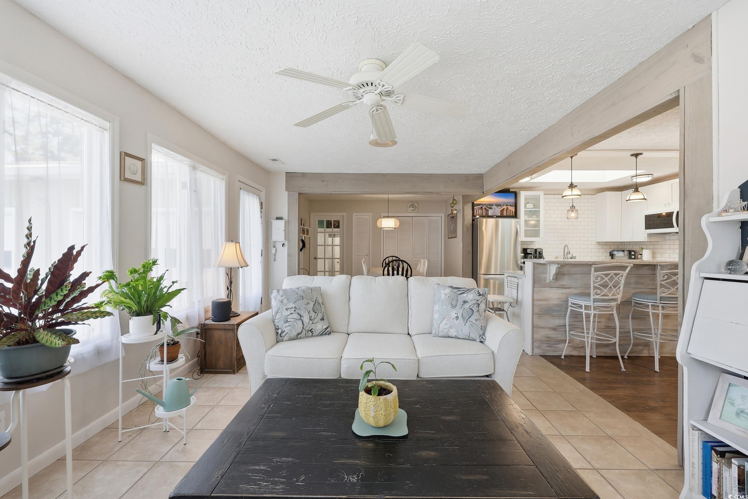 Welcome to Coastal Comfort, a charming light-filled home located in the gated community of Windjammer Village in Little River. 2219 Swamp Fox Circle offers a flexible layout with two inviting living areas, one featuring a cozy fireplace and the other filled with natural light from a wall of windows. The eat-in kitchen showcases quartz countertops, white cabinetry, stainless steel appliances, farmhouse sink, and tile flooring, flowing easily into the main gathering spaces. With three bedrooms, two baths, a double garage with workspace, and an outdoor storage shed, the home blends functionality with character. The screened-in front porch creates the perfect space to enjoy coastal breezes, while hurricane shutters and a private well add convenience and peace of mind. Windjammer Village is known for its unique homes and vibrant lifestyle amenities, including two pools (with kiddie pool), playground, tennis courts, basketball courts, gym, library, game room, meeting space, RV and boat parking, community dock, and direct access to the Intracoastal Waterway. Community roads are scheduled to be repaved at no additional expense to homeowners. Located just minutes from dining, golf, parks, and five minutes to Calabash, NC.