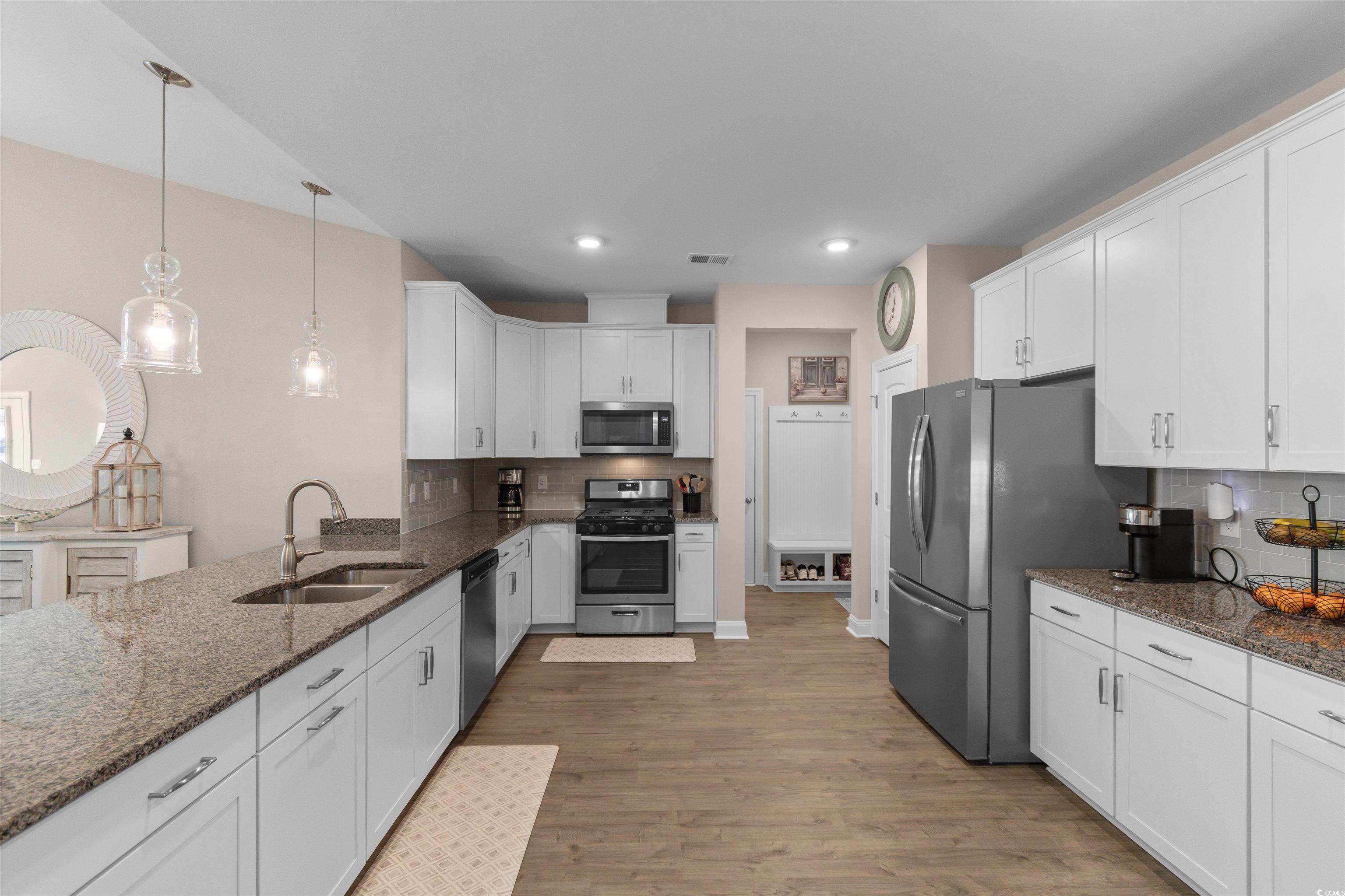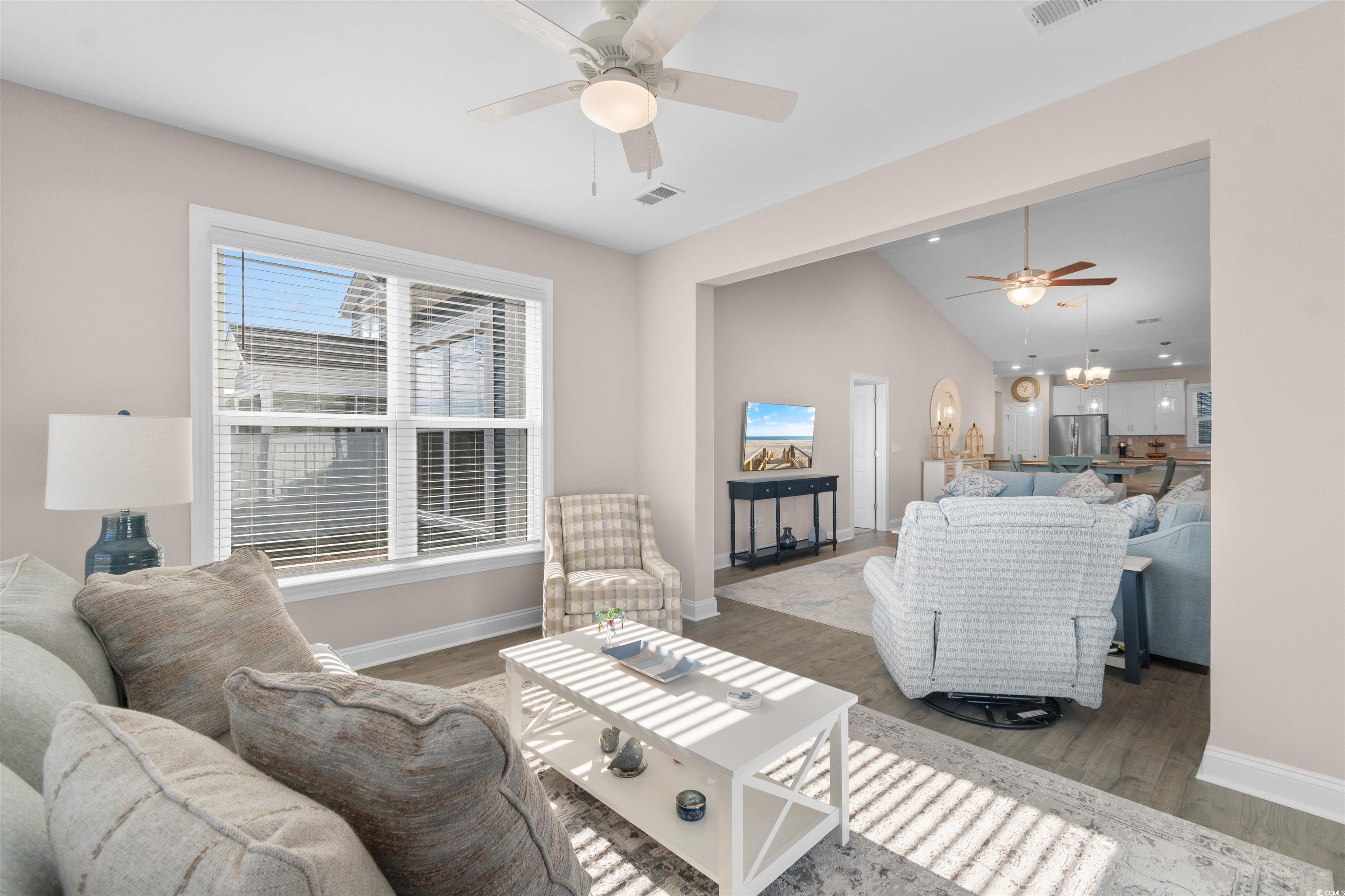 Welcome to this beautiful 3-bedroom, 2-bath home in the desirable Surfside Plantation community in Myrtle Beach. This comunity is just a short drive to the beach, shopping, dining, and entertainment. This home offers an open, split-bedroom floor plan that provides both privacy and great space for relaxing or entertaining. Enjoy this open concept kitchen, dining, and living area that makes it easy to host gatherings or enjoy everyday living. Relax in your beautiful Carolina Room overlooking a large rear yard. The kitchen features ample counter space, upgraded stainless appliances, stylish cabinetry, and a gas stove for those who love to cook. The expansive owners suite features added space with a large bay window. The ensuite includes a double vanity, large walk-in shower, and a massive walk-in closet by Closets by Design. Guest bedroom also has a Closet by Design closet which provides for excellent storage and organization options. Well-planned split-bedroom layout maximizes privacy for the owners suite and guest rooms. Your gonna love your well maintained large, private yard updated with palm trees and white landscape stones. This outdoor space creates a peaceful outdoor oasis. A screened in patio space is ideal for morning coffee, evening barbecues, and year-round outdoor enjoyment. Hurricane shutters have been installed on all windows and doors. In-line water filter professionally installed on tankless water heater. Surfside Plantation, a newer single-family home community, is near Surfside Beach and Myrtle Beach, approximately 4 miles to the nearest beach.