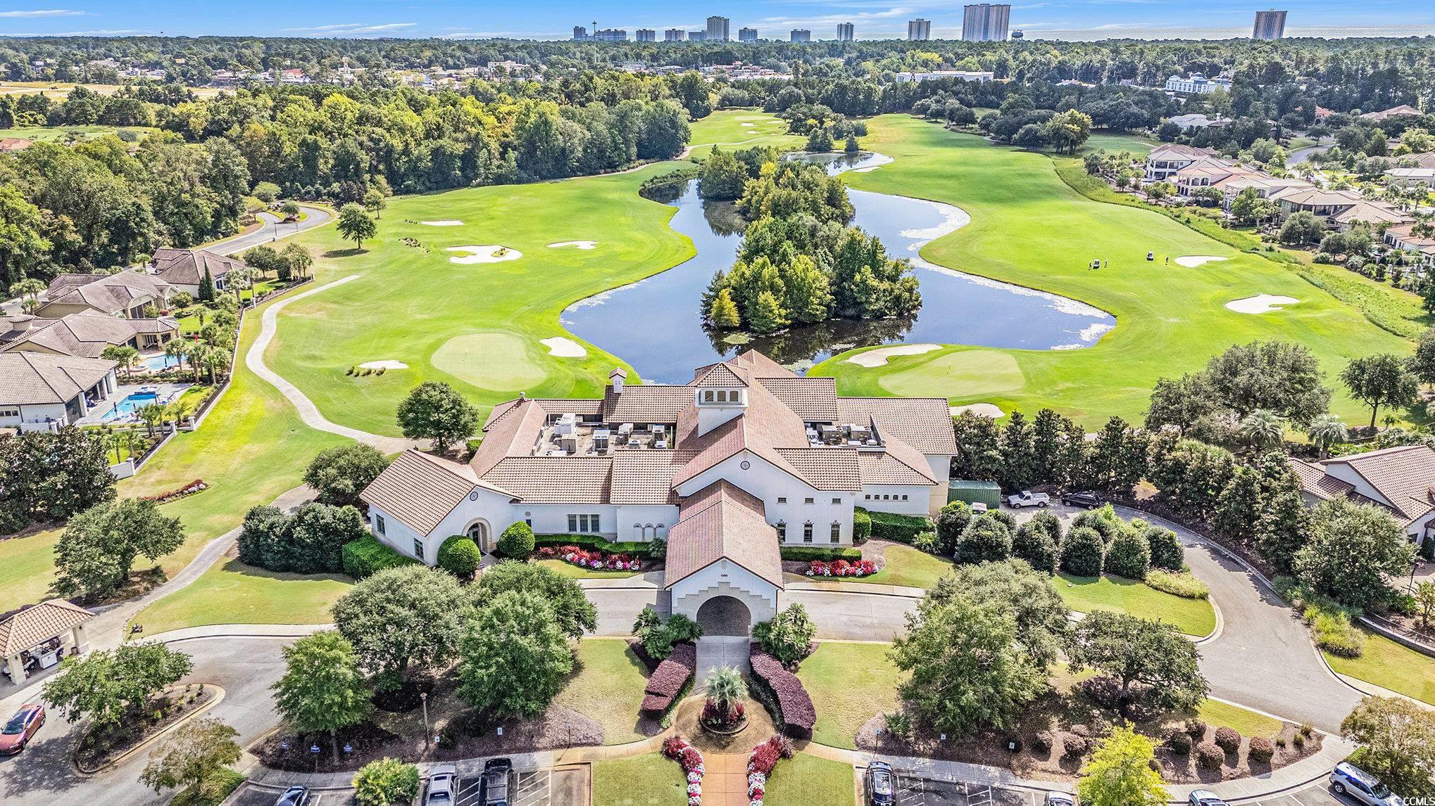 Mediterranean-designed custom home, spanning nearly 6,000 sq. ft., overlooks the picturesque lake/pond and is located in the exclusive, guard-gated community of Grande Dunes. Seller will be leaving the home beautifully furnished (minus a few personal items). The residence boasts four ensuite bedrooms, two more half baths and ICF fortified construction (Insulated Concrete Form). Beyond the grande iron front entry doors a resort-style courtyard featuring a pool surrounded by covered verandas and patios, New hot tub, outdoor kitchen with built-in grill and wet bar, and a separate casita/in-law suite. Formal dining and living rooms are adorned with crystal lighting, chandeliers, and soaring two-story windows. The professional chefs kitchen offers six burners plus a griddle, dual-fuel two-oven range, extensive cabinetry with a multi-station workspace and separate prep sink, and a breakfast room opening to a covered lanai with views of a fountain on the rear lake/pond. The first-floor primary retreat showcases a roaring fireplace, spa-inspired bathroom, two custom walk-in closets, and a sitting room that opens out to the courtyard. A cozy family room centers around a stonecast fireplace with double doors leading to the courtyard. Upstairs, an additional ensuite bedroom opens to a large rear sundeck with views of the backyard and water. The loft/game room features Juliette balconies overlooking the formal areas below, with double doors leading to a covered veranda offering a birds-eye view of the courtyard. The state-of-the-art, eight-seat (reclining) movie theater is equipped with a new 125"" projection screen and immersive surround sound. An oversized two-car plus golf cart garage provides storage including a pulldown attic storage and epoxy flooring. Additional features include remote-controlled window blinds and Lutron smart lighting switches. ** As a resident of Grande Dunes your HOA fee includes membership to the coveted Ocean Club ocean front w/fine dining, resort style pool/hot tub, poolside food & beverage service, ocean front umbrellas and chairs are provided during the ""season"", golf cart parking and plenty of fun activities on the calendar almost every day of the month. Grande Dunes is an ocean front neighborhood that expands and bridges over the intracoastal waterway, it is the home of two 18-hole golf courses, The Resort Course (public) and Members Club (private), several on-site restaurants, deep water marina, Har-tru tennis facility and miles or biking/walking trails! Shopping, medical facilities and entertainment within blocks.