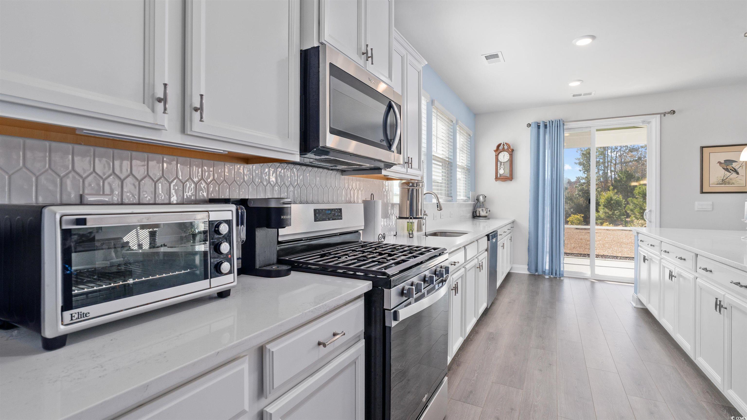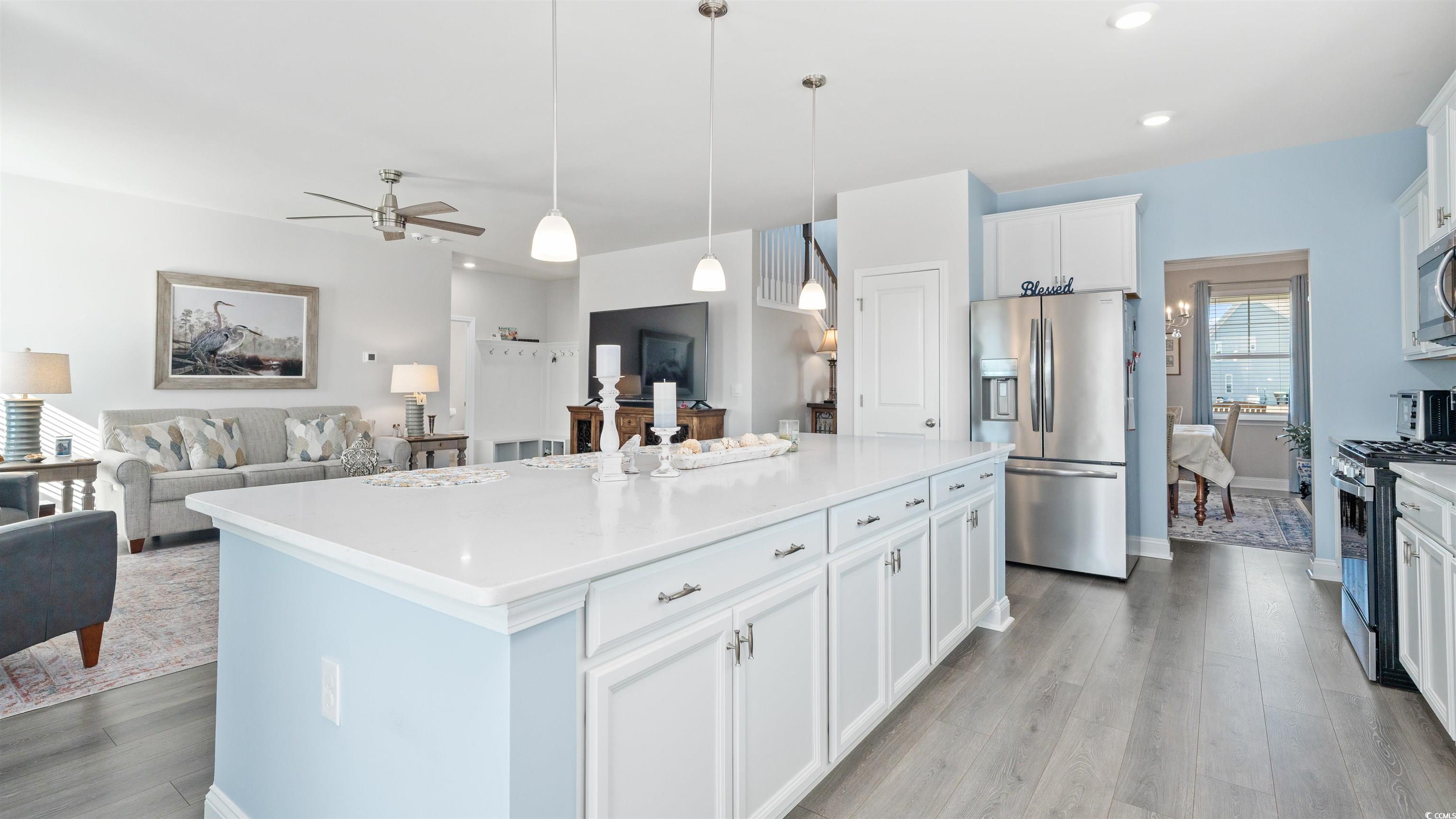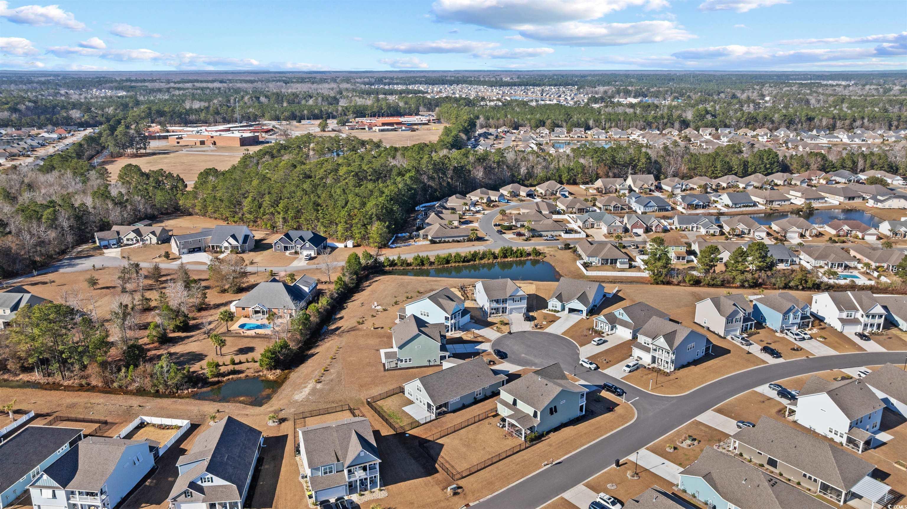 Welcome to this beautifully maintained 5-bedroom, 3-bath, two-story home offering 2,645 heated square feet, ideally situated in a cul-de-sac. The first floor of this thoughtfully designed floor plan features a formal dining room, a guest bedroom, and a beautiful kitchen with quartz countertops and an oversized island, perfect for everyday living and entertaining. The second floor offers a generously sized owners suite with a private bath featuring a tiled shower, dual quartz-top vanities, and a large walk-in closet, along with three additional bedroomsincluding an exceptionally large bonus bedroom measuring 19'5"" x 19'11""and a conveniently located laundry room. Recent updates include fresh interior paint and new wallpaper, while refined details such as crown molding in the primary bedroom add to the homes polished feel. The screened-in porch connects to a large concrete pad overlooking a small retention pond, providing a peaceful outdoor retreat with a sense of privacy in the backyard ready to entertain! This home was built with smart home technology, keeping peace of mind with the luxuries of security, wireless thermostat control, and video doorbell access from your phone!; Residents enjoy access to a community swimming pool, and the home is conveniently located approximately 10 minutes from Garden City Beach, with easy access to shopping, dining, and major roadways. A well-cared-for home offering space, comfort, and locationschedule your showing today.