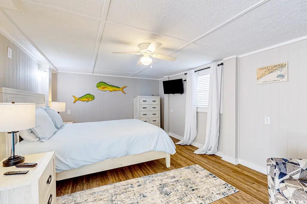 Welcome to this newly renovated raised beach house in the highly desirable Cherry Grove section of North Myrtle Beach, steps to the beach with no HOA. Whether youre looking for a primary residence, vacation home, or rental friendly property, this home checks every box. This fully furnished 3-bedroom, 3-bathroom home is thoughtfully designed with two separate lockout units, offering the flexibility to operate as one large home or two independent short-term rental units. The upstairs unit features 2 bedrooms and 2 bathrooms, while the ground floor unit offers 1 bedroom and 1 bathroomideal for maximizing rental opportunities, having a flex room, a mother-in-law suite or a private space. Recent upgrades include main level HVAC and ground level mini-split replaced in 2024, a complete kitchen remodel, improved lighting, LVP flooring, new rear doors, deck repairs and paint. Outside, enjoy ample parking, covered golf cart parking, and a fenced-in yard with plenty of space for entertaining. Relax in the covered outdoor sitting area, rinse off after the beach in the outdoor shower with hot and cold water, and enjoy the laid-back coastal lifestyle Cherry Grove is known for. Short-term and long-term rentals are allowed, making this a rare opportunity in a prime location close to the beach, dining, shopping, and all that North Myrtle Beach has to offer.