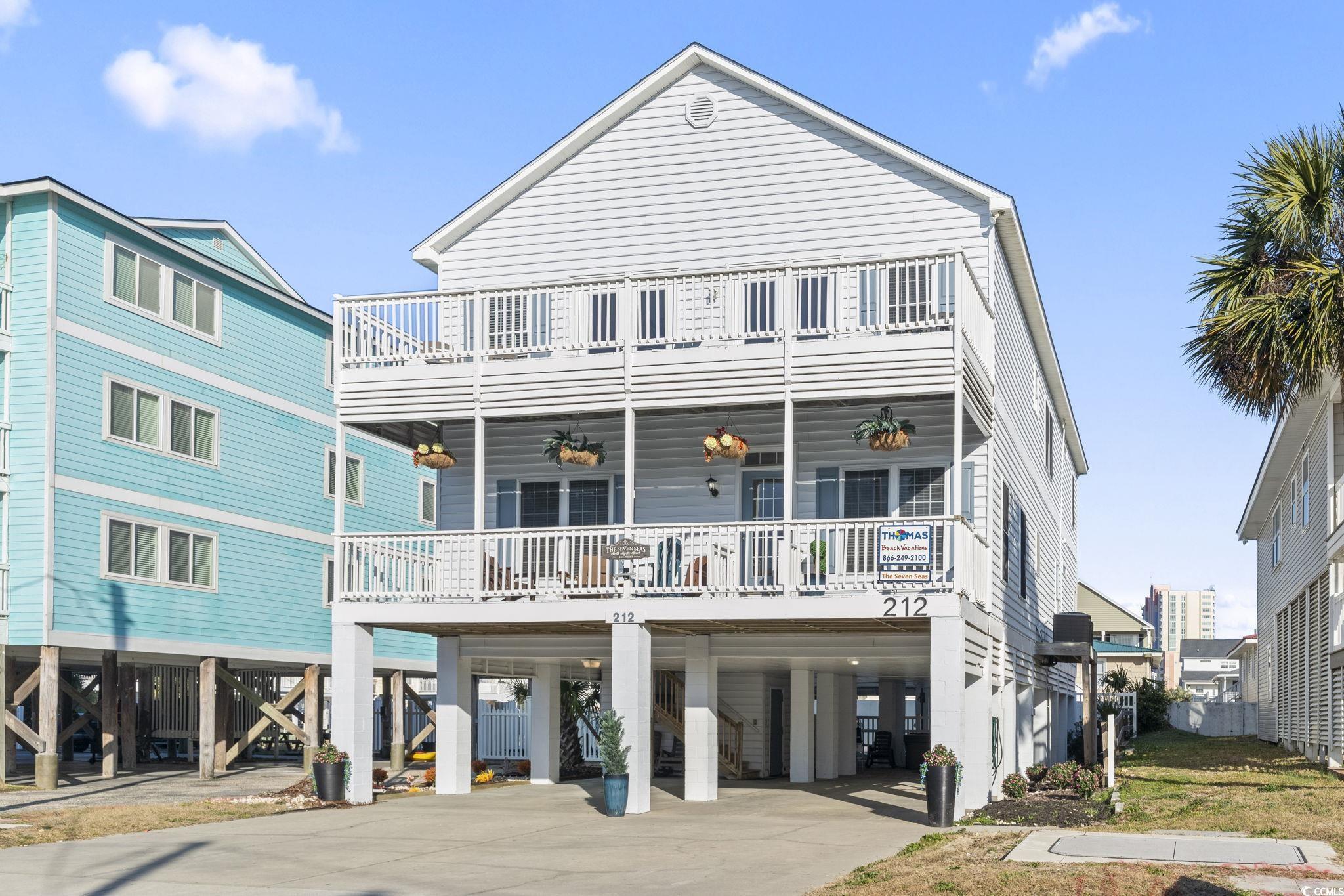 7-Bedroom Beach House with Private Pool, Hot Tub & Ocean Views - Cherry Grove! Dreaming of a rental-ready beach house you can enjoy year-round - just steps from the ocean? Welcome to a furnished, turn-key single-family home in the Cherry Grove section of North Myrtle Beach. Only the 4th house back from Ocean Blvd, this home offers ocean views, two wide front balconies, and the space to gather, relax, and entertain - whether you're buying a primary residence, second home, or investment property. From the moment you arrive, life here feels easy and fun. Mornings start with soft coastal light on the porches, coffee in a rocking chair, and a glimpse of the Atlantic. Afternoons mean beach walks just a short stroll away, then back home for pool time. Evenings are made for grilling, soaking in the hot tub, and sharing meals with a full house of family and friends. Built in 2003 and thoughtfully renovated in early 2022, this 7-bedroom, 5.5-bath home is fully furnished and rental ready. The ground level is designed for outdoor living with an in-ground private pool, hot tub, outdoor shower, swinging chair, and two grills -perfect after a beach day. The first living level features an open floor plan with 3 bedrooms and 3 full bathrooms. The main kitchen includes new countertops, stainless steel appliances, and a large breakfast bar, flowing into a dining area with seating for up to 24. The spacious living room offers sleeper sofas and plenty of seating, while large windows bring in natural light. LVP floors and crown molding add a polished coastal feel. Upstairs, the second living level offers 4 additional bedrooms, 2 full baths, and a half bath, plus a second living room built for fun. This space includes sleeper seating, a billiards table, foosball table, and chess/checkers table along with multiple arcade games and a new 85 TV. A second kitchen with a full-size refrigerator, dishwasher, sink, and microwave makes hosting large groups easy. There's also an owner's closet and two washer/dryer sets - one on each living level. Both floors open to full-width front balconies with rocking chairs, where you can enjoy ocean views and the friendly energy of this walkable beach neighborhood. With new flooring, fresh paint, updated landscaping, new appliances, a new hot tub, and select new furnishings, this home is truly move-in - or rent-out, ready. Located at 212 30th Ave North, North Myrtle Beach, SC, this home puts you close to dining, entertainment, and shopping, with easy access to main routes for quick trips throughout the Grand Strand. Spacious, updated, and just a short walk to the beach, this is the kind of 7-bedroom coastal home is ready for the 2026 rental season. Measurements are not guaranteed, buyer is responsible for verifying.
