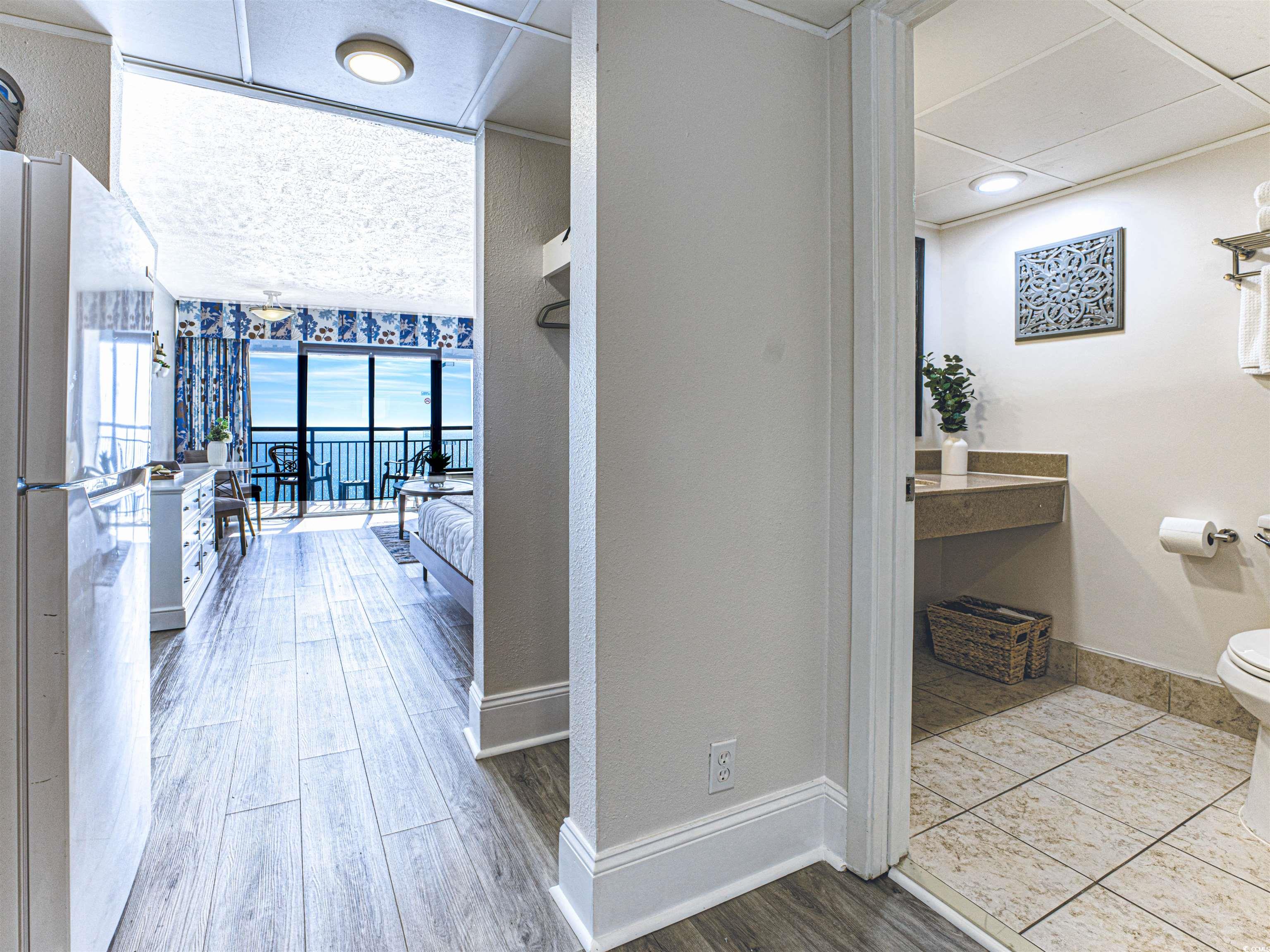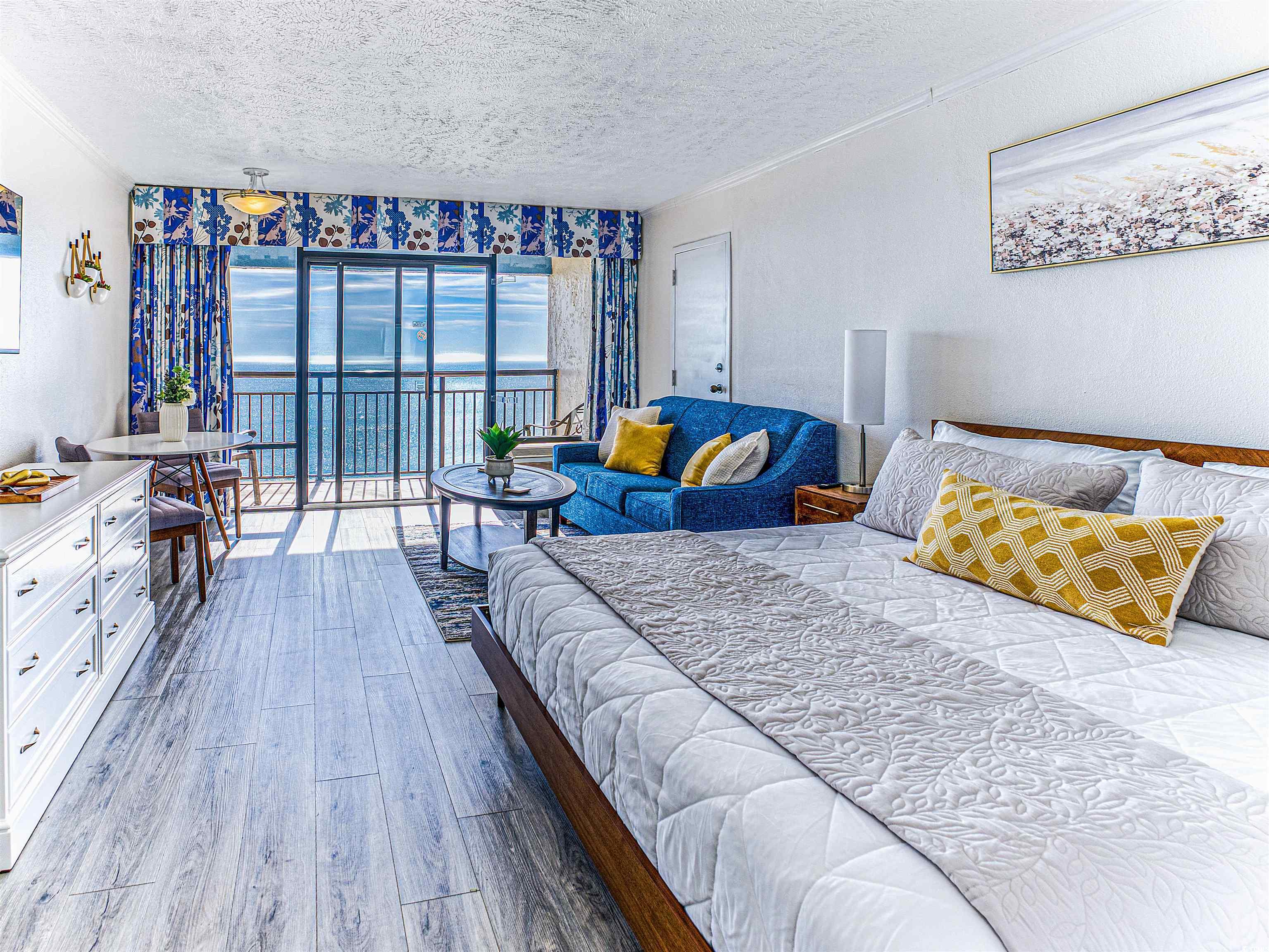 A Stunning Updated Direct Oceanfront Studio Condo awaits you! Experience the ultimate beachfront lifestyle in this beautifully updated 14th-floor efficiency condo at the prestigious Ocean Reef Resort, located in Myrtle Beach, South Carolina. Wake up to panoramic views of the Atlantic Ocean every morning, with the sound of waves just steps from your private balcony. This meticulously maintained, fully furnished direct oceanfront unit offers coastal elegance including newer flooring and mostly new furniture for a fresh, modern feel. A special treat is the king size bed as opposed to the two queen beds you'll find in many units. New patio furniture makes the outdoor space simply dreamy. Perfect as a vacation getaway, strong rental investment, or year-round retreat. The comfortable kitchen area includes a stove, refrigerator, and small sinkideal for preparing meals while enjoying ocean breezes. This unit is impeccably clean and top-rated on short-term rental platforms, with glowing guest reviews. Important buyer advantage: This unit was not part of the resorts recent bulk renovations, meaning no outstanding renovation debta significant savings compared to many other units! The reception and indoor common areas have been completely renovated last year; so no old hallways but open, classy spaces you'll love. Step outside to world-class resort amenities: multiple indoor/outdoor pools, lazy river, hot tubs, kiddie water park with slides, fitness center, arcade, on-site oceanfront restaurant, seasonal pool bar, and direct beach access. Located in the quieter northern end of Myrtle Beach, youre just minutes from shopping, golf, dining, and attractions like Broadway at the Beach, Carolina Opry, Barefoot Landing on the Intracoastal Waterway. Watch spectacular sunrises over the ocean from your balcony and unwind as the day fades into evening. Dont miss this opportunity to own a turnkey piece of paradise with proven rental income potential and no renovation debt! Schedule your showing today!