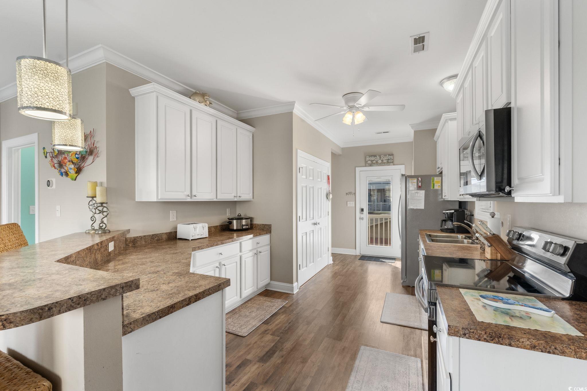 Live the ultimate beach lifestyle in this stunning 5-bedroom, 3-bath elevated coastal retreat with ocean views! Designed for memory-making, entertaining, and soaking up the salty air, this home is being sold fully furnished, making it truly move-in or rental ready. Featuring a 2025 metal roof and brand-new appliances, youll enjoy peace of mind, durability, and modern convenience by the coast. Multiple spacious decks offer the perfect spots to sip your morning coffee, catch ocean breezes, and enjoy sunset cocktails with a view. Downstairs is an entertainers dream with a massive covered hangout area, lounge seating, and mounted TVperfect for grilling, game days, and relaxing after a beach day. The extra parking space is a rare bonus, ideal for hosting guests or multiple vehicles, and the shaded area around the tree creates a cozy, laid-back hangout zoneperfect for hammocks, picnic tables, or fire pit nights under the stars. Inside, youll find a bright, open layout, a well-appointed kitchen with ample cabinet space, and easy coastal style throughout. With generous parking, outdoor storage, and thoughtful design, this home is ideal as a primary residence, second home, or income-producing vacation rental. This one truly delivers the full Ocean Lakes lifestyle!