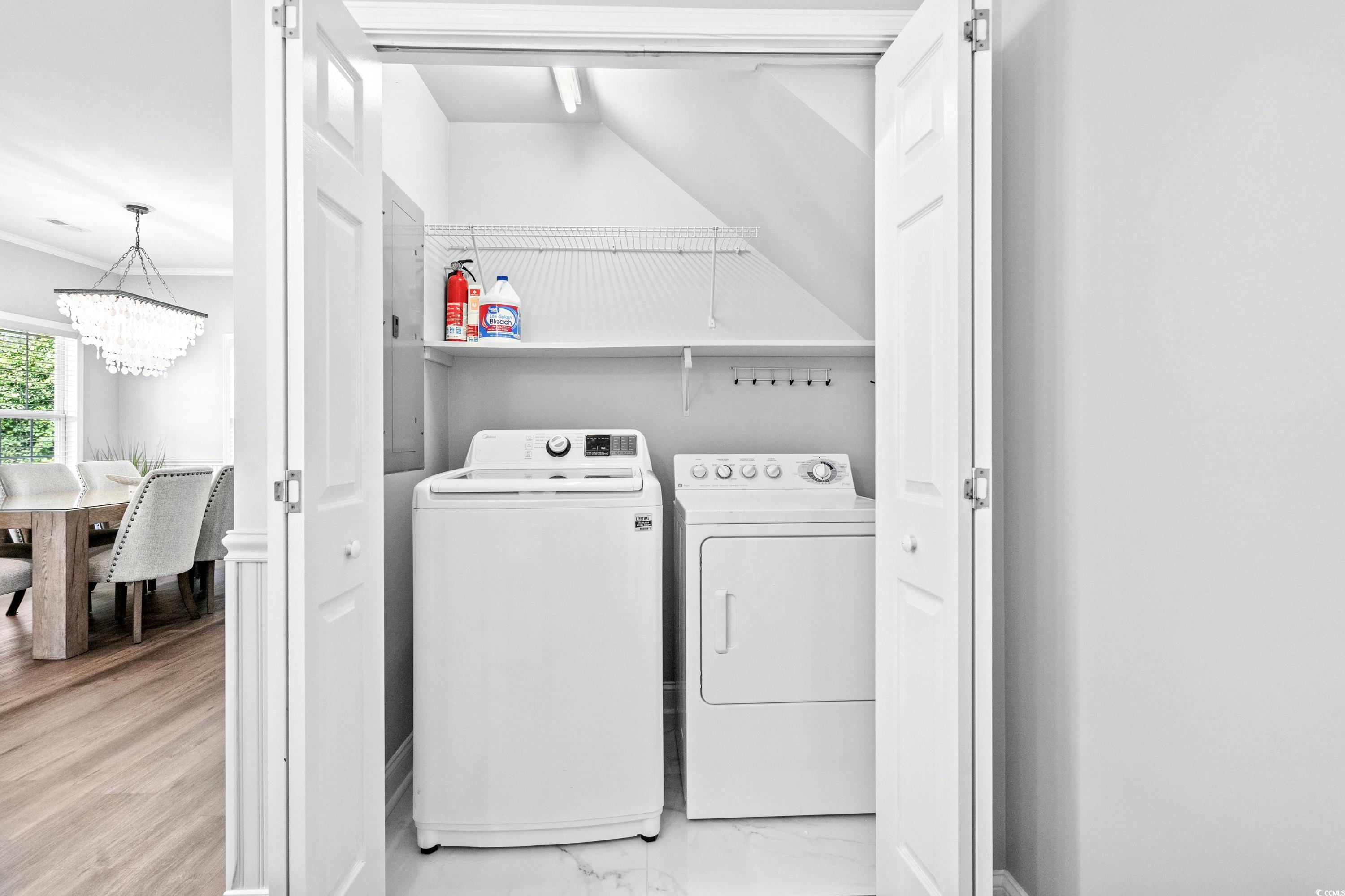 1556 is a beautiful newly remodeled 4BED/ 2.5BATH corner lot home with over-sized deck, & extra parking on a dead-end street. 2 King Beds, 1 Queen Bed, 1 Bunk Room with 3 Twins & 1 Full, & SLEEPS 11. Stepping inside you have an open concept dining, living room, and kitchen, LVP flooring, accent wall with fireplace, kitchen with granite counters, island, tile backsplash, stainless steel appliances and full-size washer/dryer. All bedrooms along with 2 full baths are located upstairs, leaving main lever for entertaining with 1/2 bath. Located close to the ocean and all amazing amenities that Ocean Lakes has to offer.