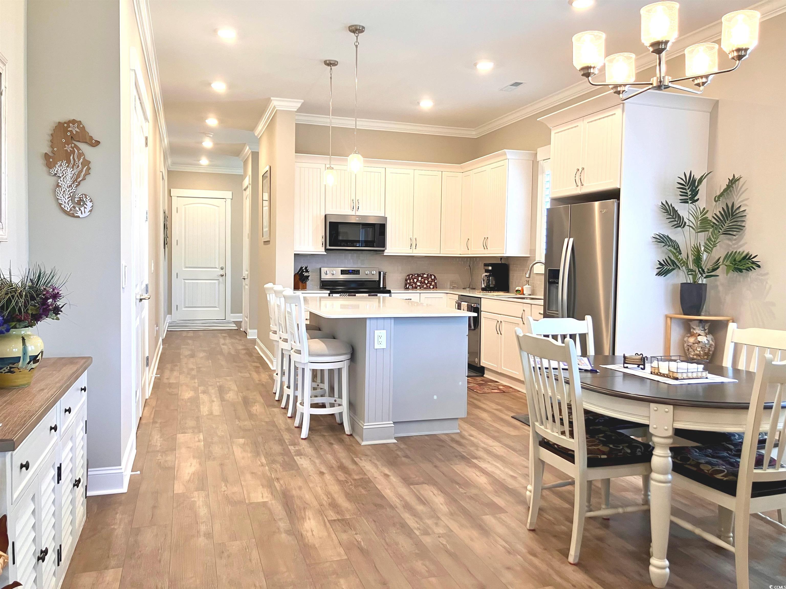 Make your beach home dreams come true with this nearly new home in the sought-after Living Dunes community of Grande Dunes. This single-story residence features 3 bedrooms and 2 baths, all situated on a premium lot offering privacy and pond views from the back porch. The home is built with uncompromising quality, using elevated materials that ensure low maintenance and high durability, such as 2x6 construction, impact-resistant windows, Icynene spray foam insulation, and a Rinnai tankless water heater, making it a highly efficient and eco-friendly investment. Architectural design emphasizes a seamless flow and modern living, featuring 10-foot ceilings and ample space for connecting with family and friends. The chef's kitchen is equipped for gourmet cooking with designer Elmwood cabinets, quartz countertops, a tile backsplash, stainless steel appliances, a natural gas connection, and essential under-cabinet LED lighting. All appliances, including the refrigerator, washer, and dryer with pedestals, are like new and will convey with the property. Retreat to a primary suite designed for privacy and luxury, complete with an elegant tray ceiling, dual walk-in closets, and a spa-like bathroom featuring a fully tiled shower and private water closet. Two guest bedrooms offer flexibility; use the front room as a quiet den or a dedicated home office. The back screened porch offers soothing views of the lake and weeping willow treesthe perfect spot to relax and enjoy stunning sunsets. This home boasts an abundance of closet space along with an oversized pantry that is no longer offered by the builder. Other upgrades include solid surface flooring throughout, plantation shutters, 2 screened porches and a HALO whole-house water filtration system. The attached 2-car garage has been upgraded with an epoxy finish, a generator/electric car outlet, a utility sink, and premium storage cabinets. Located less than one mile from the Atlantic Ocean in Myrtle Beach's premier Grande Dunes development, Living Dunes provides unparalleled access to coastal living and world-class amenities. Enjoy convenient access to the beach, the exclusive Grande Dunes Ocean Club, marina, and an abundance of shopping and dining options. Living Dunes on-site amenities include a stunning zero-entry pool with a tanning shelf, clubhouse, 10 acres of lakes, fire pits, and miles of walking trails. If you are ready to enjoy upscale beach living, you cant afford to miss this exceptional home. There are no lots left in Living Dunes for a single-story home, so dont let this one slip away!