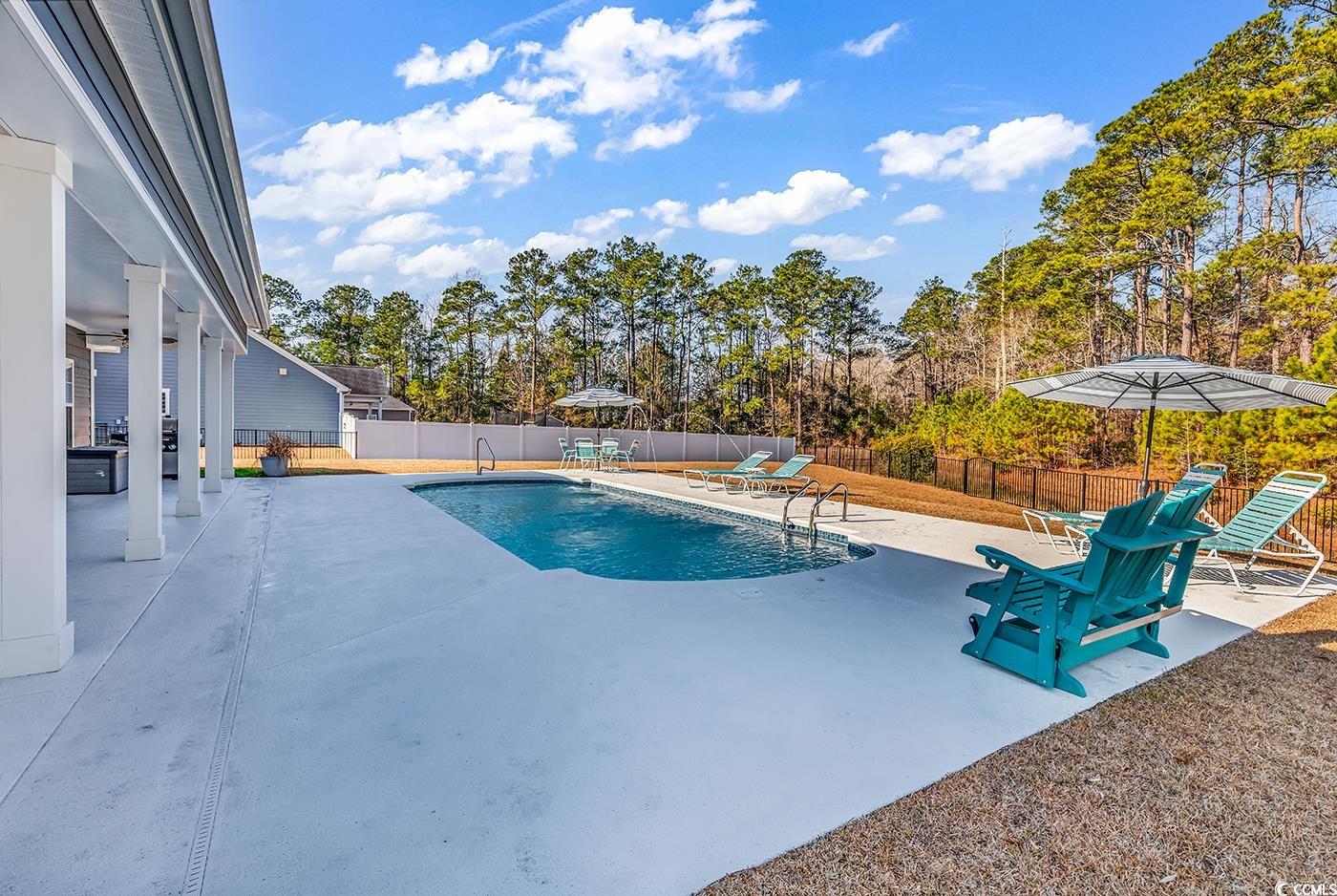 Welcome to 315 Sanctuary Ct, a rare opportunity in the highly sought-after Chapel Ridge communitya beautiful community of just 57 homes in Myrtle Beach. Tucked away on a quiet cul-de-sac, this custom-built 2017 home offers exceptional privacy, thoughtful design, and resort-style living, all while being removed from the hustle and bustle. This 4-bedroom, 3-bath home features an open and inviting floor plan with a formal dining room and a spacious living area highlighted by a tray ceiling and seamless views of the backyard oasis. The heart of the home is the beautifully appointed kitchen, complete with tons of granite counter space, a large work island, stainless steel appliances, a Bosch 5-burner gas range with pot filler, farmhouse sink, walk-in pantry, and custom soft-close cabinetry with sliding shelves. A breakfast nook with natural light coming in overlooks the pool and backyard, making it the perfect spot to start your day. The primary suite, conveniently located on the first floor, is a true retreat with a double tray ceiling accented by crown molding, a custom walk-in closet, dual vanities, linen closet, and a zero-entry tiled shower with dual shower heads and glass enclosure. Two additional generously sized bedrooms and a full bath are also located on the main level in a desirable split-bedroom layout. A dedicated home office with double doors and a closet provides the perfect space for working from home or quiet study. The fourth bedroom and a full bath are located above the garage, ideal for guests or a private retreat. Luxury LVP flooring from Flooring Plus runs throughout the home, with the exception of the two first-floor guest bedrooms. Gas features include the stove and a tankless water heater. Step outside and prepare to be impressed. The private backyard is your own personal oasis, featuring a 32' x 14' saltwater pool with massage jets, fountains, and multicolor programmable lighting, all enjoyed from a covered porchperfect for relaxing or entertaining. For RV or boat enthusiasts, this home offers RV parking with 50-amp service, along with water and sewer hookups conveniently located outside the garage. Meticulously maintained and offering features rarely found together, this home truly has it all. If youre searching for privacy, luxury, and functionality in one exceptional package, 315 Sanctuary Ct belongs at the top of your Must See list. You will not be disappointed.