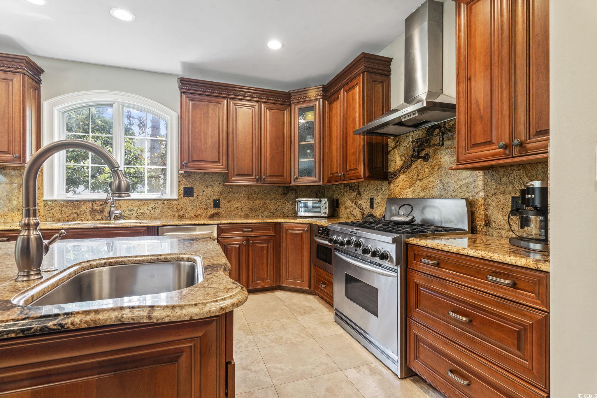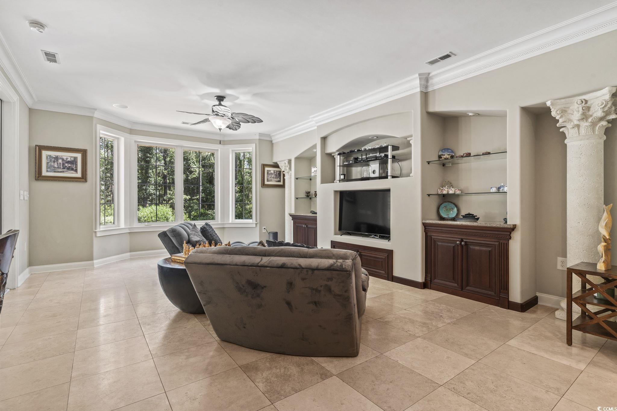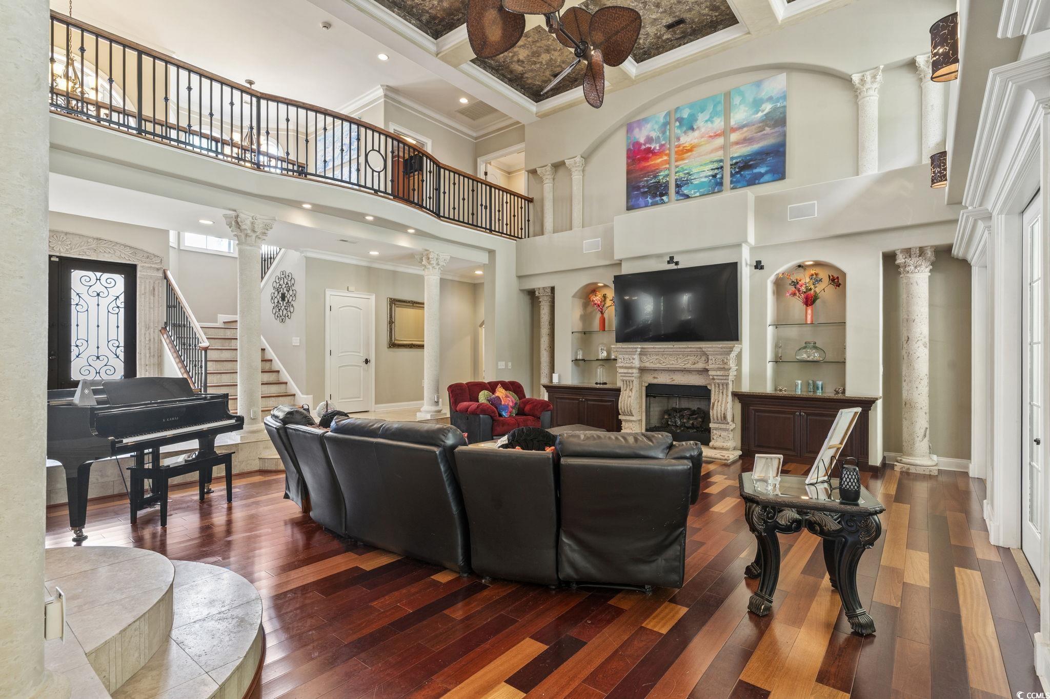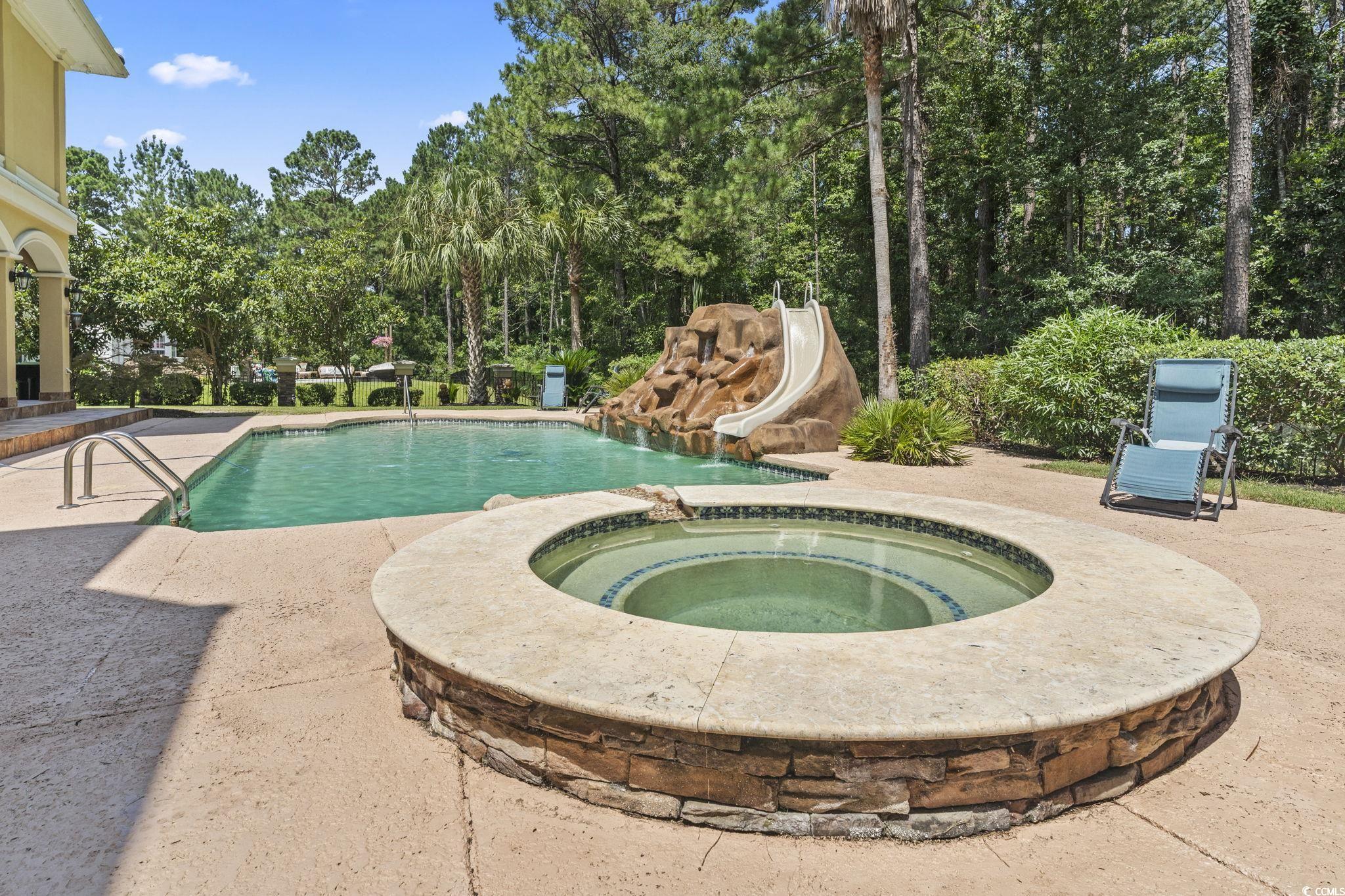 Stunning custom-built Mediterranean masterpiece with 5 bedrooms, 4 full baths, 2 half baths and your own private oasis with a pool and hottub. As you enter this custom-built grand home, you will be greeted with quality and premium upgrades, including Brazilian cherry flooring, stucco accents, and crown molding throughout the home. Huge Family room features a gorgeous coffered ceiling, fireplace and built-in shelving. Kitchen is enormous and boasts a large granite island, stainless steel appliances, and custom built cabinetry which offering tons of cabinet and counter space. Family room is adjacent to the kitchen, offers direct access to the pool and offers plenty of room for entertaining. Also on the first floor is a large guest bedroom with attached full bath which could function as a guest suite of In-Law suite and offers direct access outdoors as well. Upstairs you'll find the master suite, with it's trey ceilings, massive walk in his and her closest and door leading to huge outdoor balcony. Luxurious Master bath features double sinks with granite counters, vanity area, garden tub and spacious walk in shower. There are also 3 very spacious bedrooms upstairs, one with it's own private outdoor balcony. Upstairs area has a massive balcony overlooking the pool and the privacy of the woods behind. Your backyard oasis is very private with fully fenced yard a massive pool with a slide and hot tub. This is your chance to take advantage of all that Plantation Lakes has to offer, lake front living, and world class amenities which includes two large pools, clubhouse for its residents, tennis and basketball court, playground for the kids, and sidewalks throughout the neighborhood. You will be located within a very short drive to tons of shopping, restaurants, grocery stores, the Myrtle Beach International Airport, and best of all approximately 15-20 minutes to the best beaches that Myrtle Beach has to offer. All square footage is approximate and is not guaranteed. Buyer is responsible for verification.