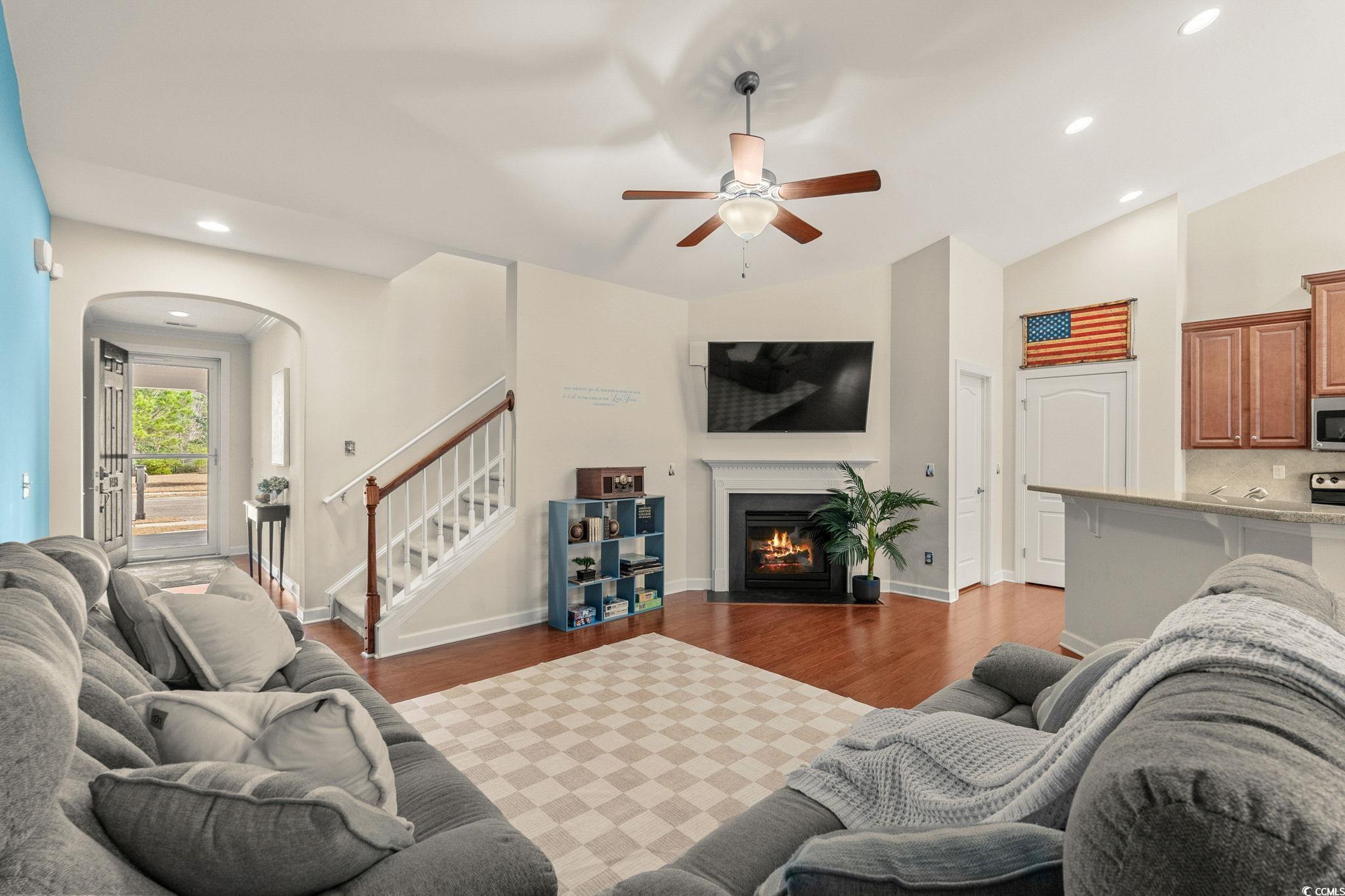 Welcome to 1461 Thames Ct., located in the highly sought-after community of Emmens Preserve within Market Common. This charming Crepe Myrtle floor plan offers 4 bedrooms, 3 baths, and a 2-car garage, all powered by natural gasincluding a gas fireplace, tankless Rinnai water heater, and gas range for cooking. Enjoy outdoor living with both covered front and rear porches, plus a fully fenced backyard. The thoughtfully designed split floor plan features three bedrooms on the main level. The spacious primary suite with ensuite bath includes a linen closet, large walk-in closet, double sink vanity, garden tub, and a glass-enclosed shower. Two generous guest bedrooms are located at the front of the home and share a full bath. Upstairs, youll find a flexible and expansive fourth bedroom or bonus room with its own walk-in closet and full bathperfect for guests, a home office, or media space. The kitchen has a pantry, dual-basin sink, lots of cabinets and offers ample room for an eat-in area and a built-in desk, ideal for cookbooks or a home office nook. A formal dining room showcases chair rail and timeless wainscoting enhancing this home's entertaining flow and provides additional space for gatherings. The laundry room is just off the garage and has shelving to create a ""drop zone"" and offers a walk-in pantry for additional storage. Sliding doors lead to the extra-long covered rear porch, complete with a designer ceiling fan and Edison string lightsan inviting space for grilling, entertaining, or relaxing. Situated at the end of the street, this home enjoys added privacy and street parking. Emmens Preserve is known for its resort-style amenities, including a clubhouse, pool, miles of walking and biking paths (including the scenic Woodland Path), playground, picnic area, outdoor pavilion with kitchen, putting green, bocce ball court, dog park, and golf-cart-friendly access to the beach and downtown Market Common. Schedule your showing today and experience the lifestyle this beautiful home has to offer