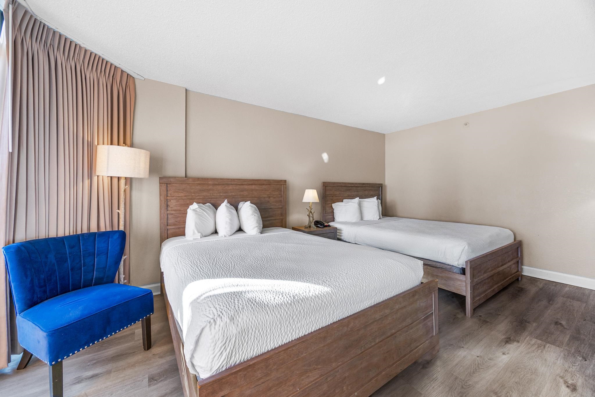 Welcome to this beautifully updated one-bedroom, one-bathroom condo located in the highly desirable Landmark Resortan ideal choice for vacationers and short-term rental success. Thoughtfully designed and well maintained, this spacious condo features elegant furnishings, new flooring, and a fully equipped kitchen with granite countertops, perfect for extended stays. The modern bathroom includes a newer vanity with granite counters, adding a touch of upscale comfort. The living area is designed with flexibility in mind, offering comfortable seating, a Murphy bed, and a sleeper sofaideal for accommodating larger families or groups. The bedroom features two queen beds and a spacious closet, ensuring guests enjoy both comfort and convenience. This desirable double-bay, angled ocean-view unit boasts two private balconiesone off the living room and one off the bedroomallowing guests to enjoy privacy while taking in breathtaking views of the Atlantic Ocean. Located on the lobby level, this condo offers exceptional ease of access with no elevator waits, a feature guests truly appreciate. Landmark Resort is packed with guest-favorite amenities, including indoor and outdoor pools, lazy rivers, an on-site waterpark, Starbucks coffee bar, multiple restaurants, poolside bar, fitness center, laundry facilities, banquet rooms, and a covered parking garage with an enclosed crosswalk. Centrally located in the heart of Myrtle Beach, the resort is just minutes from the airport, Market Common, Broadway at the Beach, golf courses, shopping, dining, and entertainment. Whether youre looking for a turnkey vacation rental, a second home, or a personal getaway, this condo offers outstanding rental potential and an unforgettable guest experience. Schedule your private showing today!