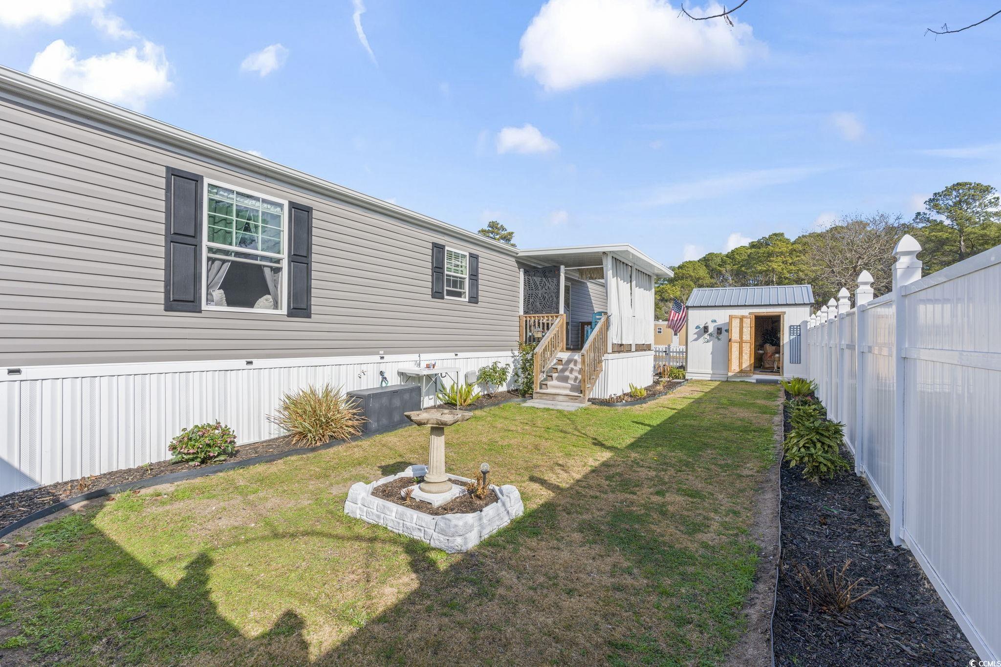 Welcome to 1525 Capella Lane in the desirable Crystal Lake community of Myrtle Beach! This beautifully maintained 2023 home is being sold furnished and turnkey, making it easy to move right in and start enjoying the coastal lifestyle. Inside, youll immediately notice how spotless and well-maintained this home is, with thoughtful upgrades throughout. The kitchen features upgraded countertops, additional cabinetry, and extra storage, offering plenty of space for cooking, entertaining, and everyday living. The open layout creates a warm, inviting flow that feels comfortable and functional. Step outside and enjoy true indoor-outdoor living. The fenced yard and storage shed add convenience and privacy, while the covered front and back porches are perfect for relaxing in every season, enjoying dining outdoors while watching the rain roll by, or unwinding in the shade on warm summer days. A rare bonus for this area: the extra space behind the home allows for parking an RV, camper, storage trailer, boat, or additional vehicles, giving you flexibility thats hard to find so close to the beach. Crystal Lake is loved for its prime central location next to Prestwick Golf Course, just minutes from Market Common, the airport, shopping, dining, Myrtle Beach State Park, and the beach. The home is situated on leased land, offering an affordable way to live close to it all. If youre looking for a clean, furnished, move-in-ready home in a fantastic location, this one is a must-see.