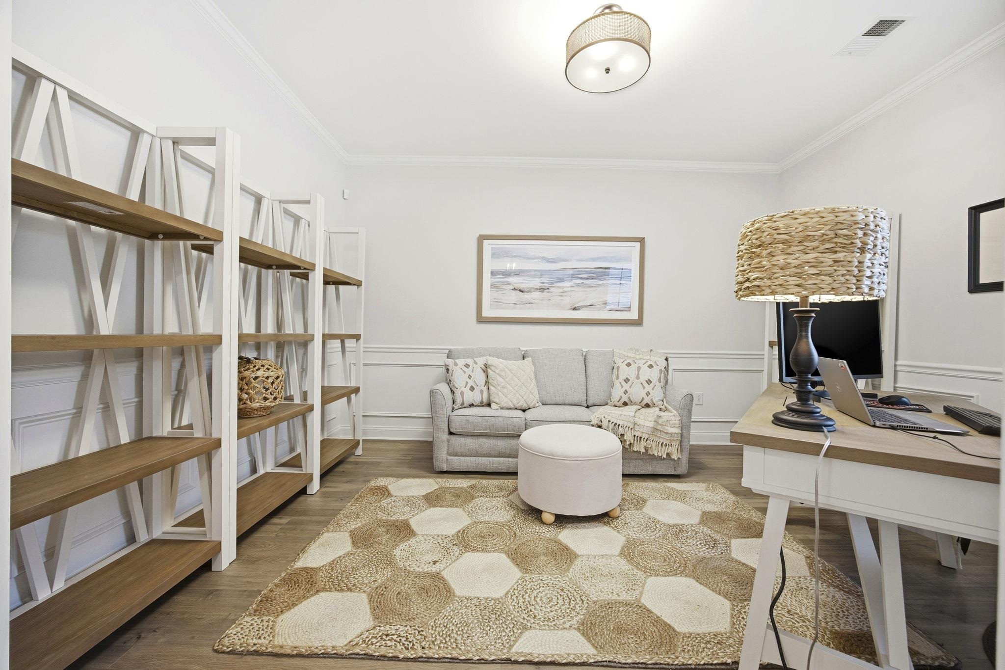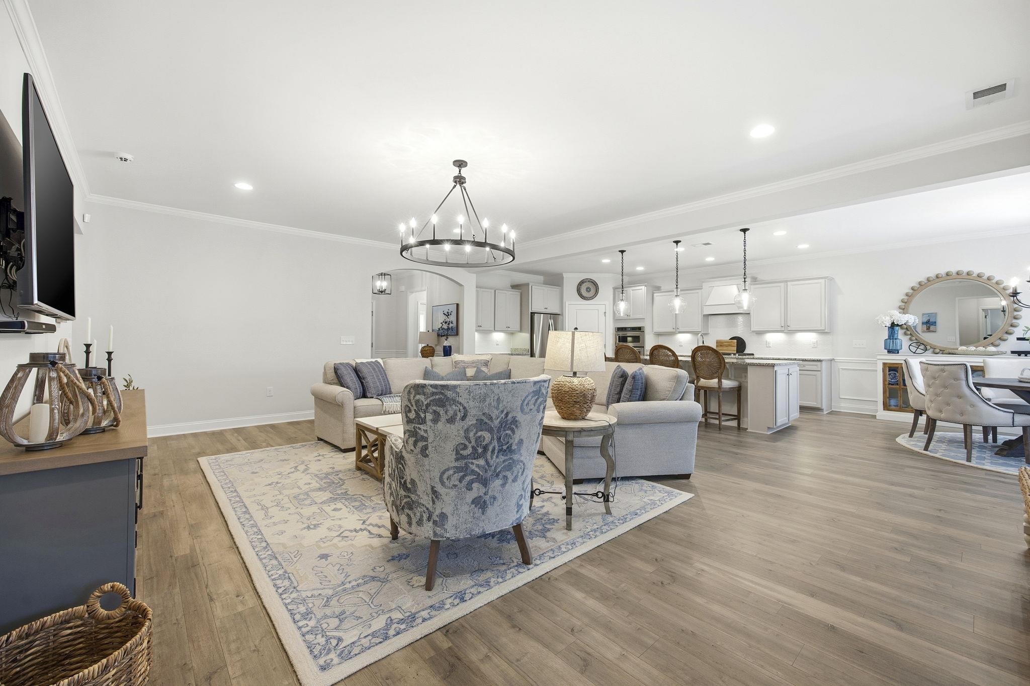 Fall in love the moment you step through the foyer of this stunning 3-bedroom, 3-bath home where thoughtful design meets everyday comfort. This well-maintained home features durable cement fiber exterior, with the exterior freshly repainted in October 2025, offering peace of mind and great curb appeal. Warm LVP flooring flows throughout, leading you into a bright, open-concept living space where a dramatic candle-style ring chandelier instantly steals the show and sets the tone for modern living. Work from home in style in the dedicated office featuring French doors and beautiful wainscoting. The spacious primary suite feels like a private retreat with a tray ceiling, large walk-in closet, and spa-inspired ensuite offering a double vanity and walk-in glass shower. A second bedroom enjoys its own ensuite bath, while the third bedroom and separate full bath provide ideal space for guests or family. The kitchen is designed to bring people together featuring a breakfast bar that doubles as an island, complete with four breakfast bar stools that convey. You'll enjoy the abundant cabinetry, a separate pantry, and a gas range with a hood. The charming dining area with wainscoting opens to a screened back porch with coffered-style trim and a ceiling fan, perfect for morning coffee or evening gatherings. Step outside to a patio and fire up the gas KitchenAid grill which conveys, while enjoying a professionally landscaped, oversized backyard on a rare half-acre lot. Most furnishings are negotiable, offering added flexibility for buyers seeking a move-in-ready opportunity. A well-appointed laundry room with custom built-in storage and a sitting bench adds even more everyday convenience. The 2-car garage plus 1 golf cart space rounds out this exceptional home. Enjoy resort-style community amenities including an extra-large pool, fire pit, and playground. This home doesnt just check boxes, it creates a lifestyle youll be proud to call your own.