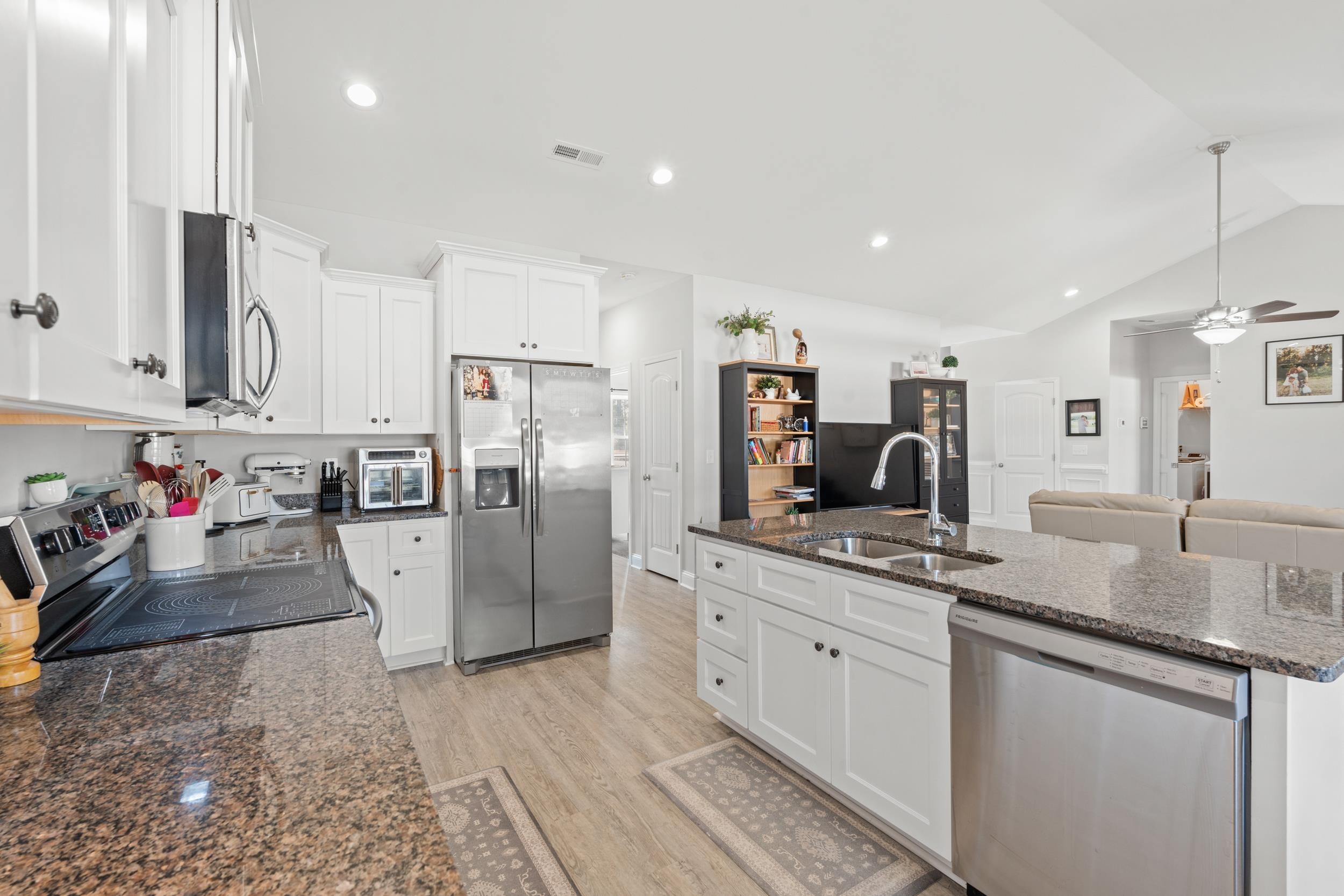 NO HOA! Welcome to this like-new, 3-year-old home situated on a .56-acre lot just outside the city limits, offering space, privacy, and convenience. Featuring 4 bedrooms and 3.5 baths, this home boasts a desirable open floor plan with vaulted ceilings in the living area and foyer, creating a bright, airy atmosphere perfect for everyday living and entertaining. The master has tray ceilings, double sinks, 2 linen closets and large walk-in shower. The bonus/bedroom upstairs has its own closet and full bath. The kitchen is a true highlight with granite countertops, a breakfast bar, and a large pantry, providing both style and functionality. A spacious laundry room adds everyday convenience, while the 2-car side-load garage enhances curb appeal. Enjoy multiple outdoor living spaces, including a front porch, back porch, and patio, all overlooking a fenced-in backyard ideal for relaxing, pets, or gatherings. Additional features include a camera and security system and a timer on the water heater for added efficiency and peace of mind. The owner added extra concrete for additional parking. Located just minutes from downtown Conway and less than an hour to the beach, this move-in-ready home delivers the best of quiet living with easy access to shopping, dining, and coastal destinations. Schedule your private showing today!