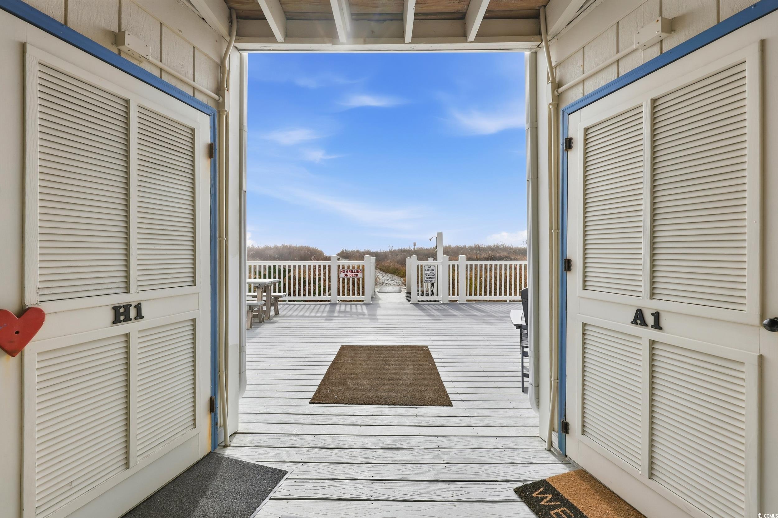 ""Finestere By the Sea"" is located near ""The Pointe"" in the Cherry Grove Beach section of North Myrtle Beach. A true 1st floor walk-right in 2 bedroom 2 bathroom condo makes a perfect vacation destination for everyone. Condo has been upgraded with NEW LVP flooring, furniture throughout that conveys with the sale, and freshly painted. You will have easy access to the front door of the condo, to the beach, community pool and parking lot in just a few steps. The heating and air unit was replaced October 2022. Exterior building renovations: a new roof, cedar shake vinyl siding, trex decking, pavers around the pool and vinyl handrails on the balconies. Finestere is a perfect investment property or permanent residence. Don't miss the opportunity to make this your peaceful paradise by the sea.