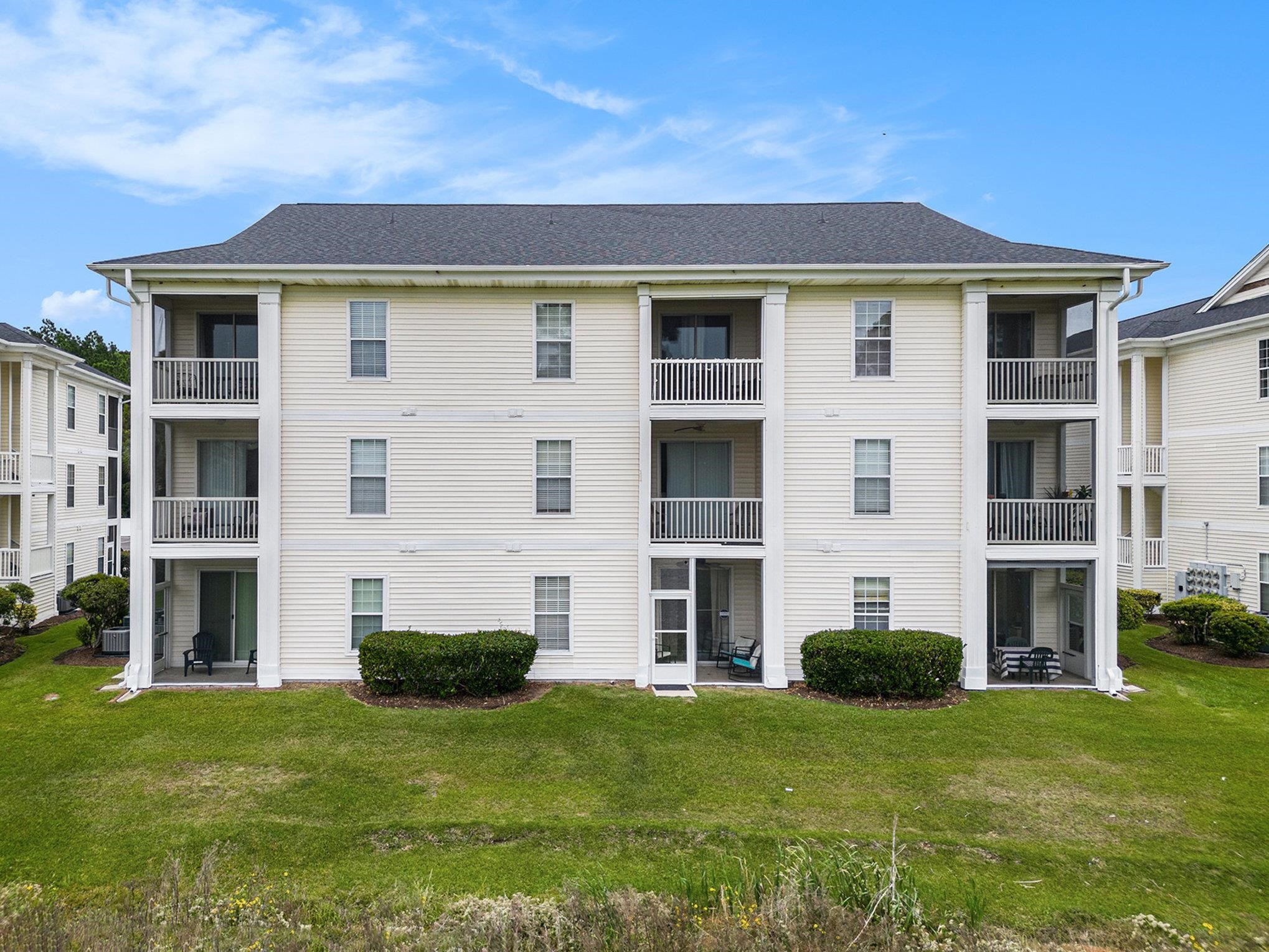 Welcome to River Oaks Condos in Carolina Forest. This beautiful end-unit condo is priced to sell. The 2-bedroom, 2-bathroom is on the 3rd floor and features stunning cathedral ceilings and an open-concept floor plan. Overlooking the golf course, this home features luxury vinyl plank flooring throughout and includes the furnitureready for move-in or rental. The kitchen opens to the spacious living and dining areas, perfect for relaxing or entertaining. Enjoy peaceful views from the private balcony, or spend sunny days at the outdoor community pool. Additional highlights include a washer and dryer that convey, ample natural light from the end-unit position, and a prime location just 10 minutes from the beautiful Atlantic Ocean beaches, the hospital, the airport, shopping, and dining. Ideal for short-term or long-term rentals, a vacation home, or full-time living! Don't miss out, schedule your showing today!