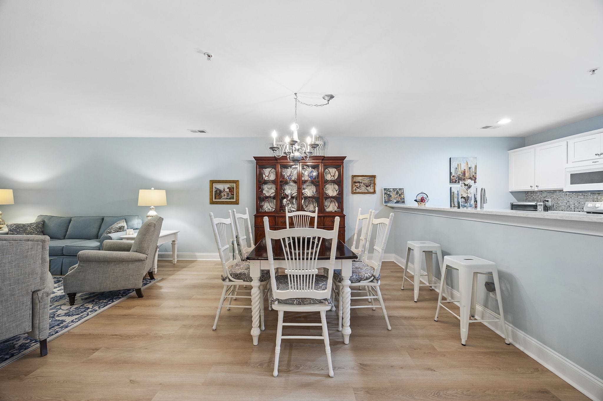 This beautifully updated, ground-floor 3-bedroom, 2-bath condo is located in the quiet Bay Meadows community of Carolina Forest. The spacious layout is filled with natural light and features luxury vinyl plank flooring throughout, recessed lighting, updated ceiling fans, and a seamless flow between living and dining spaces. The kitchen offers granite countertops and modern finishes, while both bathrooms have been thoughtfully renovated with new vanities, framed mirrors, and upgraded fixtures. Enjoy peaceful wooded views from the oversized screened porch, plus the convenience of no stairs and designated parking right out front. HOA covers water, sewer, cable, exterior maintenance, pest, basic cable, landscaping, trash, and pool access all just minutes from shopping, medical facilities, CCU, and the beach. Don't miss out on this turn key must see condo!