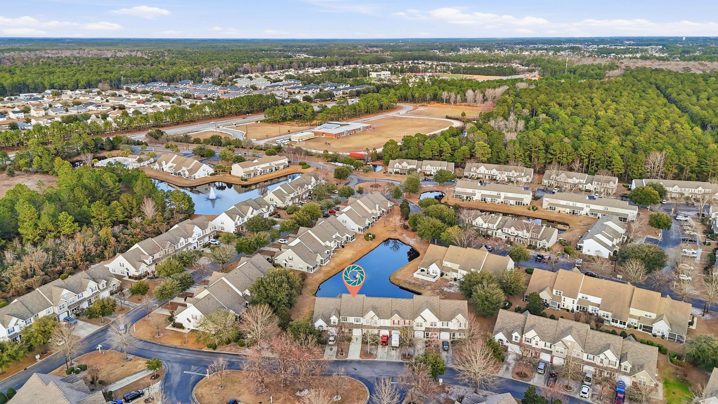 Welcome to this move-in ready 2-bedroom, 2.5-bath townhouse located in the highly desirable Sawgrass East community of Carolina Forest. This beautifully maintained home offers the perfect combination of comfort, functionality, and convenience in one of Myrtle Beachs most sought-after areas. The main level features a bright, open floor plan with a spacious living area that flows seamlessly into the dining space and updated kitchen with granite countertops. Just beyond the dining area, step into a screened-in patio overlooking a peaceful lake, creating an ideal setting for morning coffee or evening relaxation. A convenient half bath and a cozy front porch complete the first floor. Upstairs, youll find two generously sized bedrooms, each with its own bathroom, along with a laundry area and ample storage. Recent updates include gorgeous luxury vinyl plank flooring, and the home comes fully equipped with appliances, including a newer washer and dryer. The HVAC system is approximately three years old, and the HOA replaced the roofs in 2025, offering peace of mind for years to come. An attached private garage adds everyday convenience, while the communitys location places you close to top-rated schools, shopping, fine dining, entertainment, and medical facilities. The HOA covers many essential items, including homeowners insurance, water and sewer, exterior maintenance, landscaping, trash pickup, community pool, street lighting, and signage, allowing for truly low-maintenance living.This home is an excellent opportunity to enjoy lakeside townhome living in the heart of Carolina Forest.
